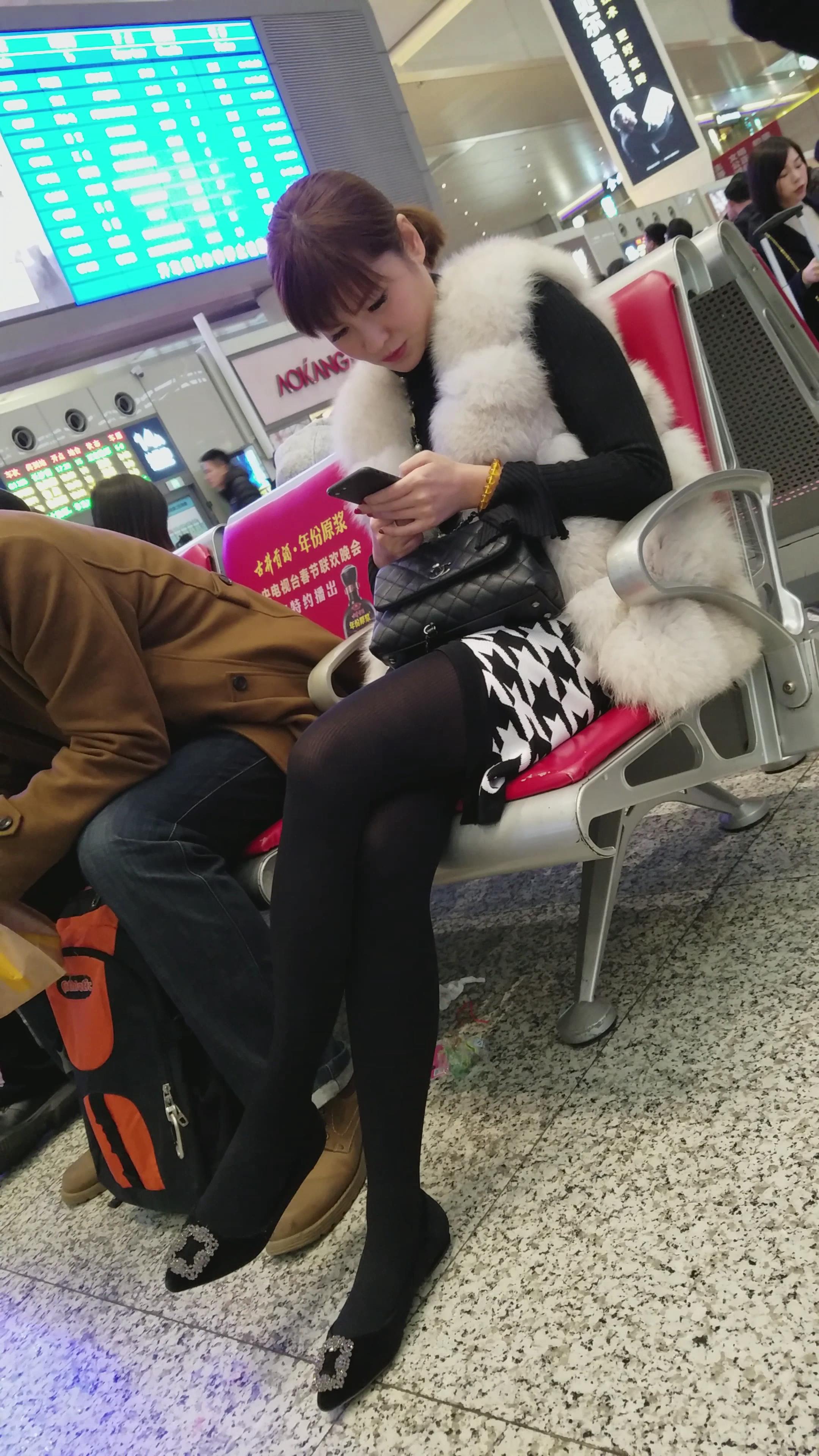 4k-高铁站候车室拍摄长腿黑丝性感美少妇 编号3061