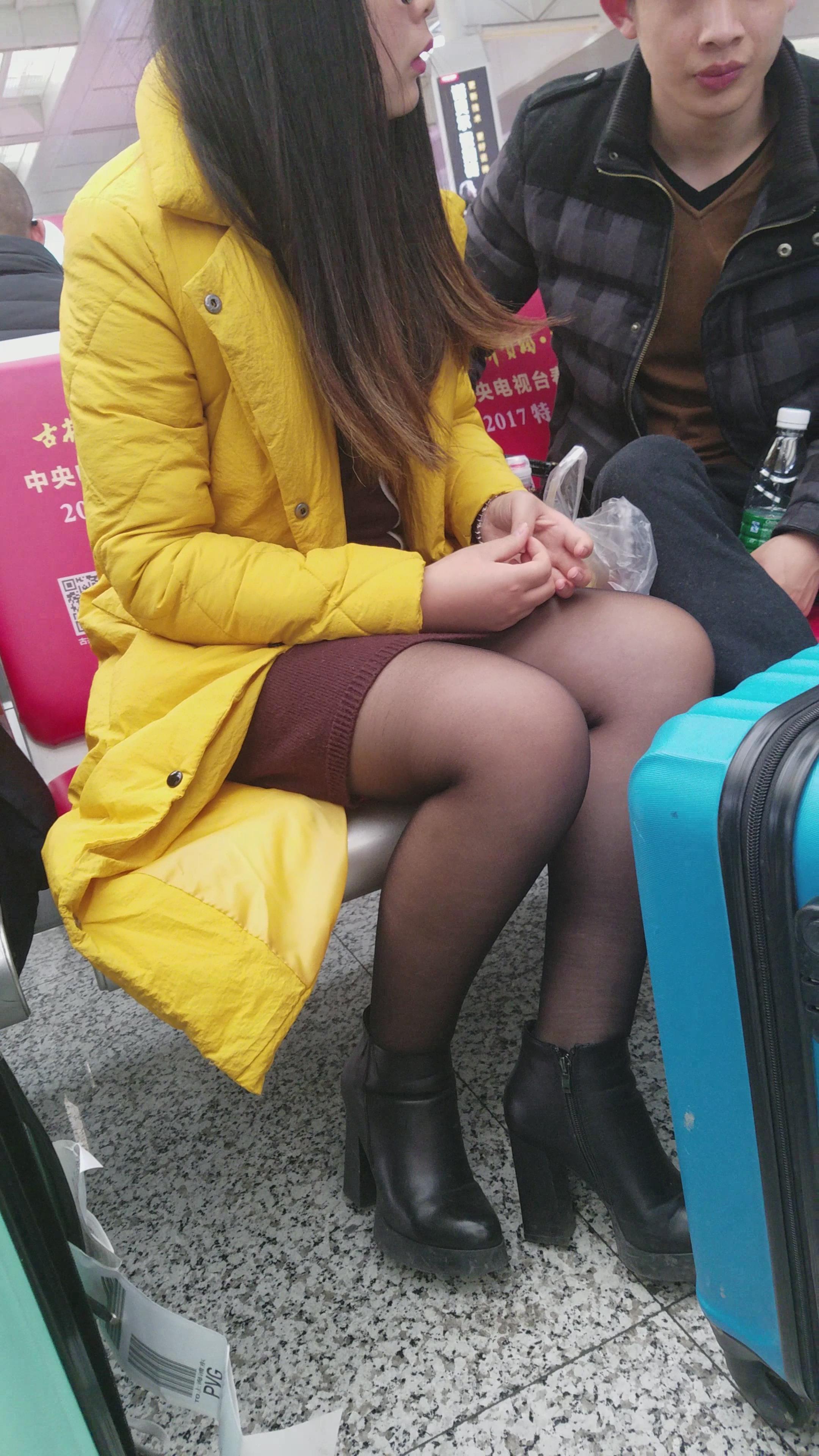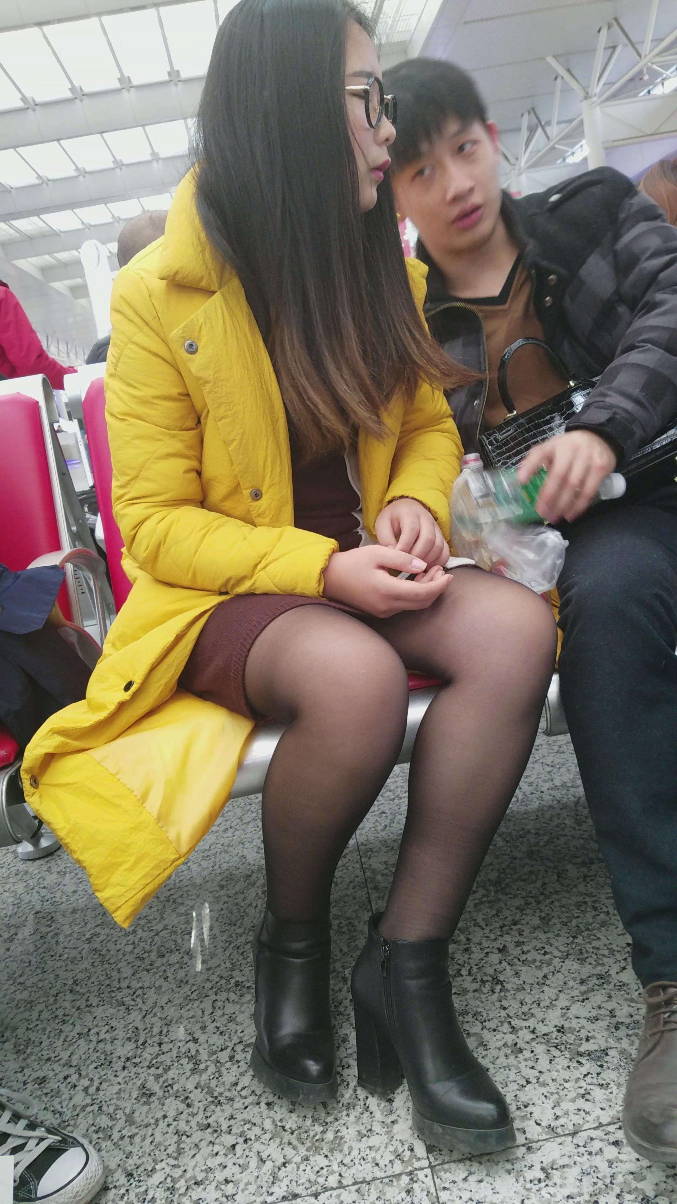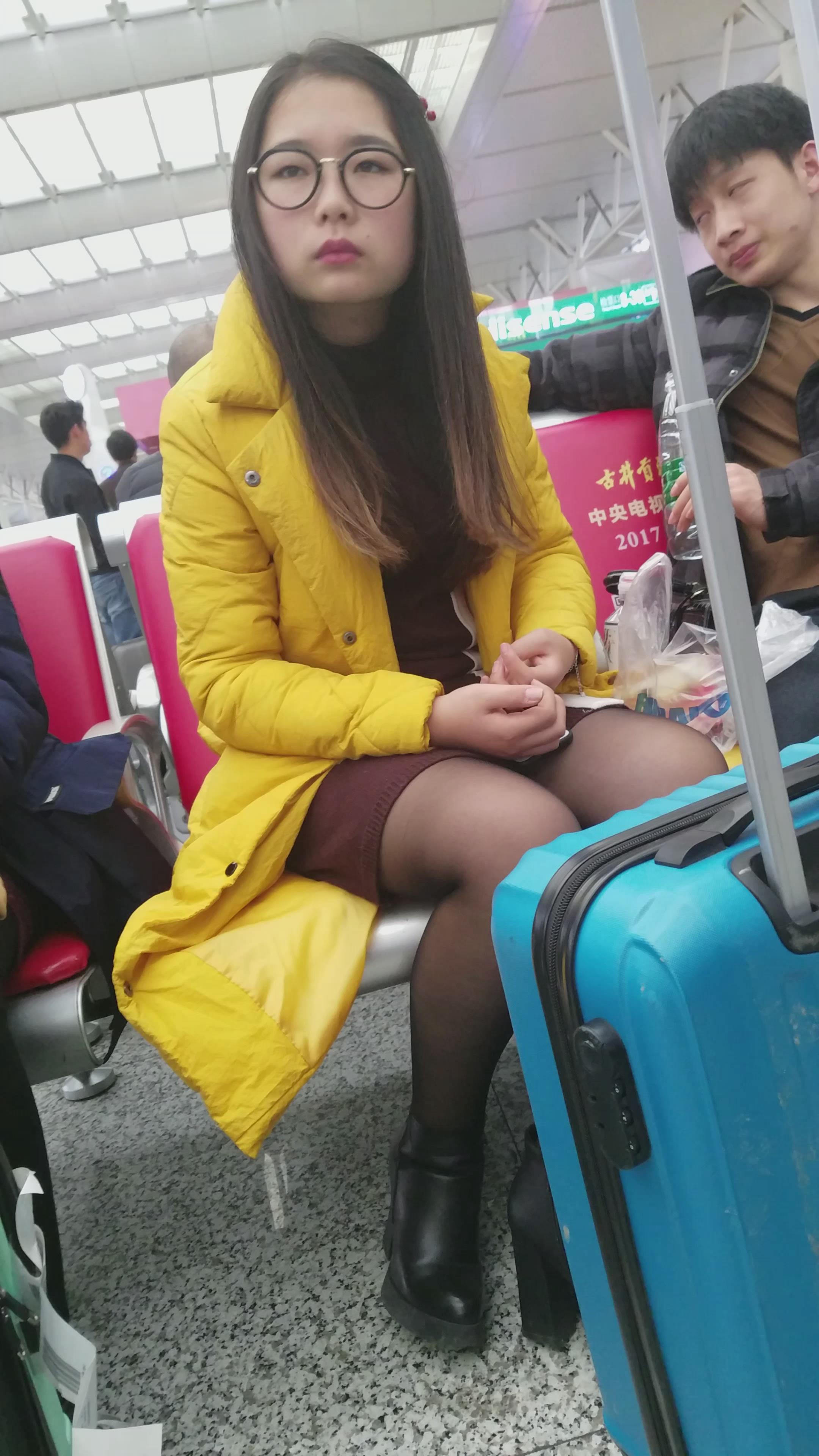 4k-高铁站候车室拍摄黑丝可爱眼镜萌妹子 编号3064