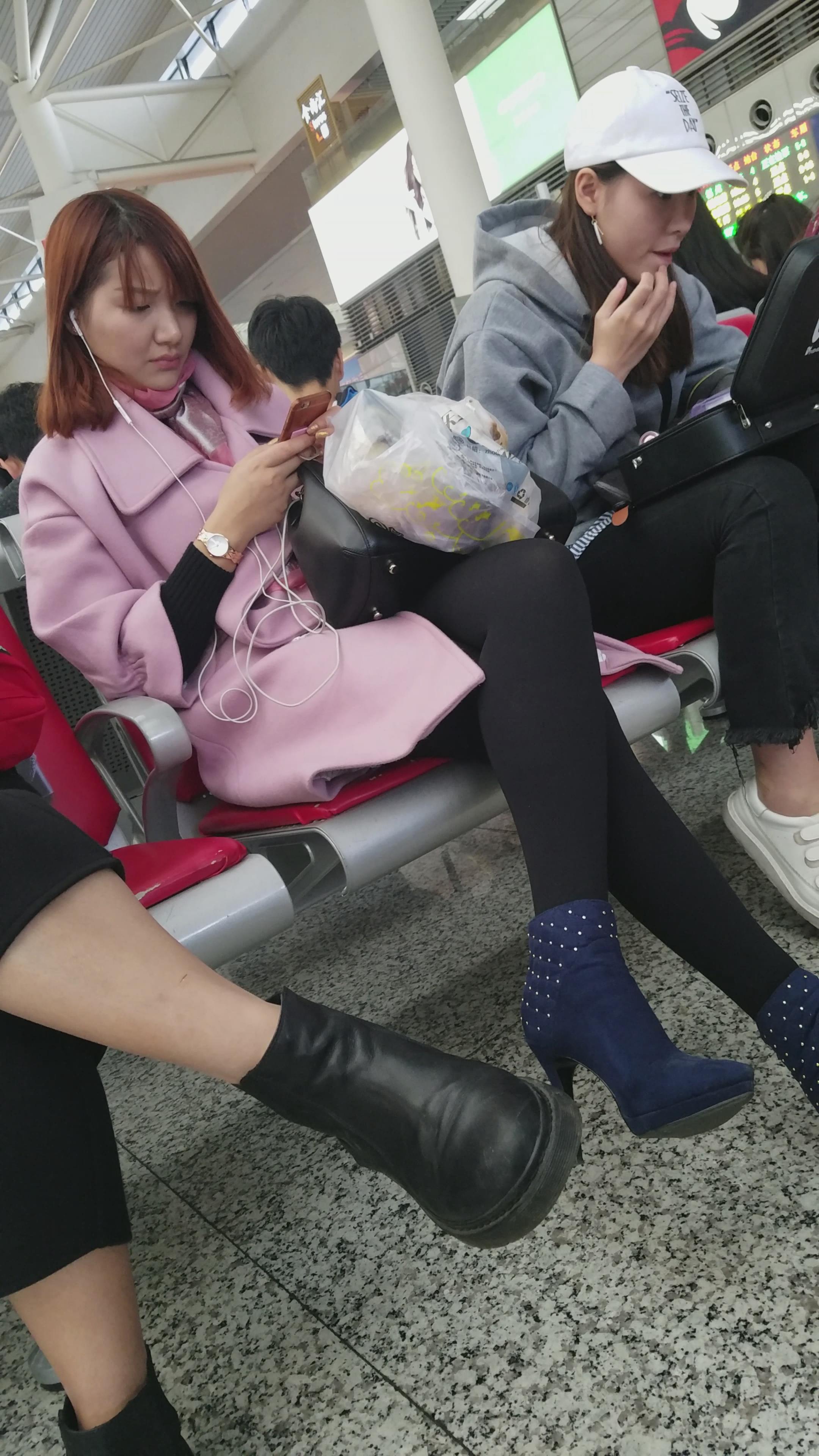 4k-高铁站候车室拍摄有点婴儿肥的黑丝美腿高跟鞋美女 编号3066