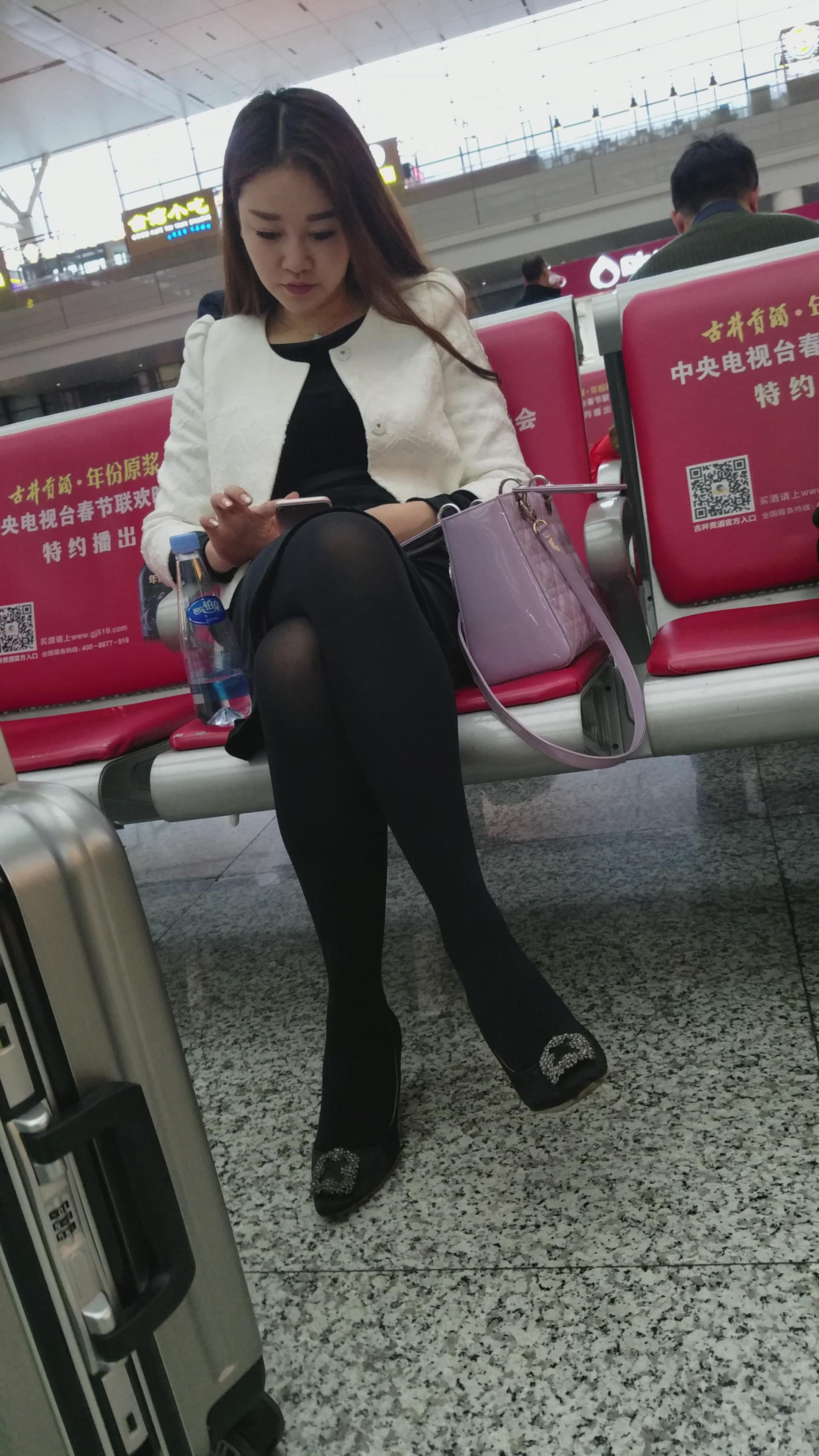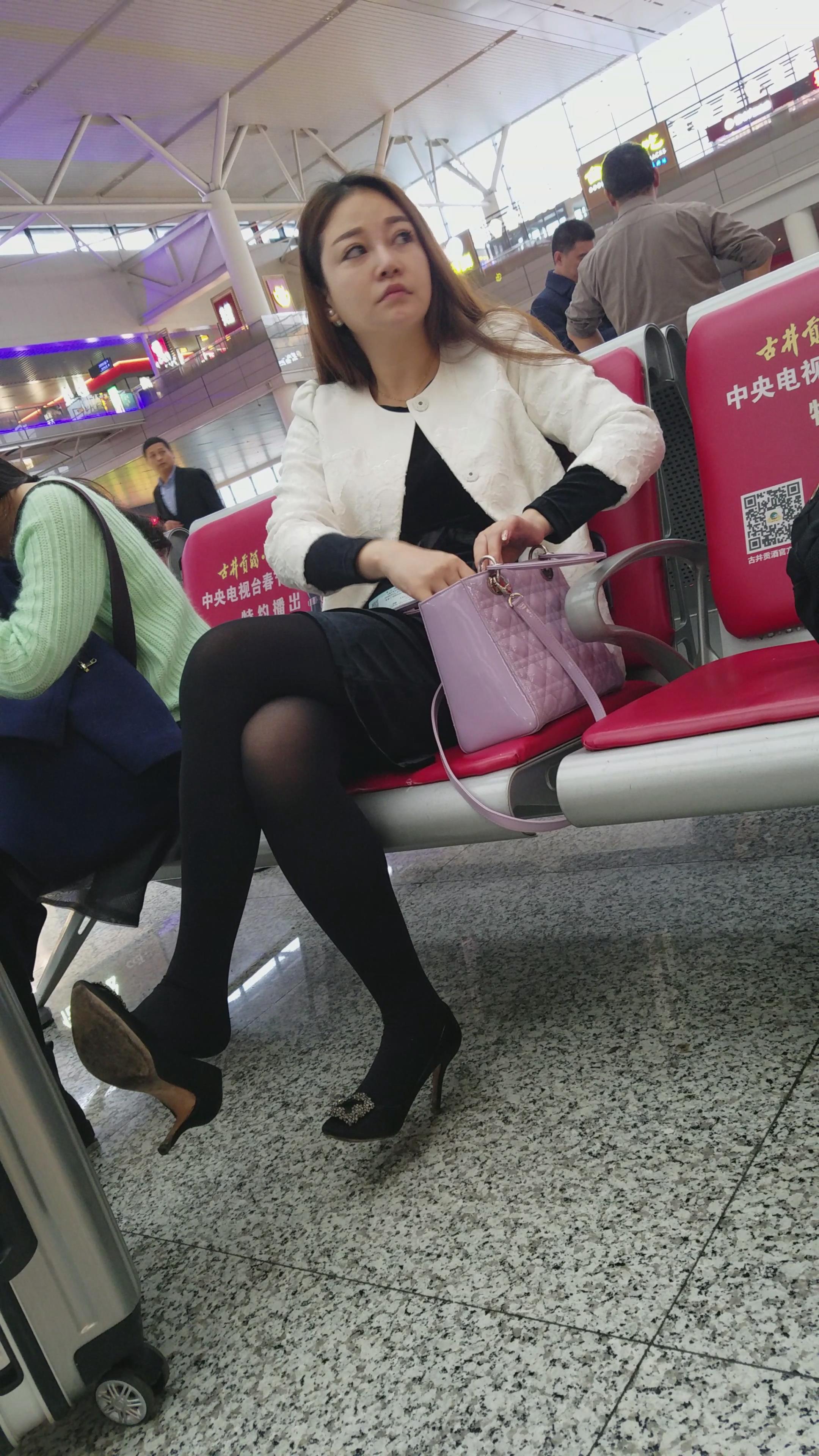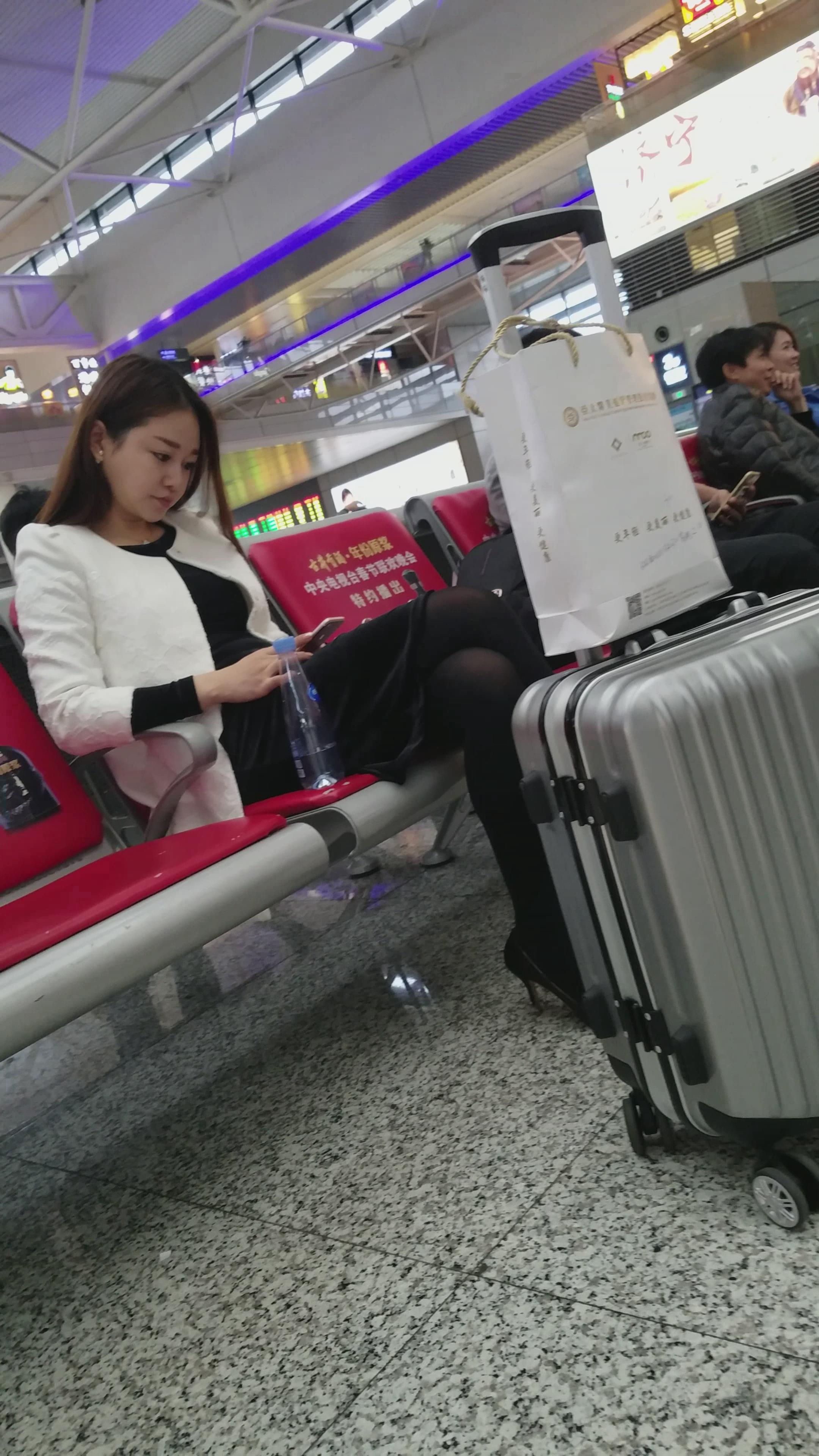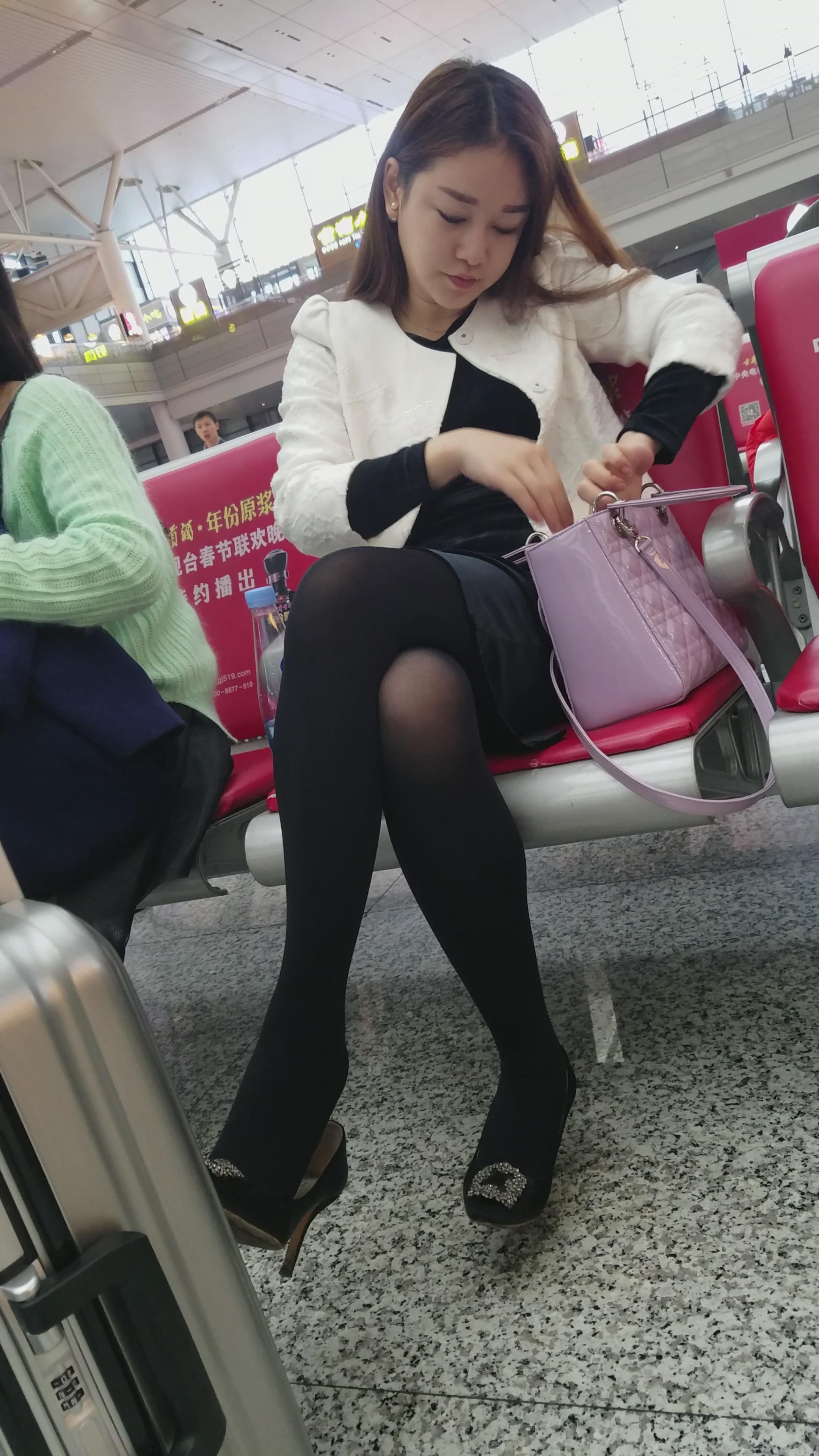 4k-高铁站候车室拍摄黑丝长腿高跟鞋MM 编号3067