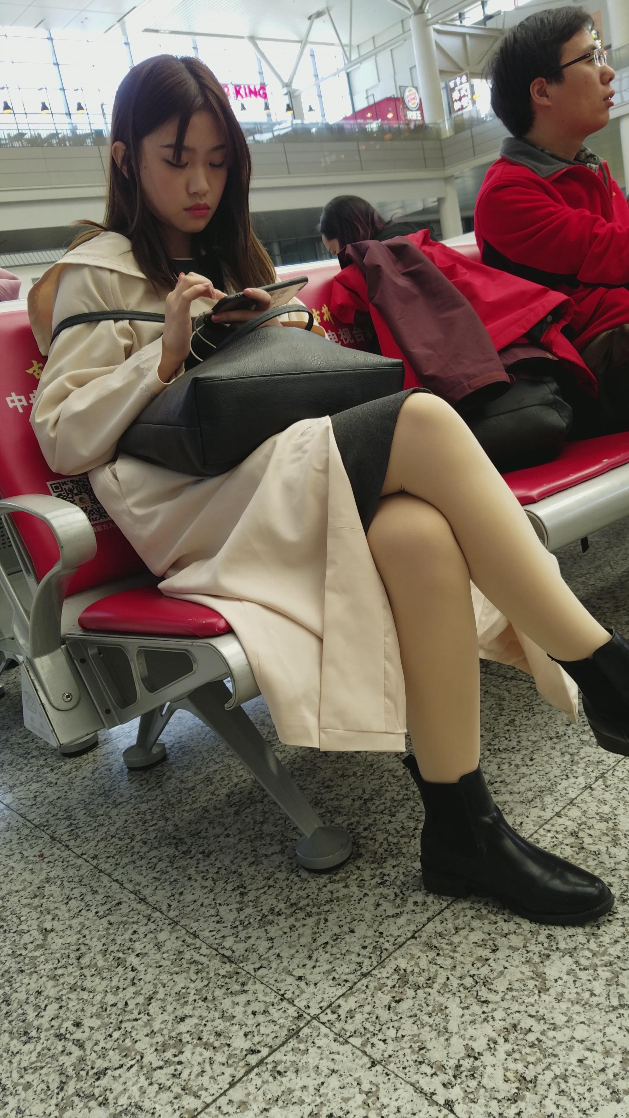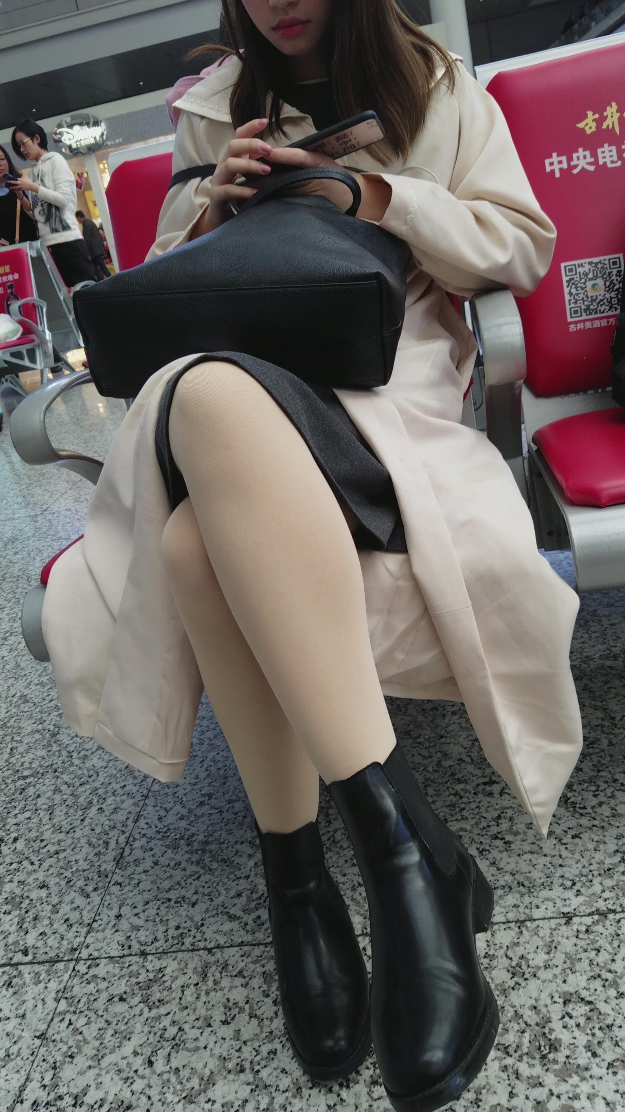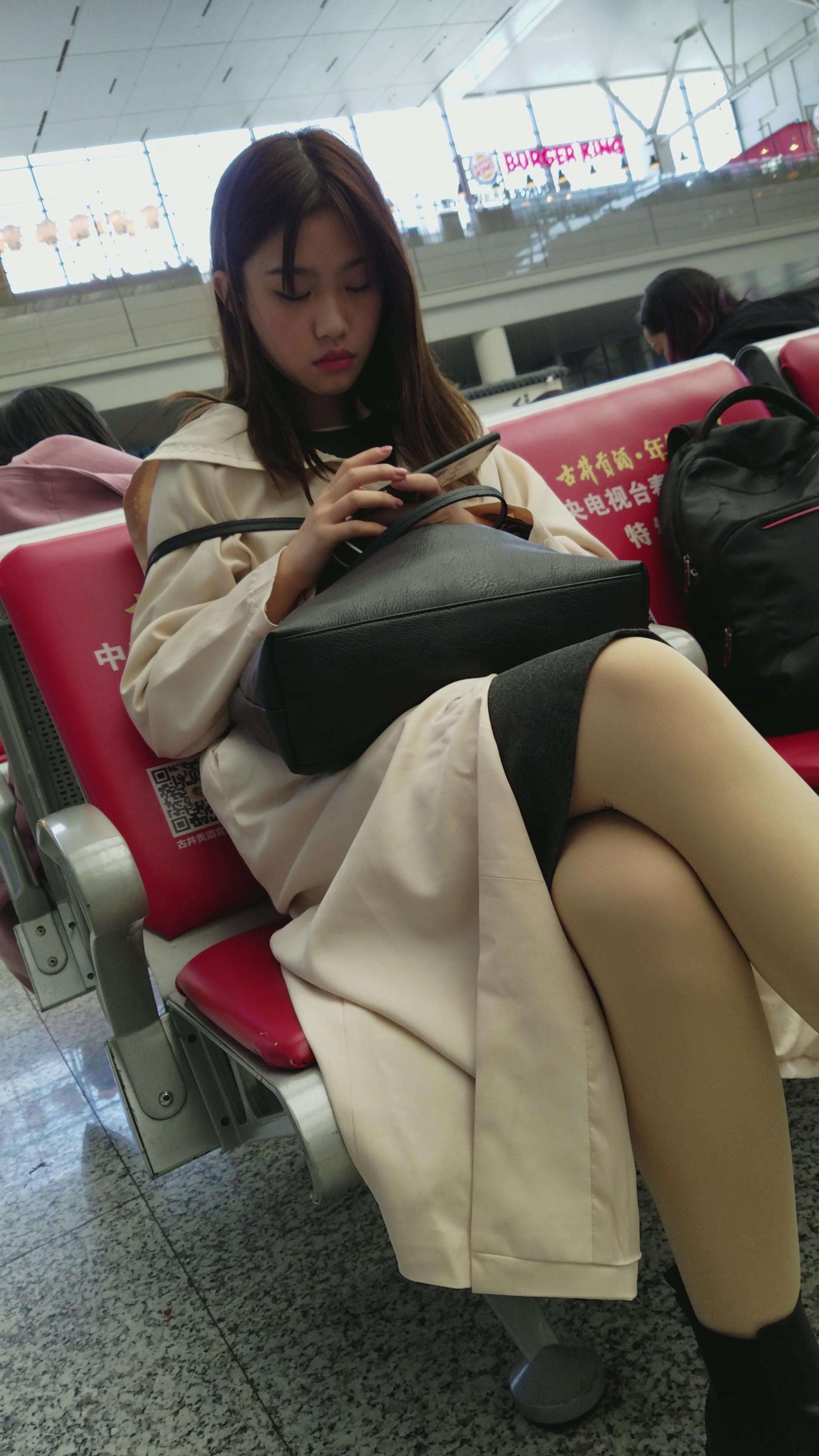 4k-候车室内拍摄文静甜美小女孩,白色丝袜丝滑 编号3084