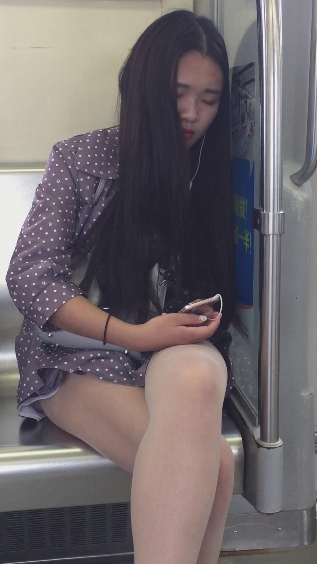 地铁上清纯漂亮的肉丝丝袜美腿板鞋少女低头玩手机 编号3092