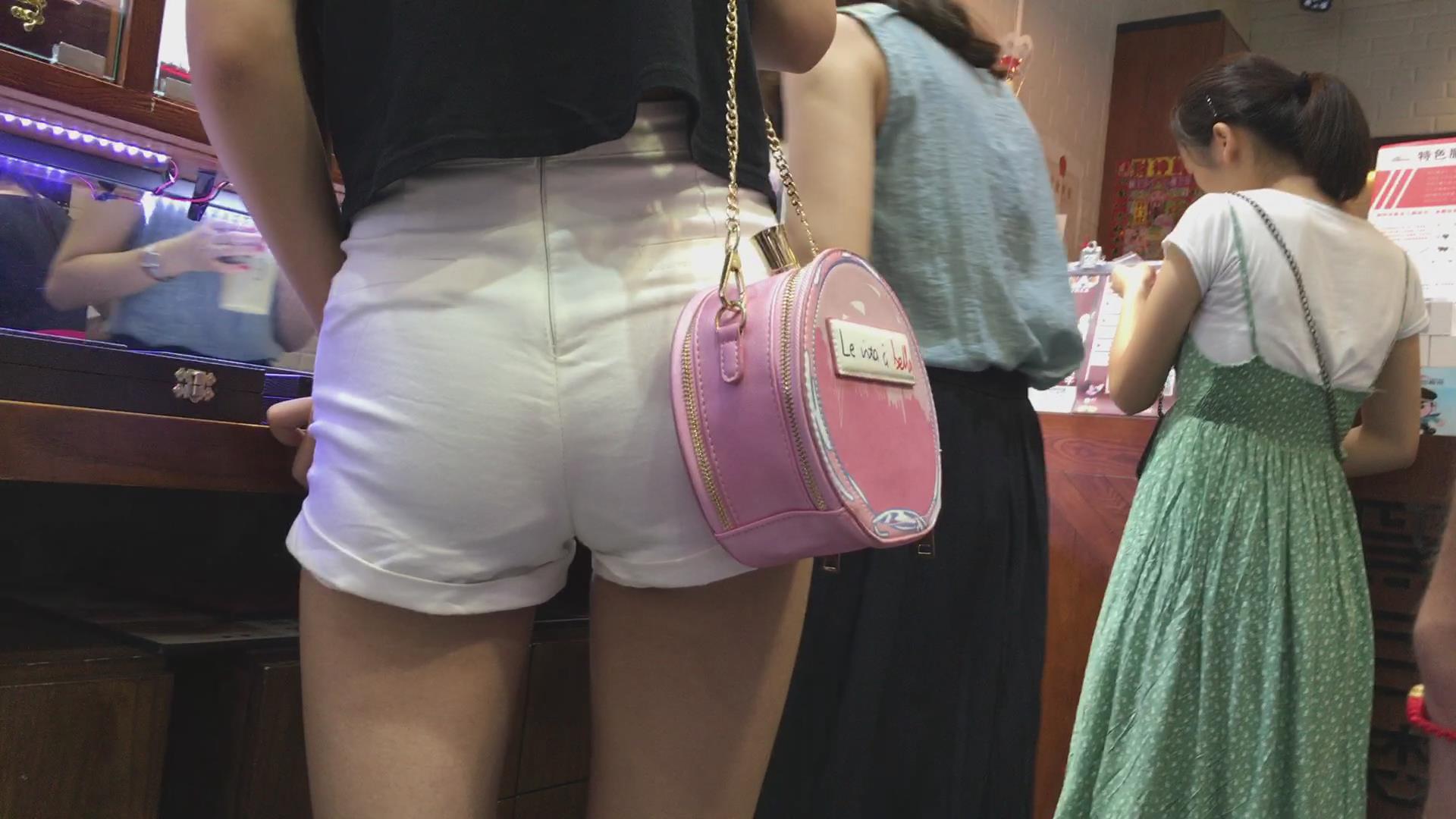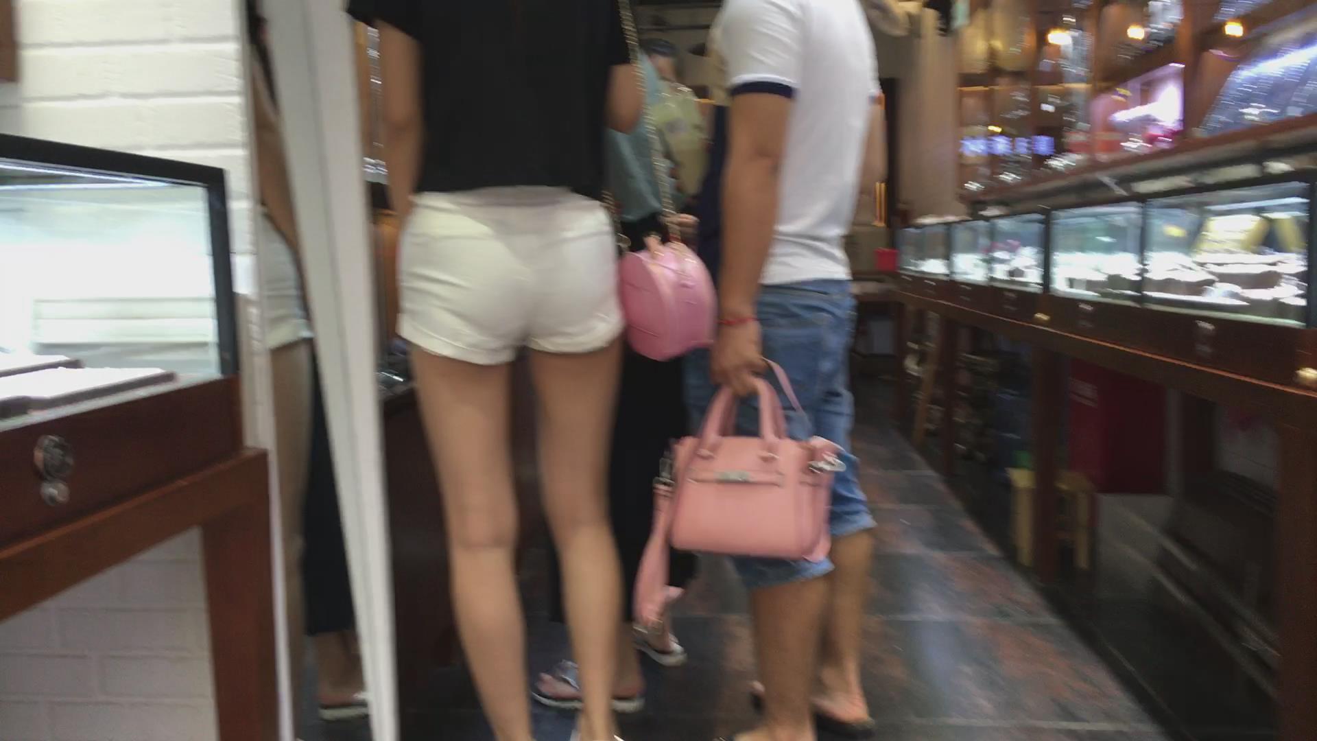 高腰白短热裤丰臀美眉陪姐妹逛商店 编号4539