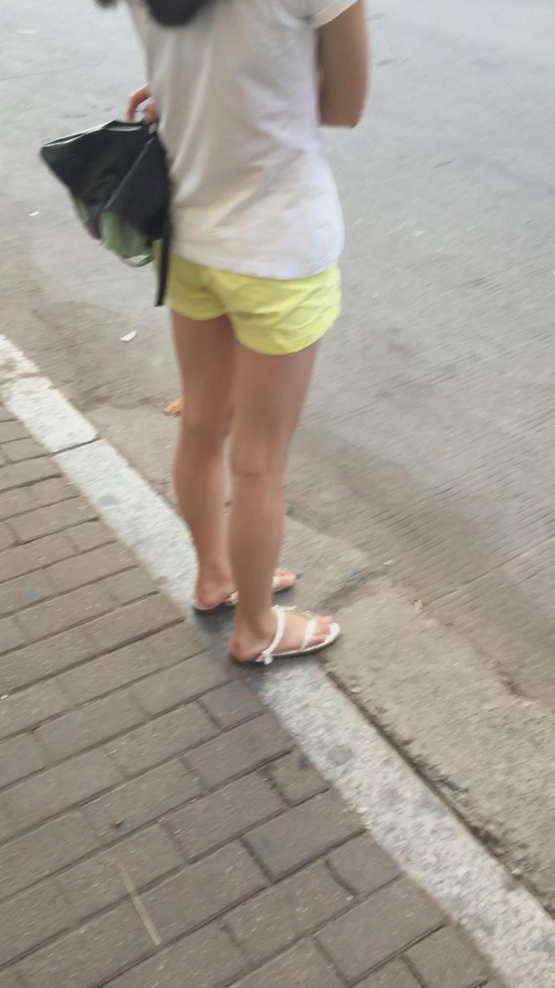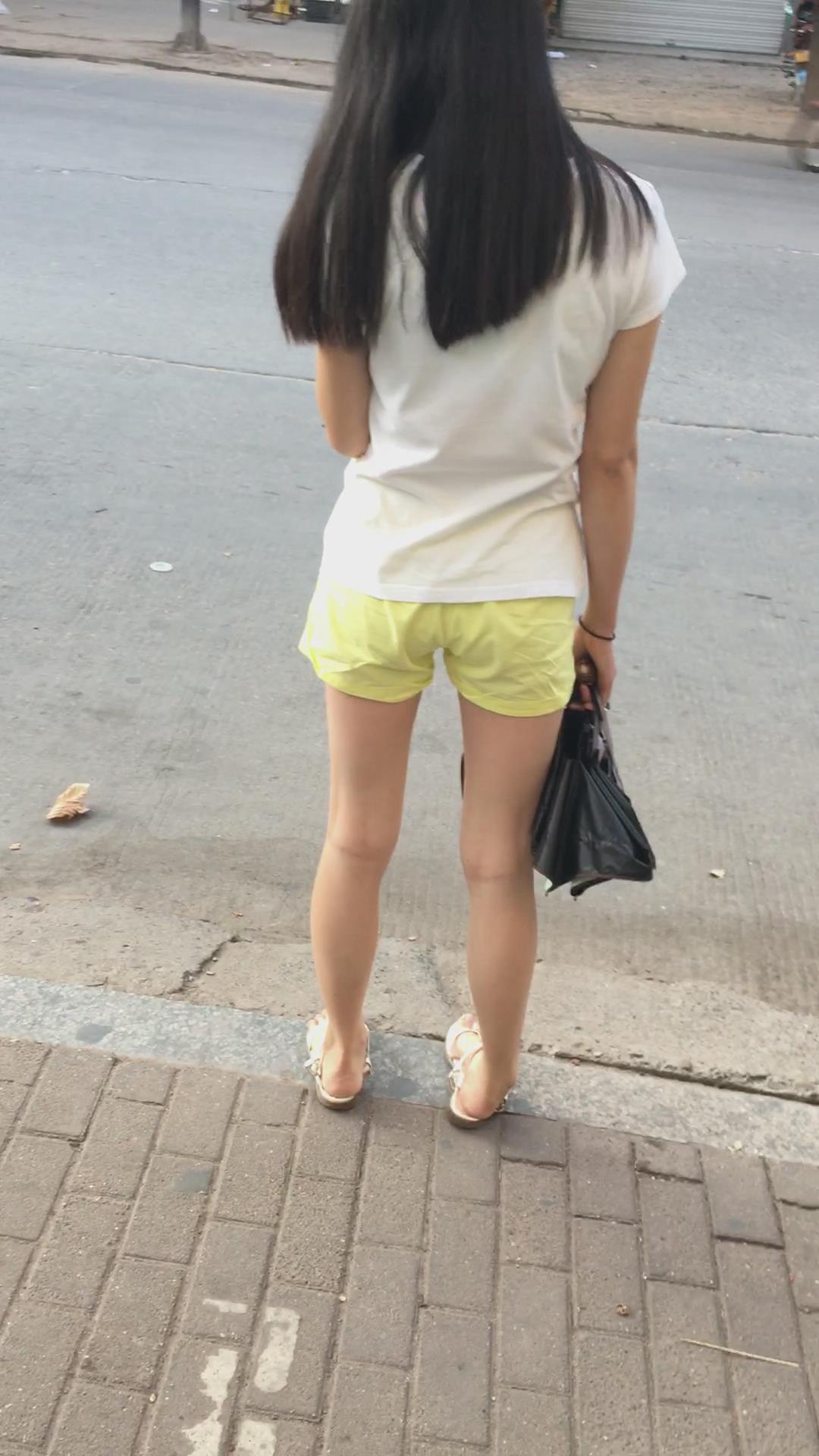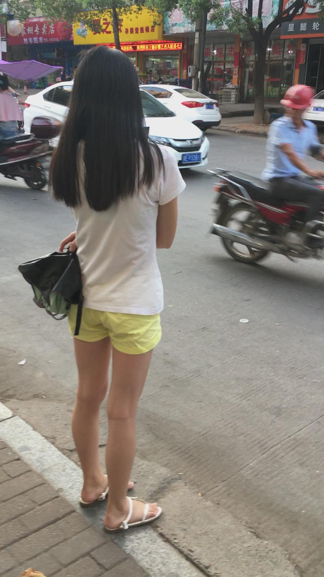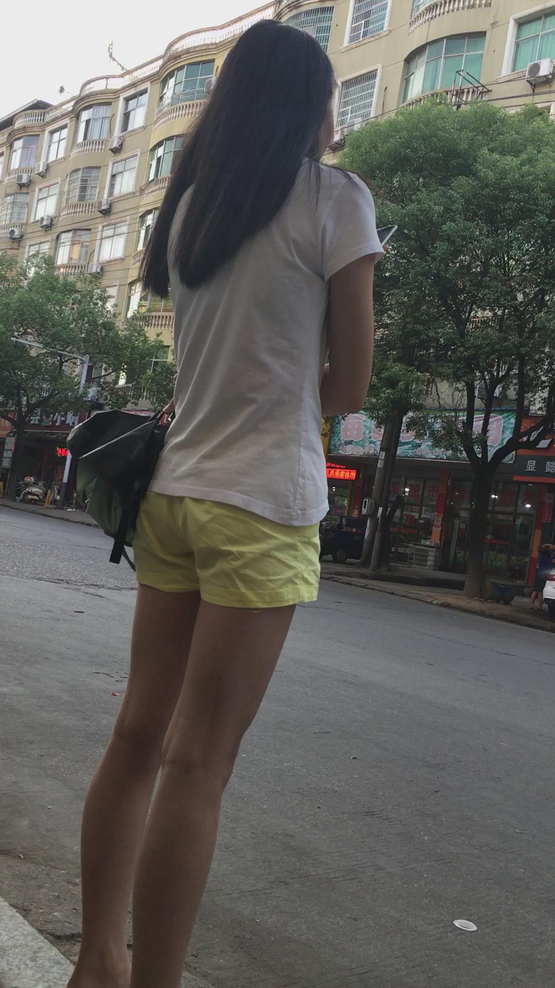 白色体恤黄色短裤娇小身材美眉 编号4071