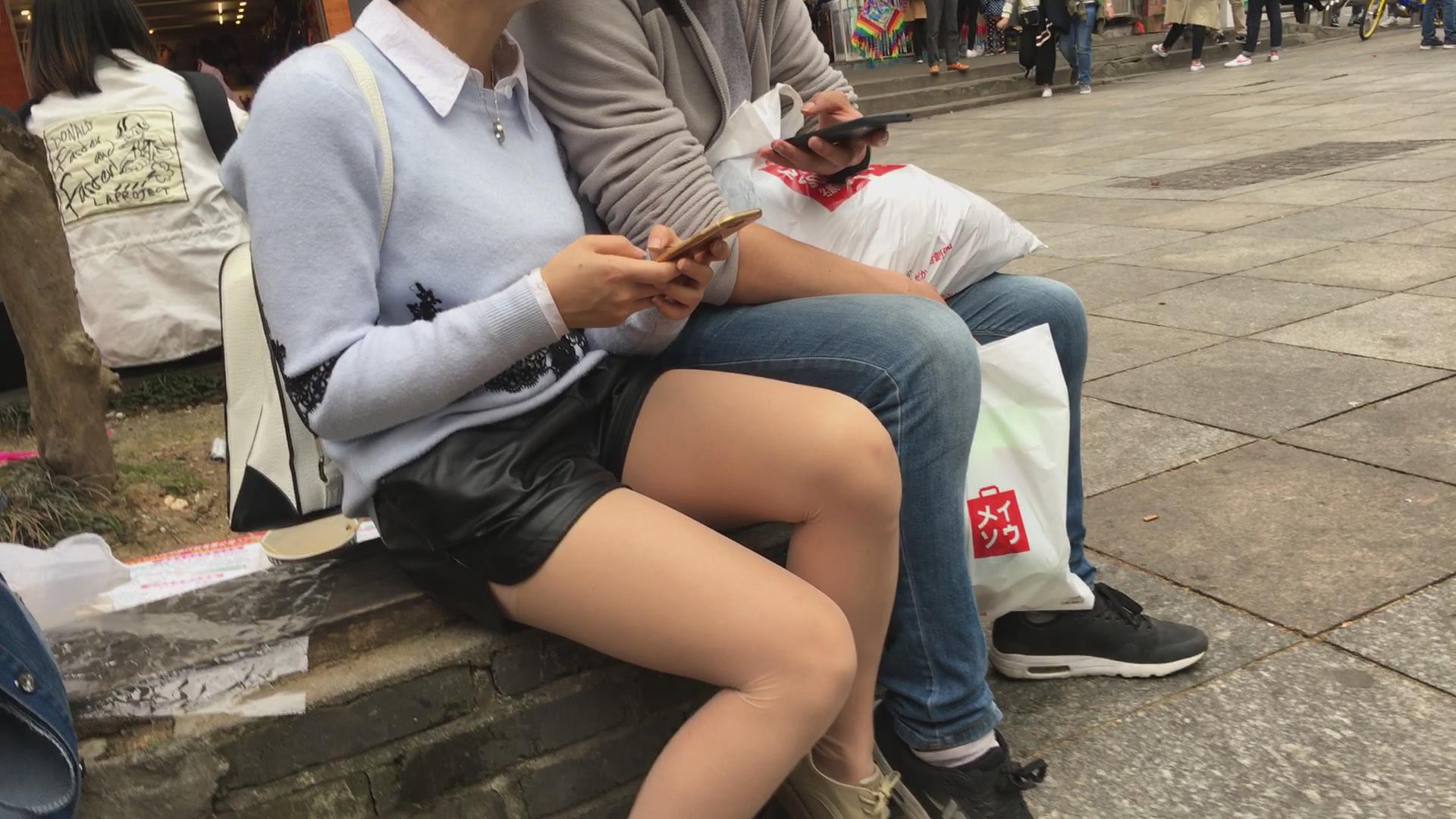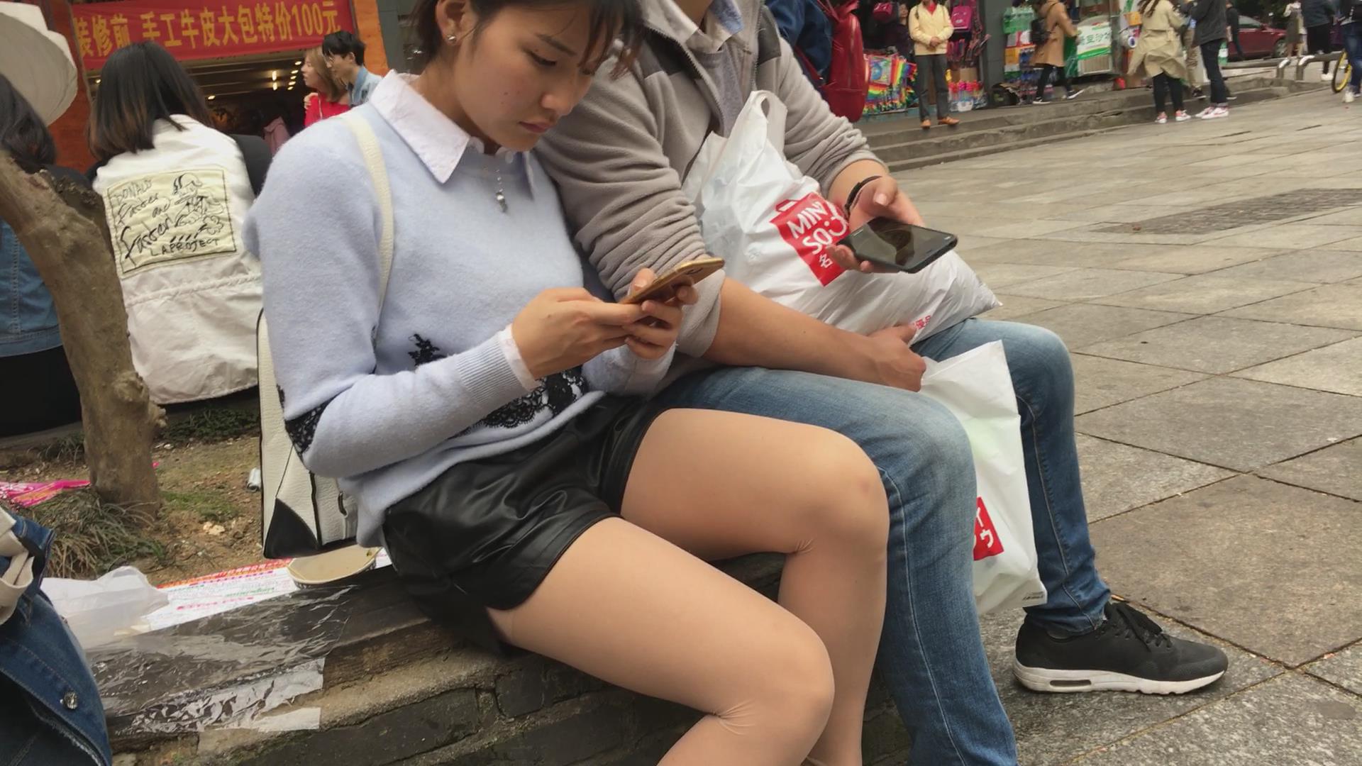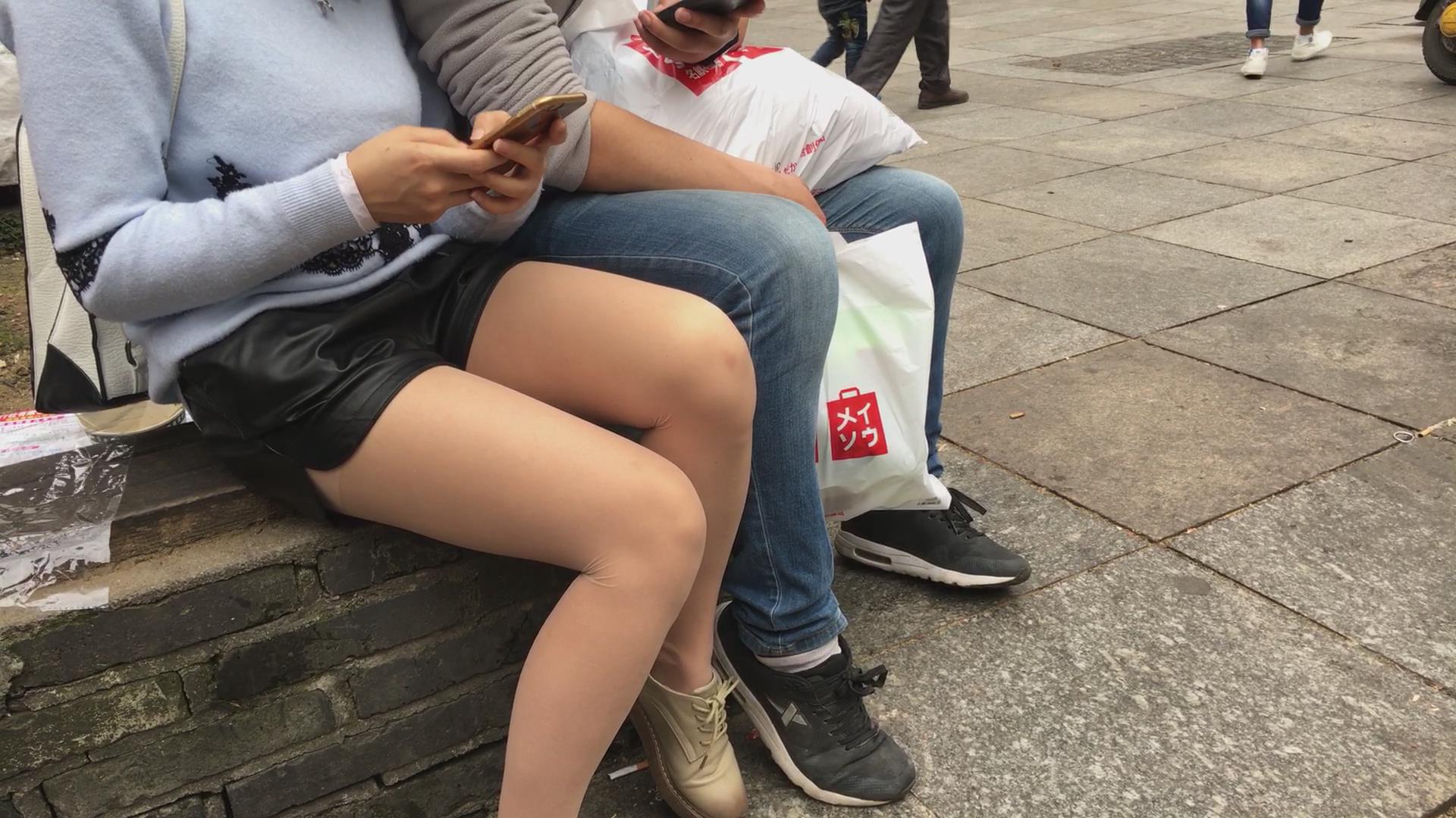 肉丝皮裤街拍美腿小姐姐 编号4092