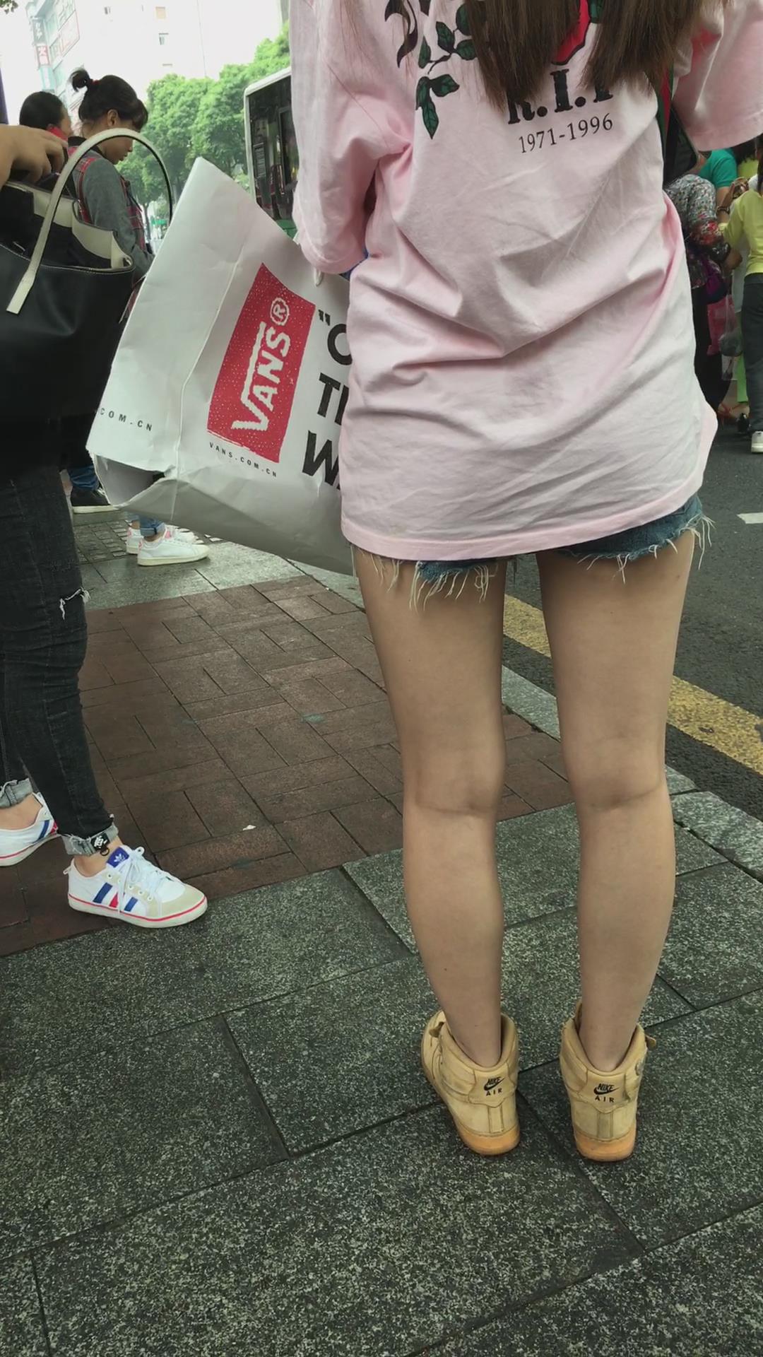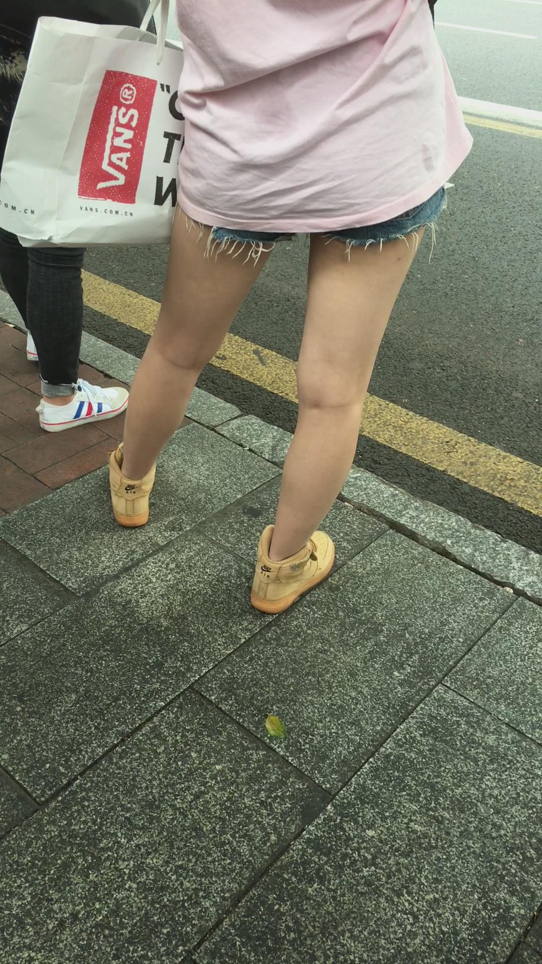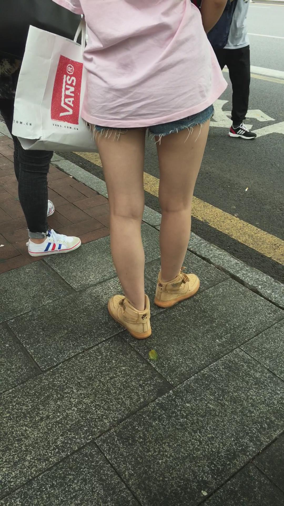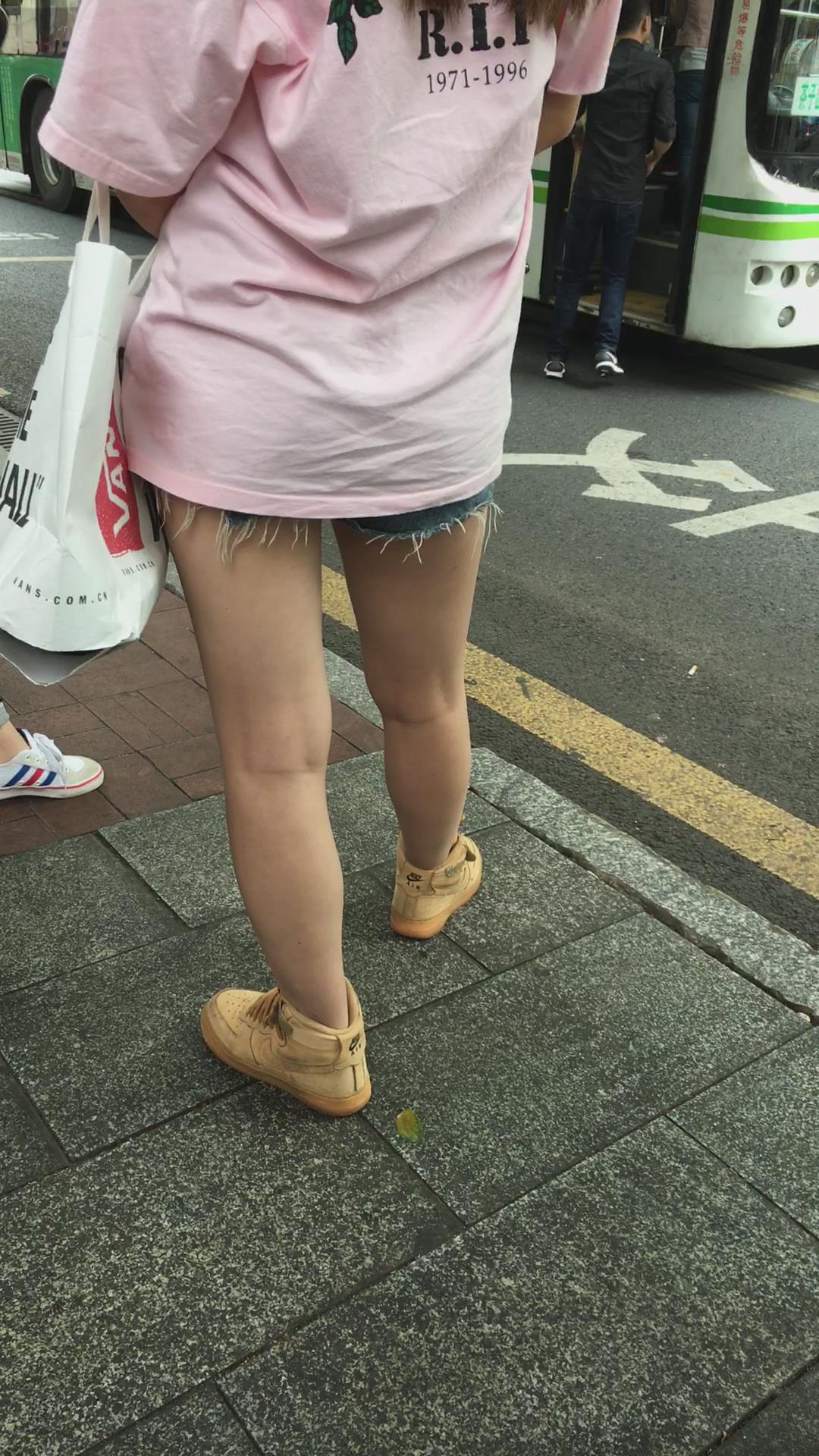粉色T恤衫超短热裤美腿街拍美女 编号4105