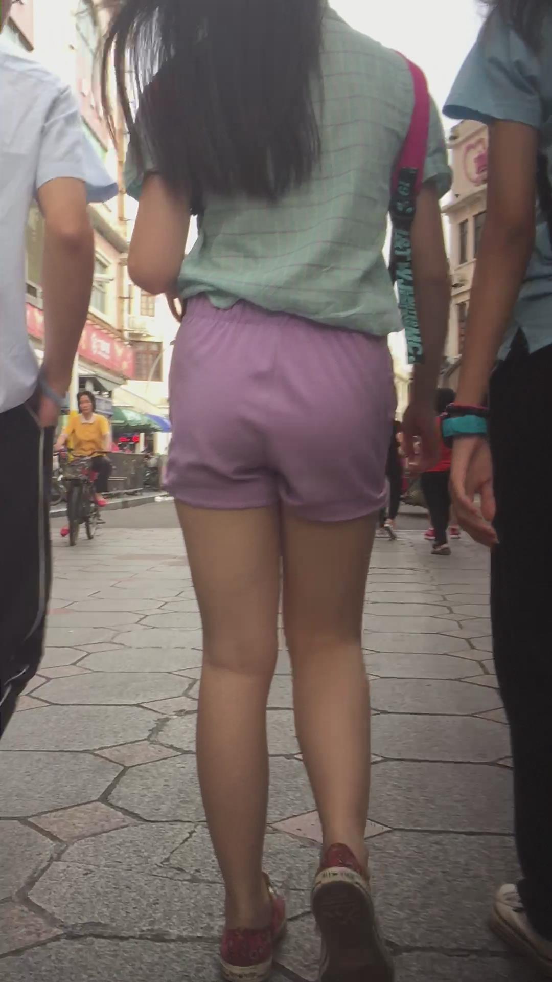 跟拍紫色热裤小清新街拍美女 编号4110