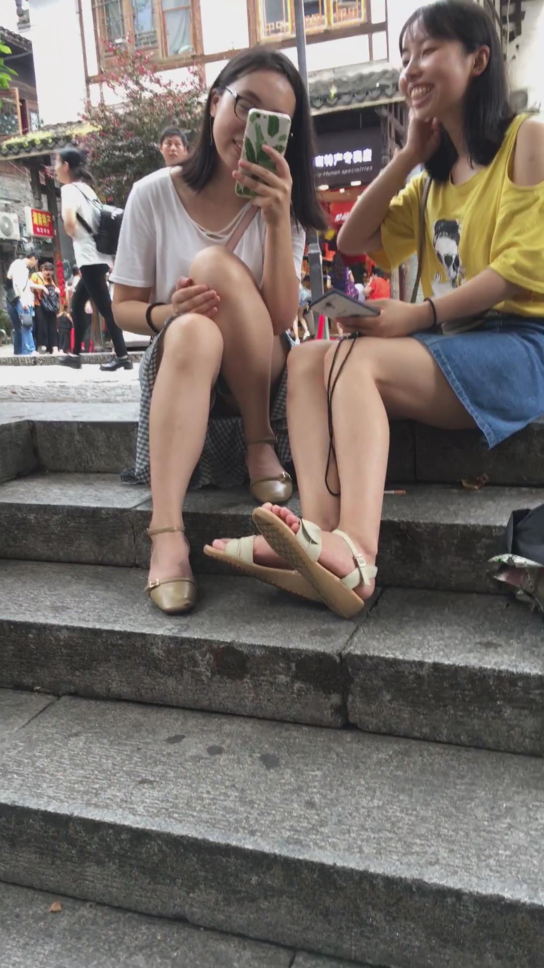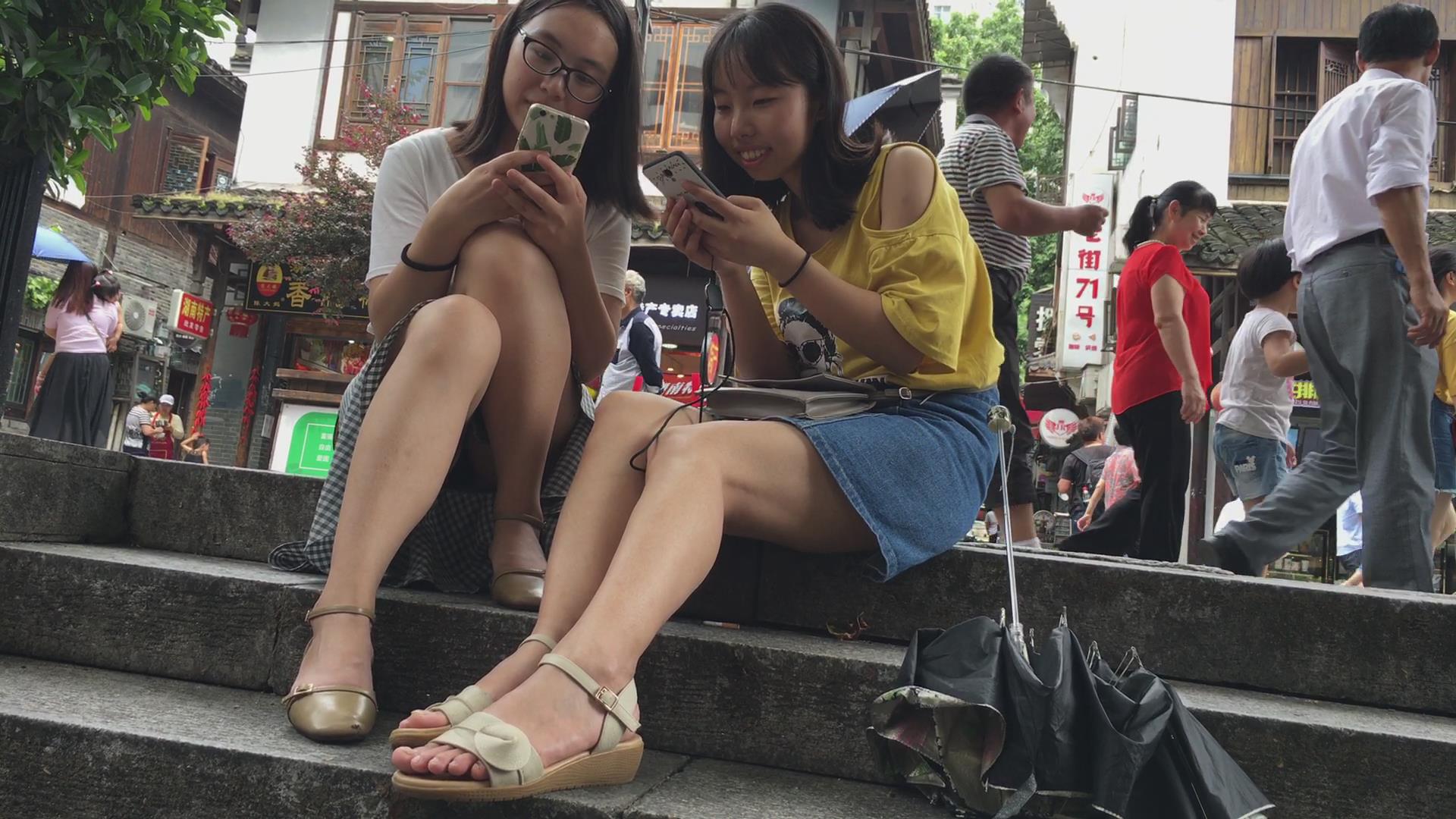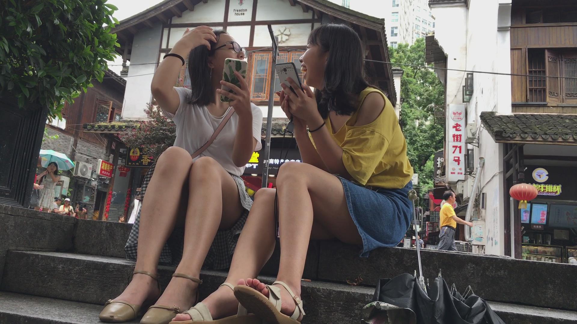 美腿小姐妹俩大树下研究自拍技巧 编号4118