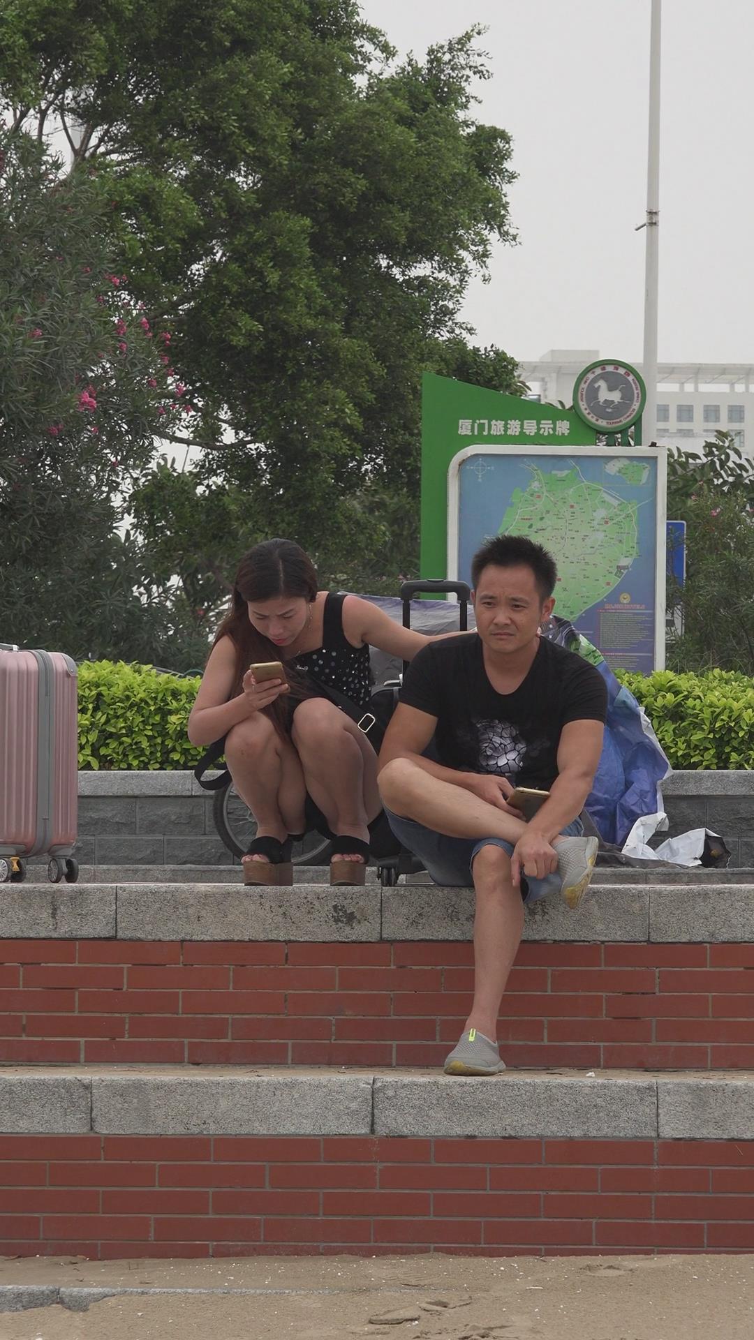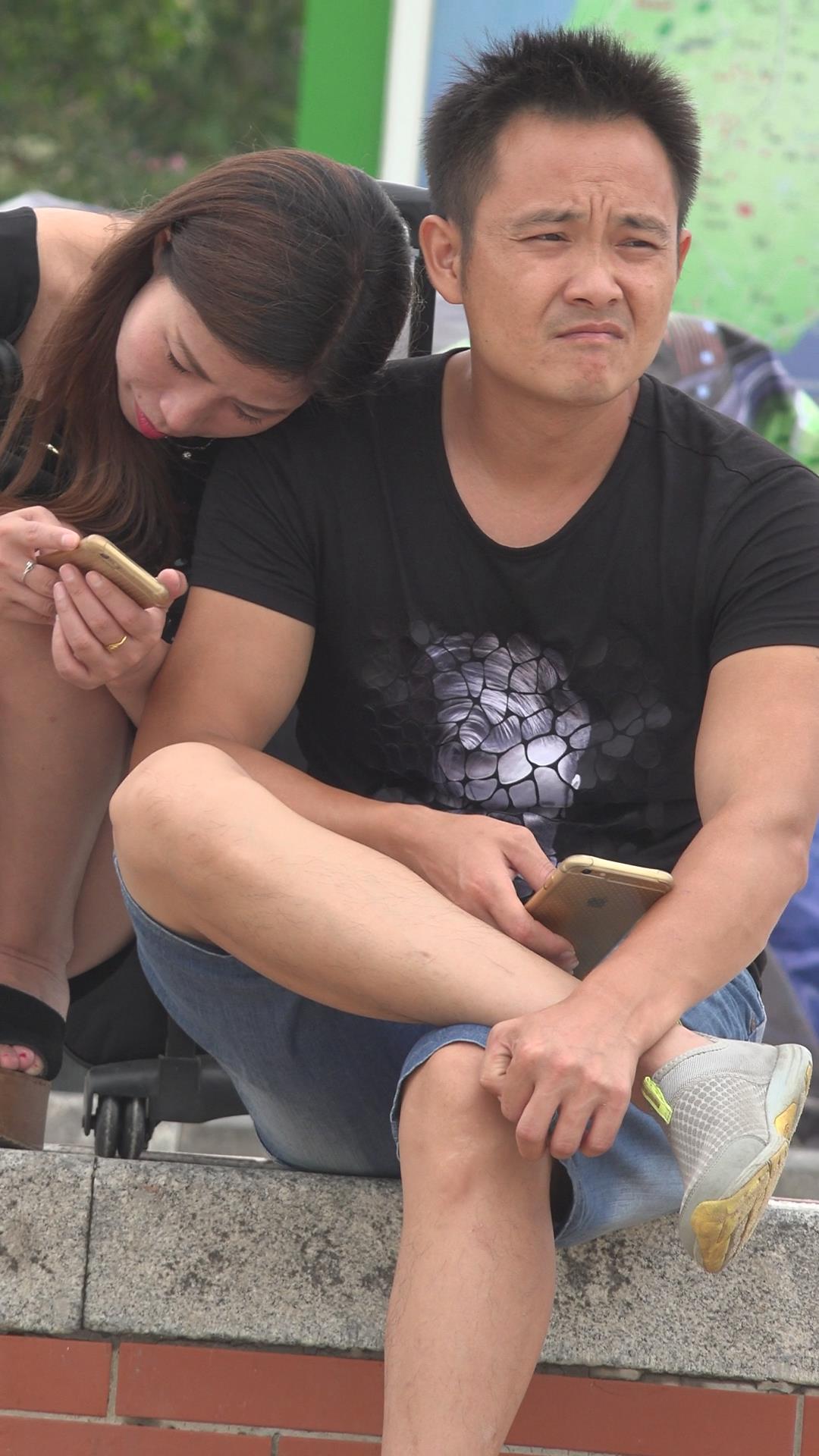 街拍花坛边蹲着玩手机的白皙美腿美女 编号4122