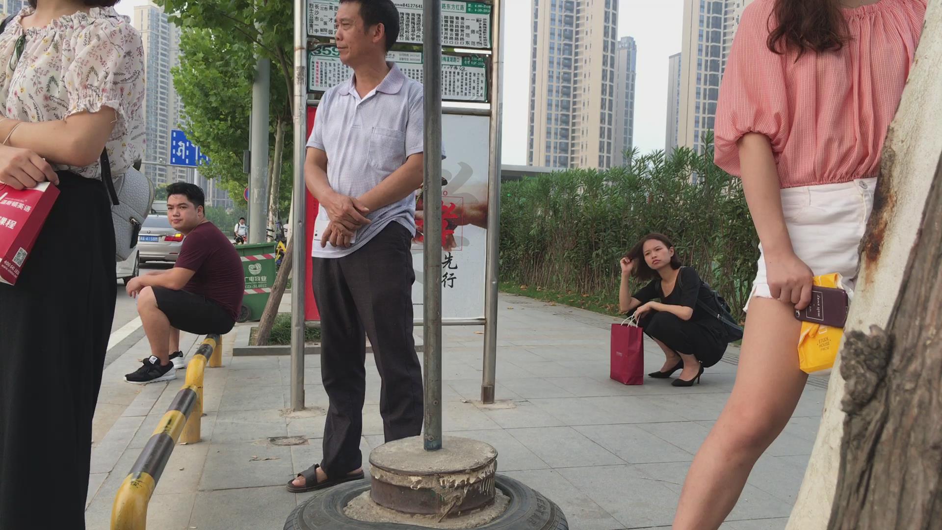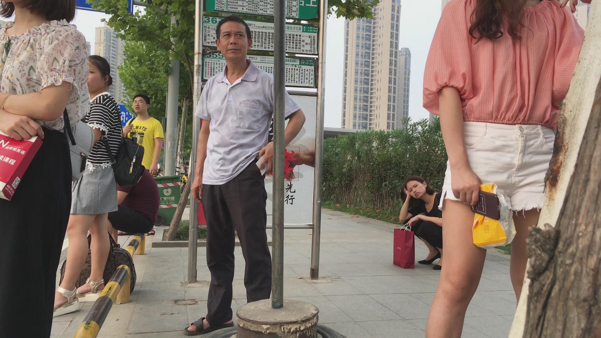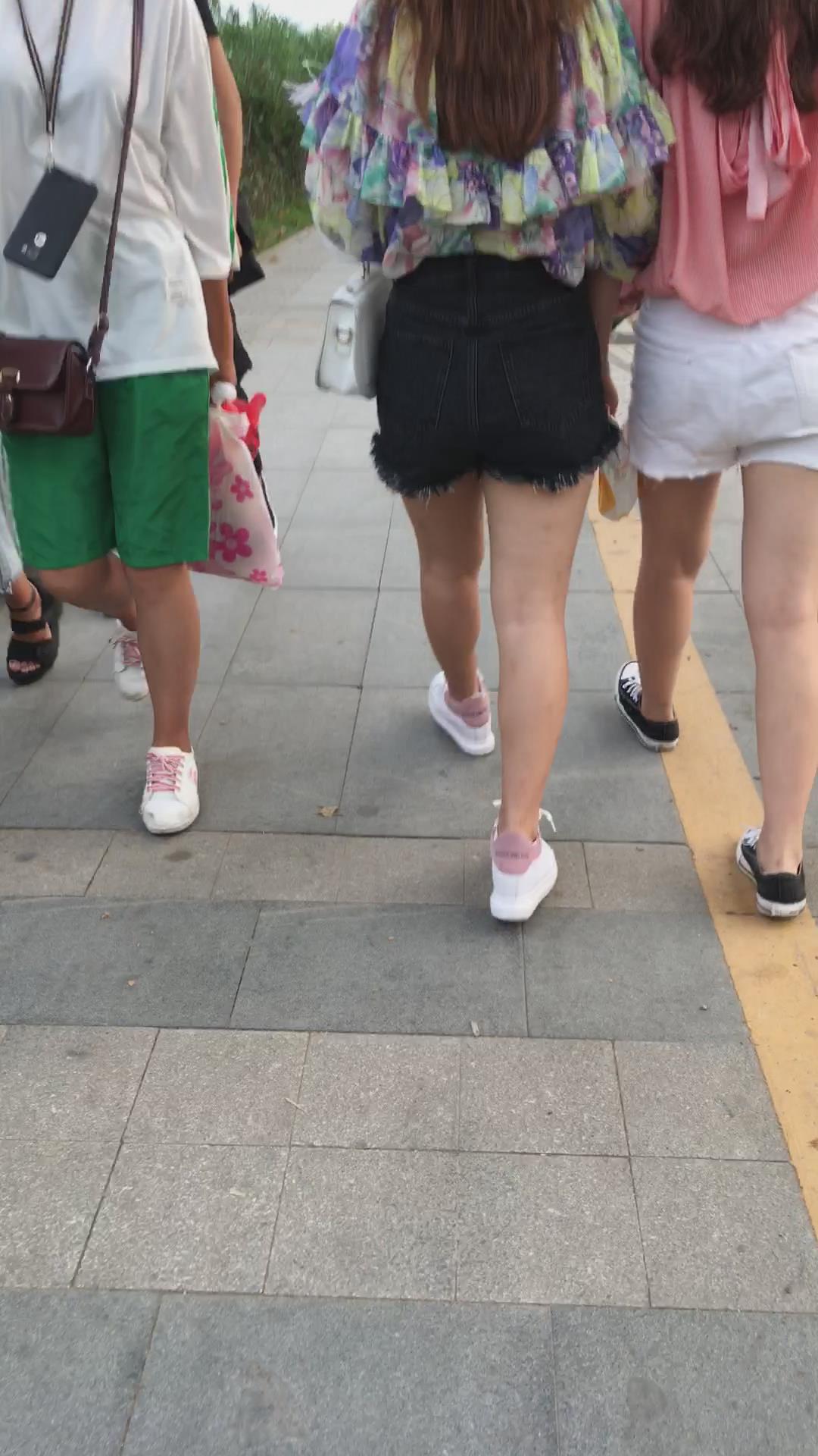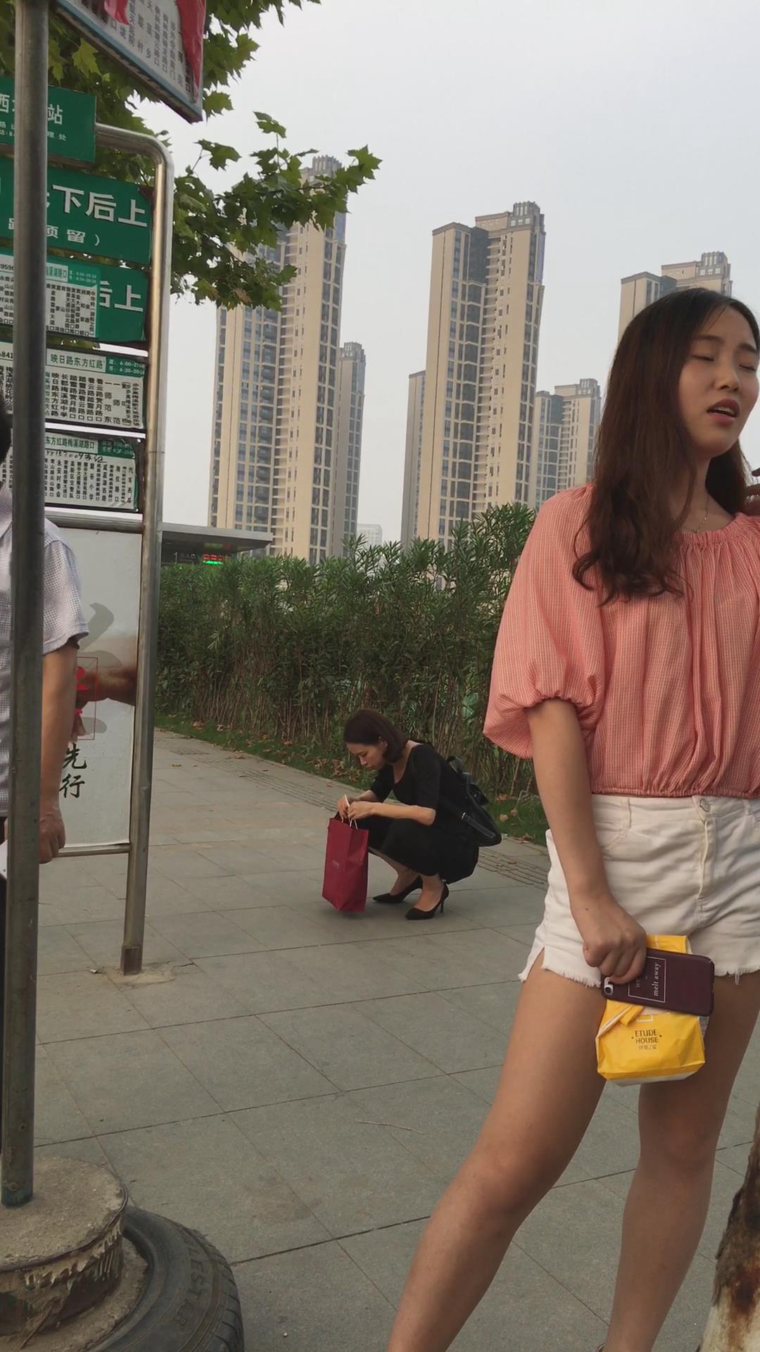 街拍粉衣热裤美颜漂亮小姐姐 编号4123