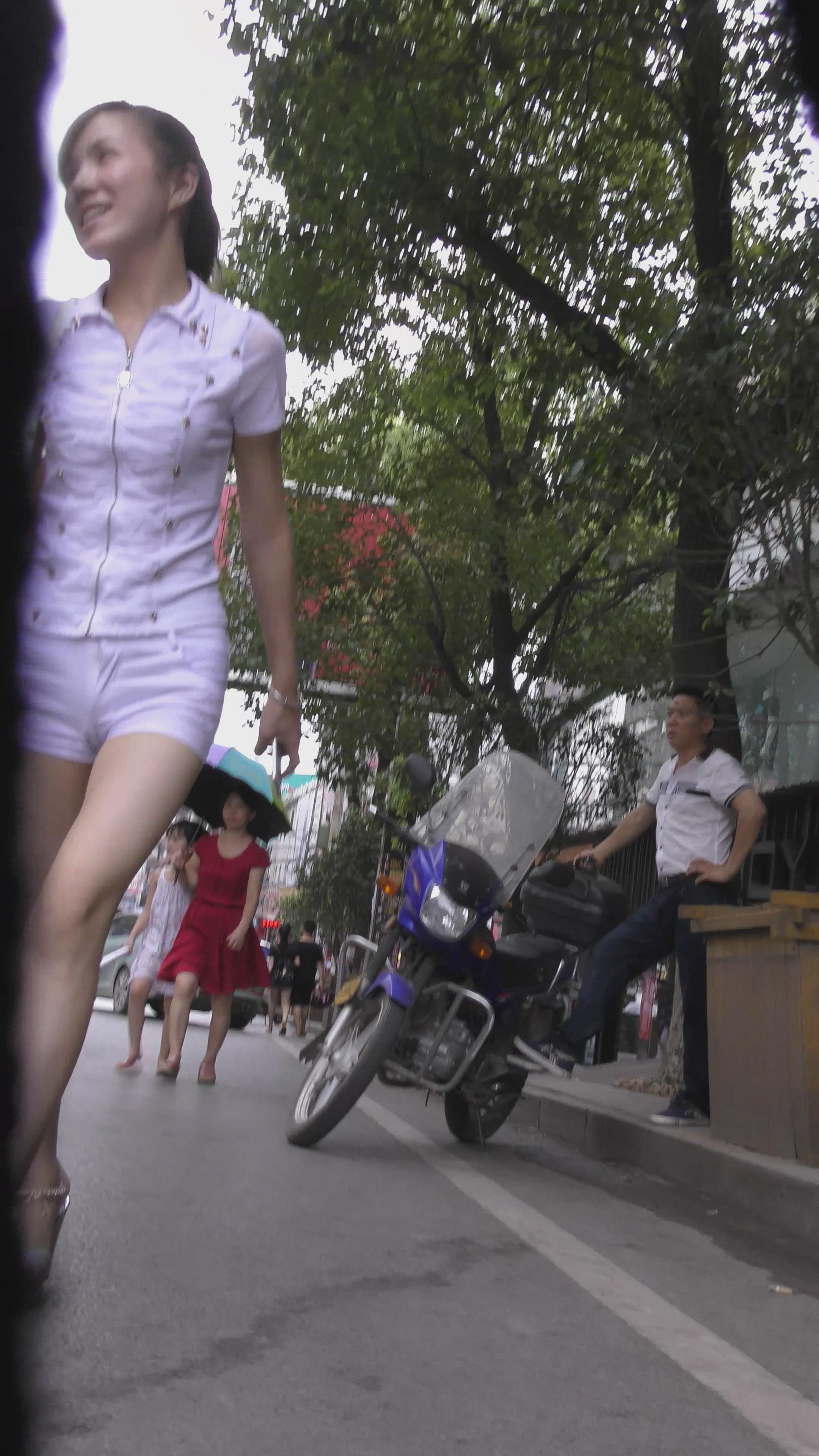 街拍白衣白裤小眼睛妹纸 编号4127