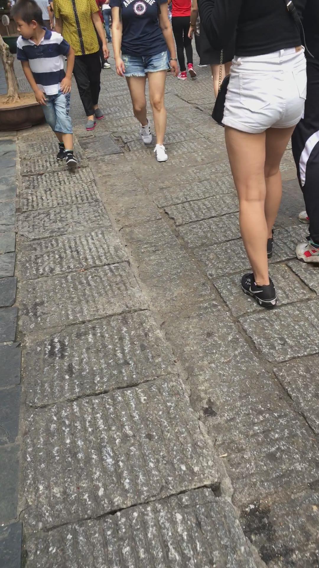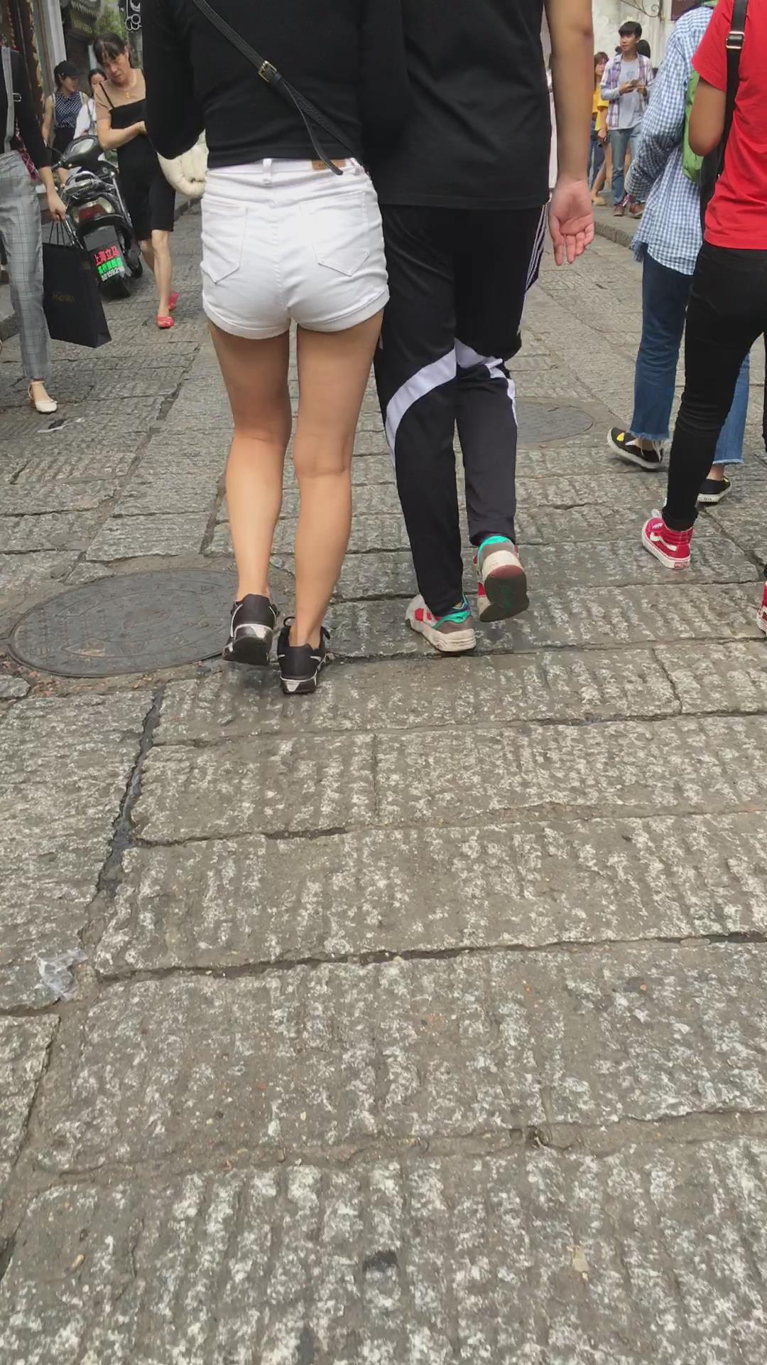 街拍极品苹果臀高腰热裤美女 编号4133