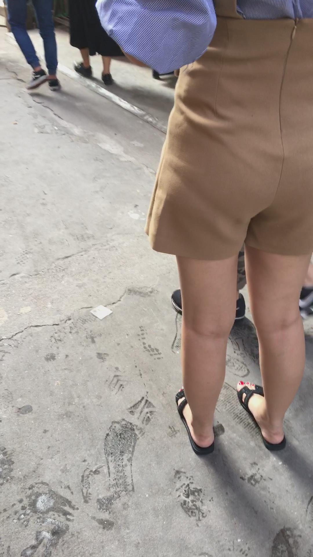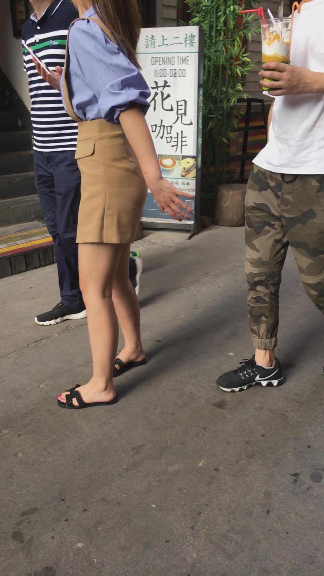 街拍极品美臀吊带裤马尾辫美女 编号4135