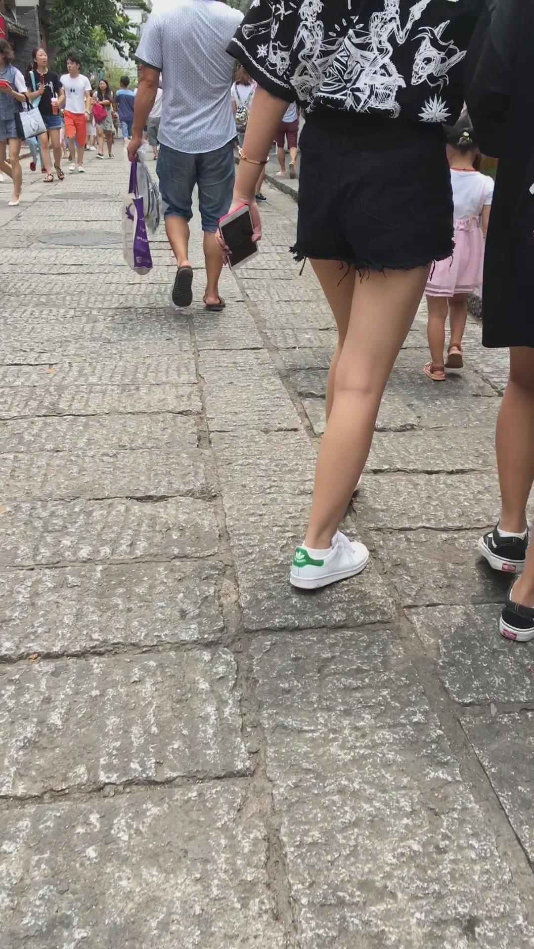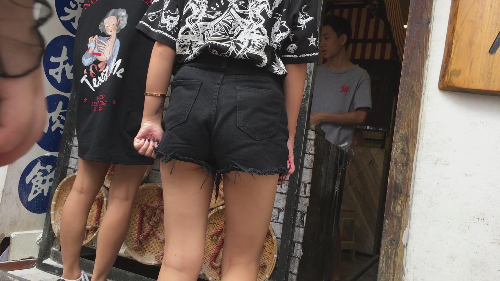 黑色牛仔热裤苹果臀美眉 编号4148
