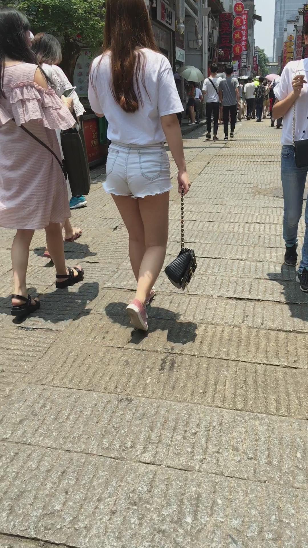 街拍丰腴苹果臀热裤青春气息美女 编号4161