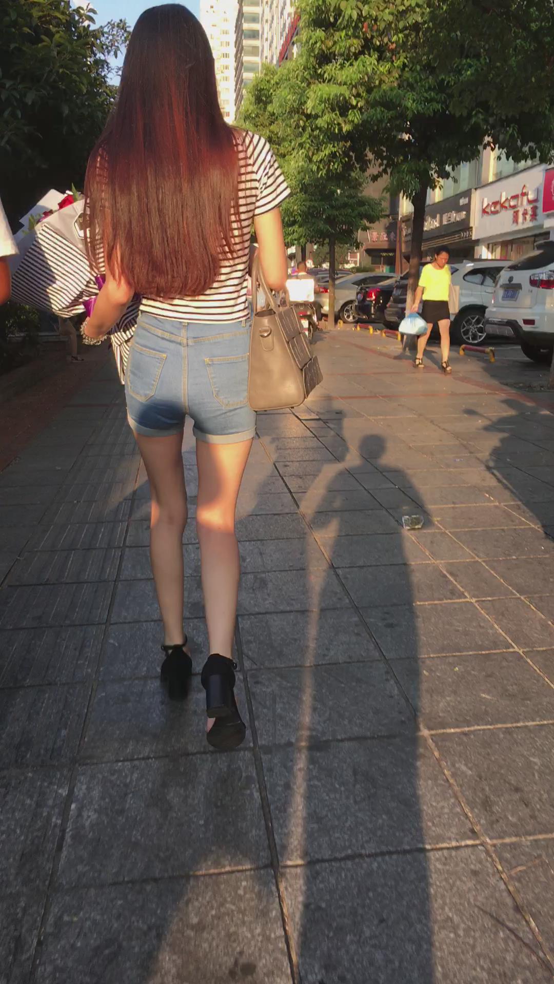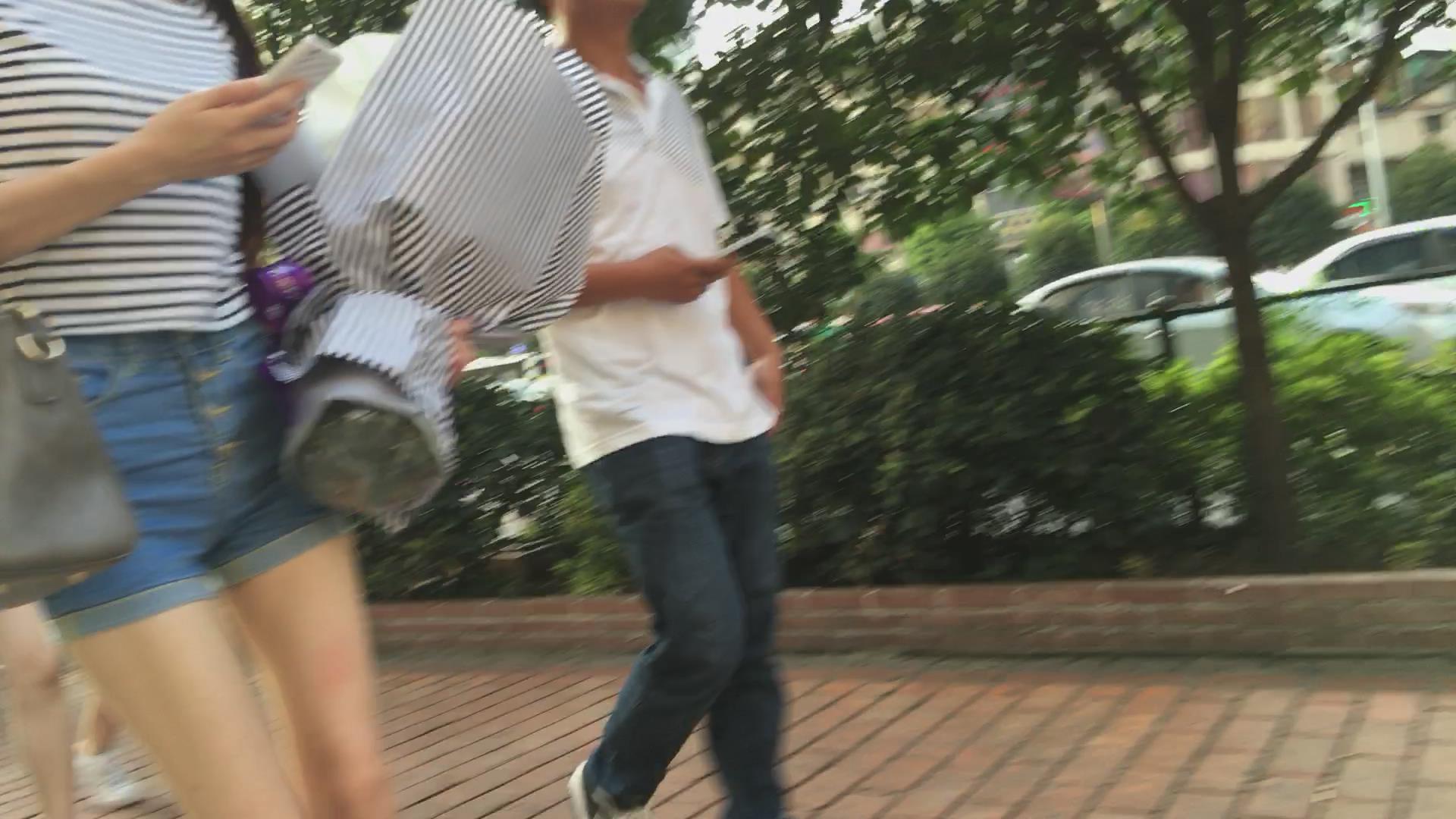 苗条细腿高挑热裤美女收到一束花笑得很开心 编号4192