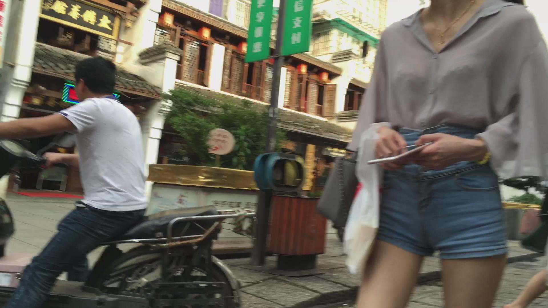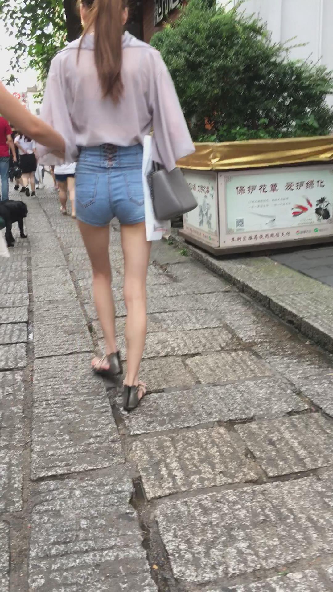 街拍高腰热裤修长美腿透明雪纺衫高挑美女 编号4225