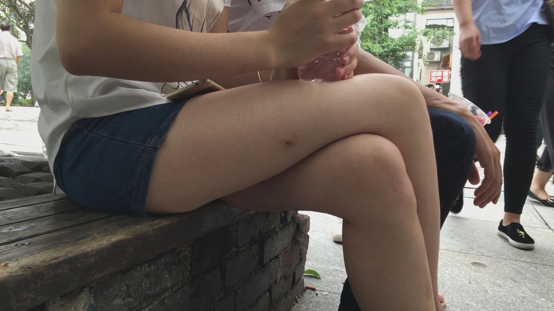 白皙美腿牛仔热裤小美女 编号4240