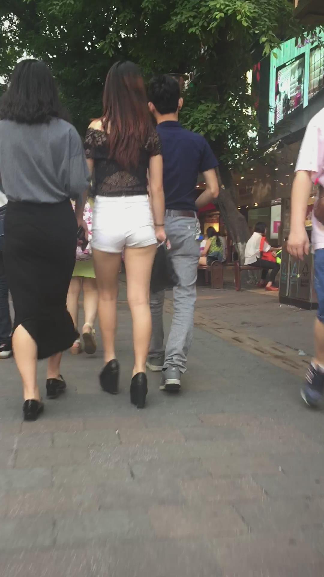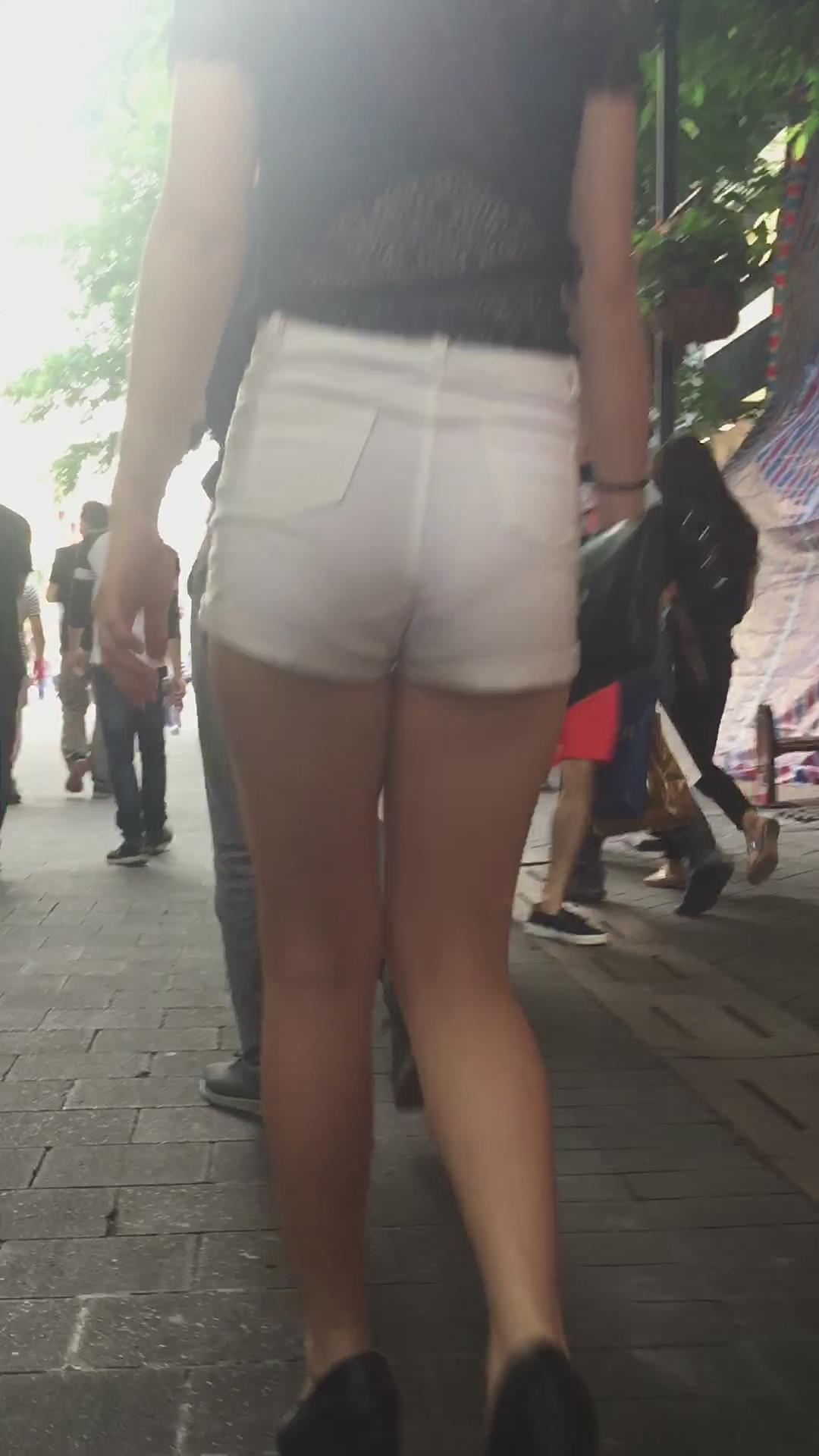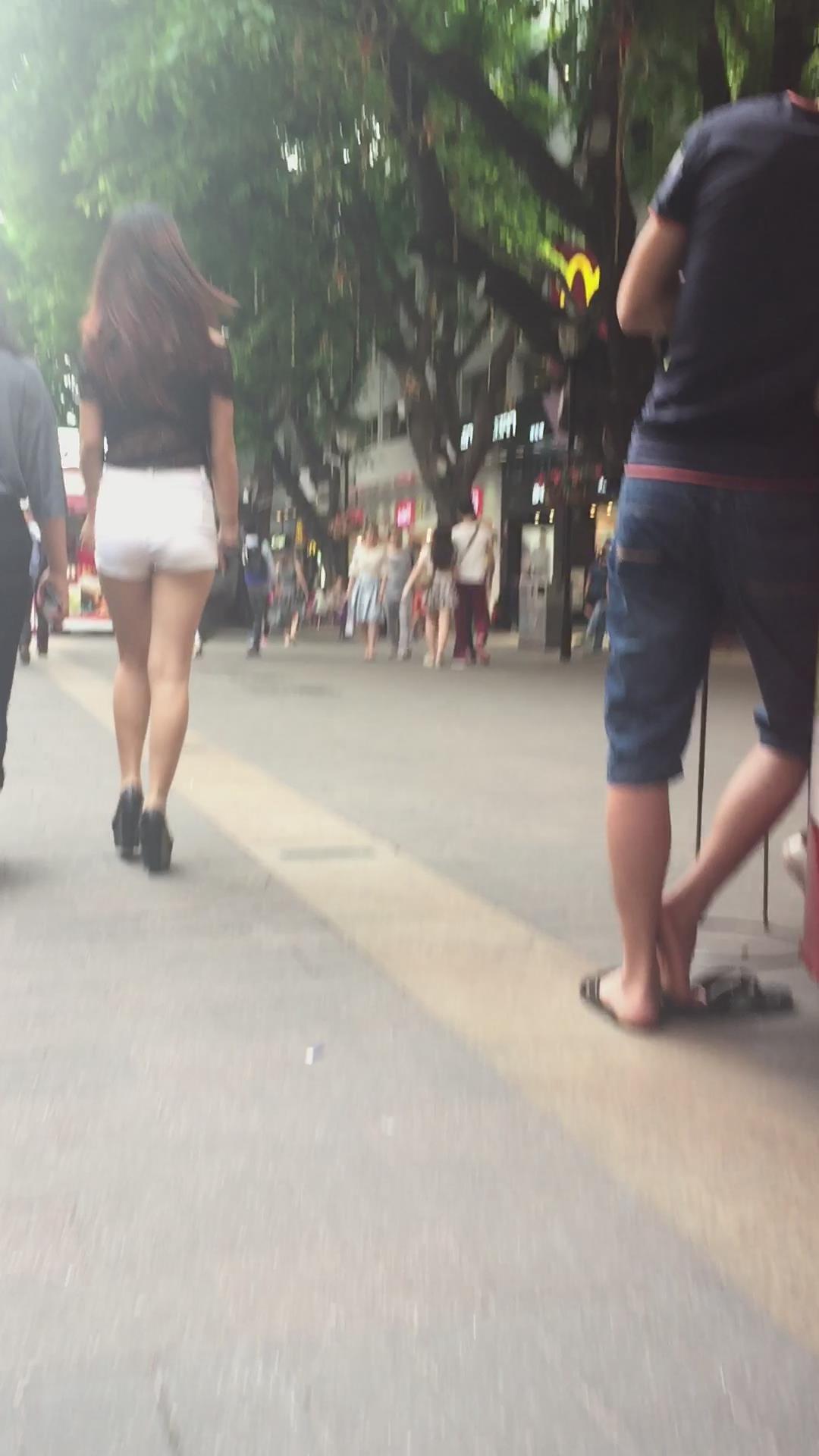 街拍高腰热裤苹果臀白皙美腿颜值美女 编号4241