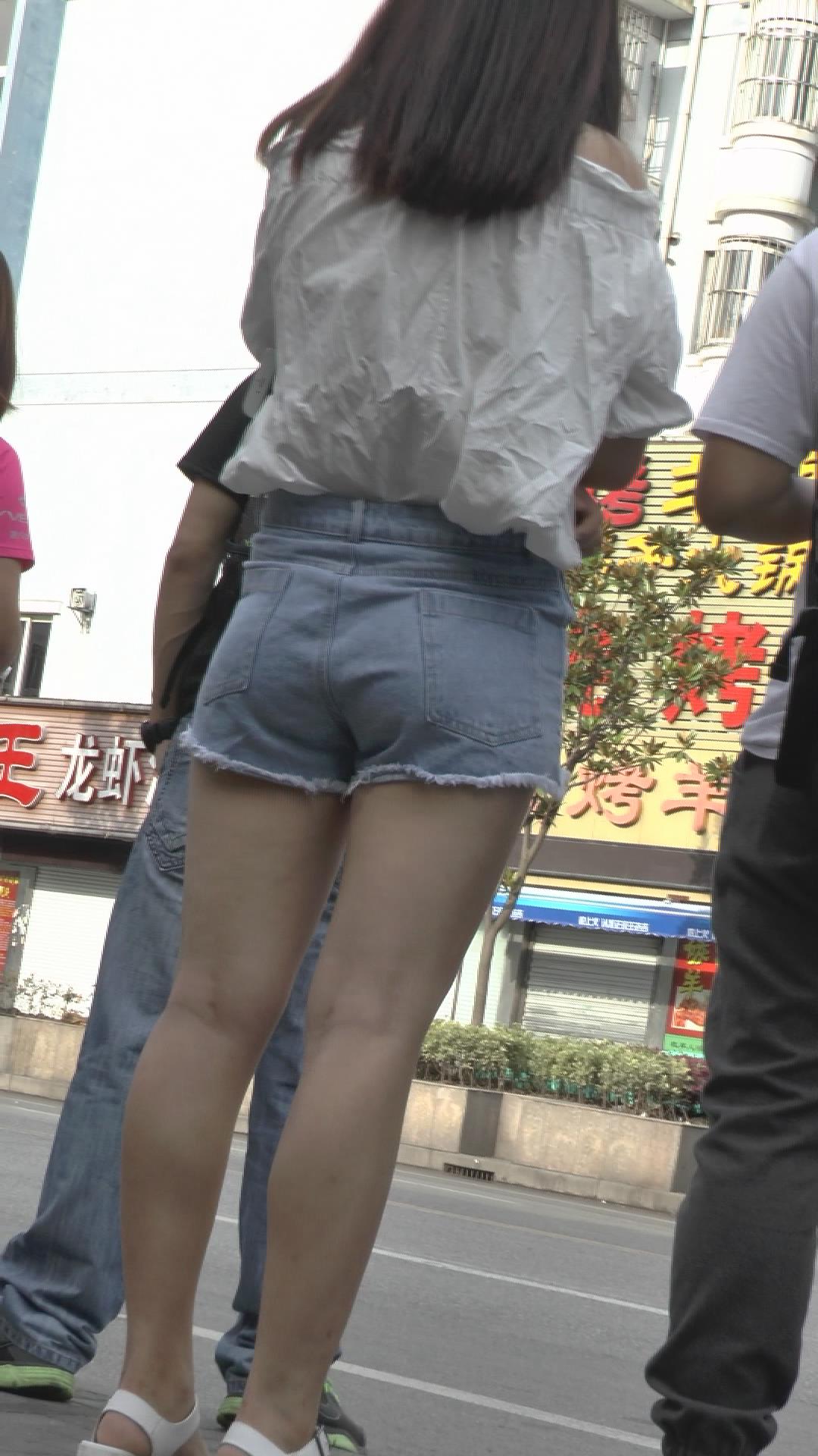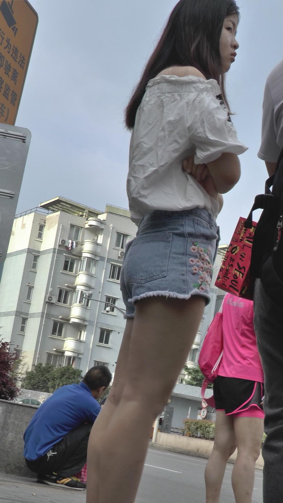 街拍路边等车的性感超短热裤美女 编号4263