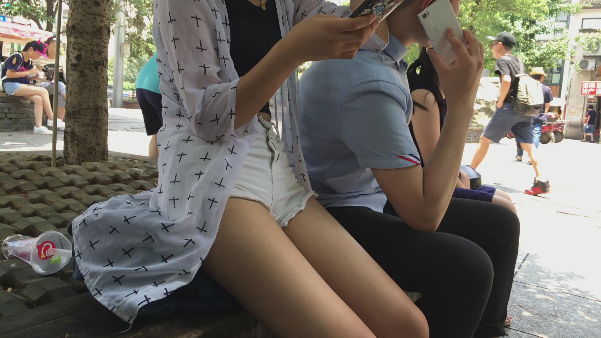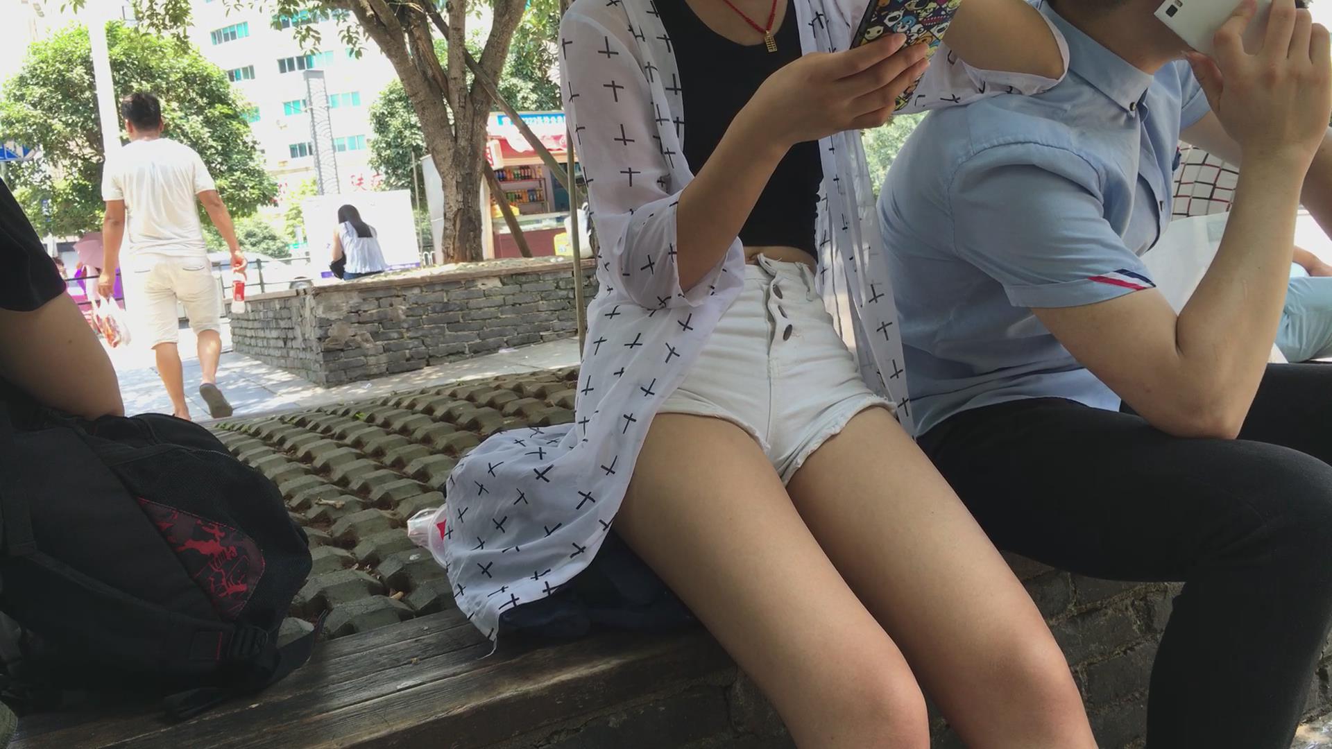 花坛边休息的长腿热裤小清新美眉 编号4272