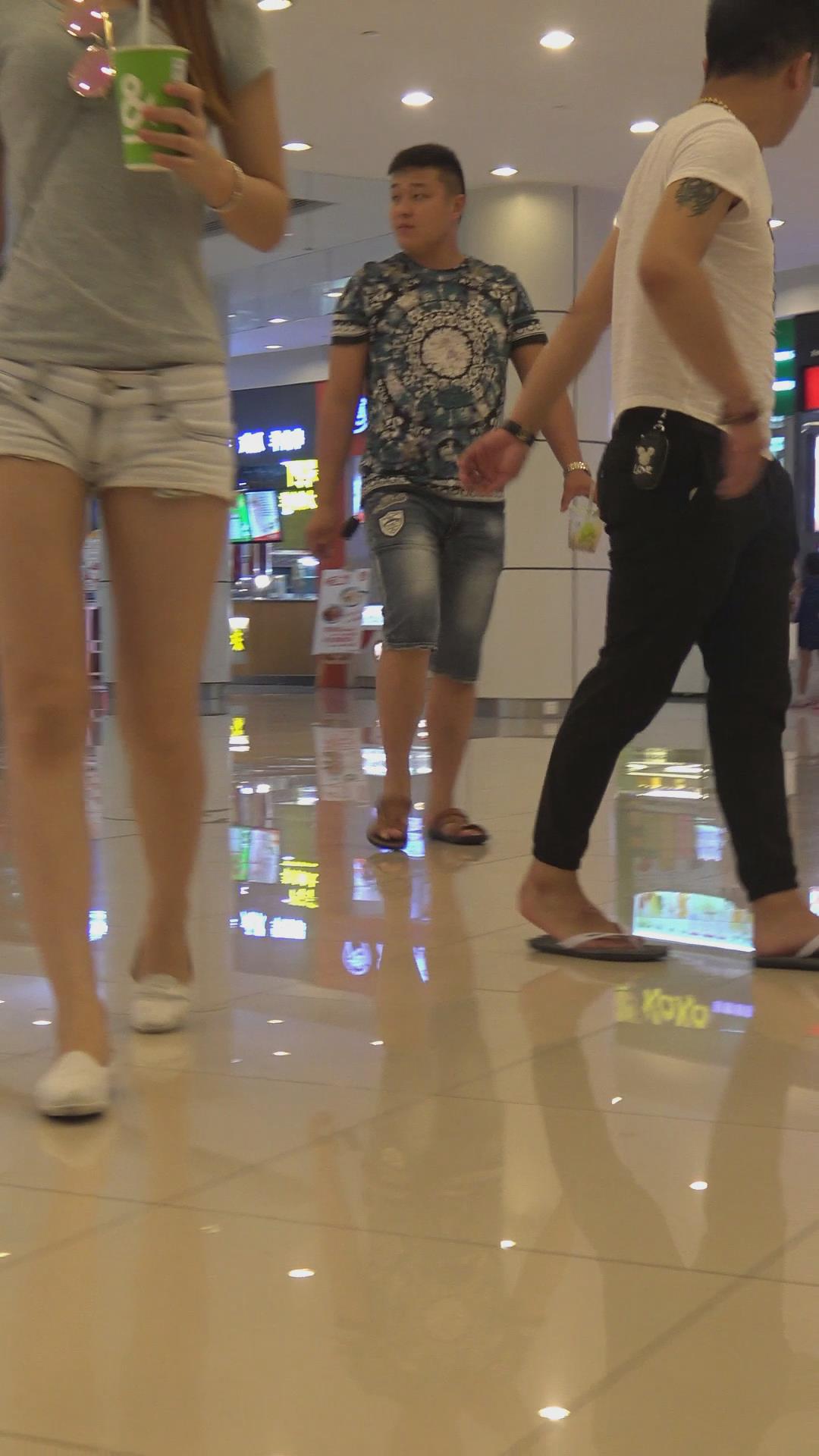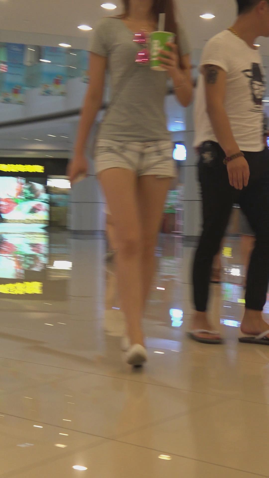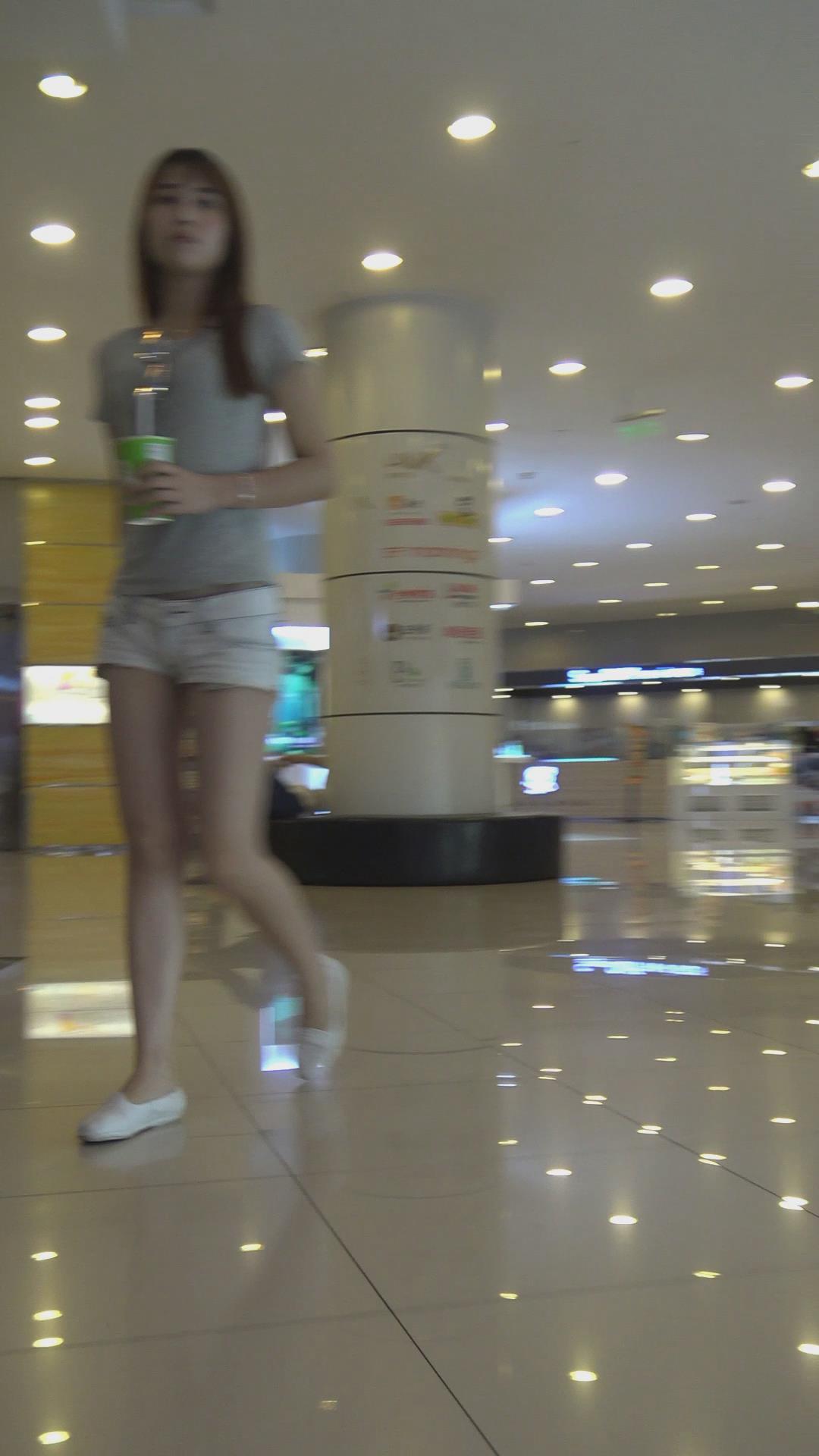 商场拍摄长腿热裤青春活力妹子,这feel如同模特走秀 编号4273