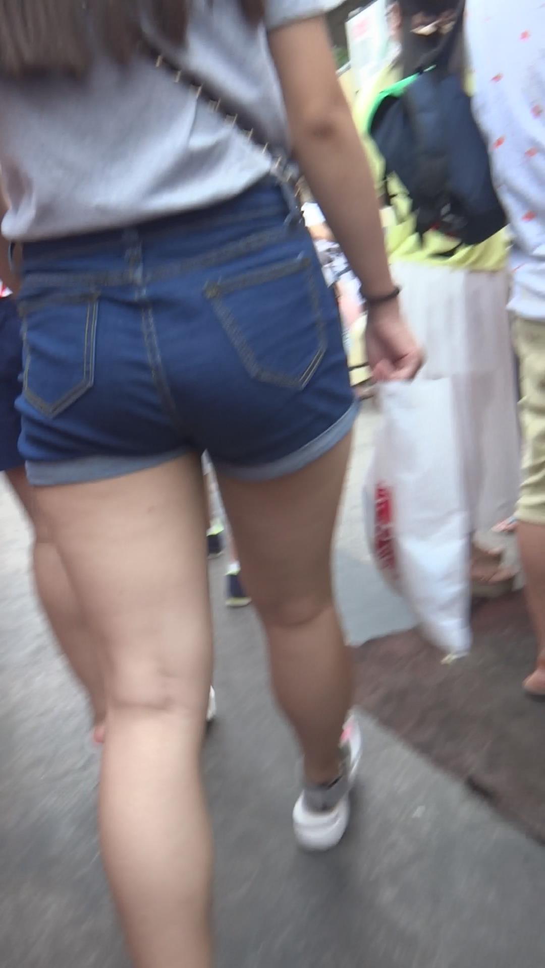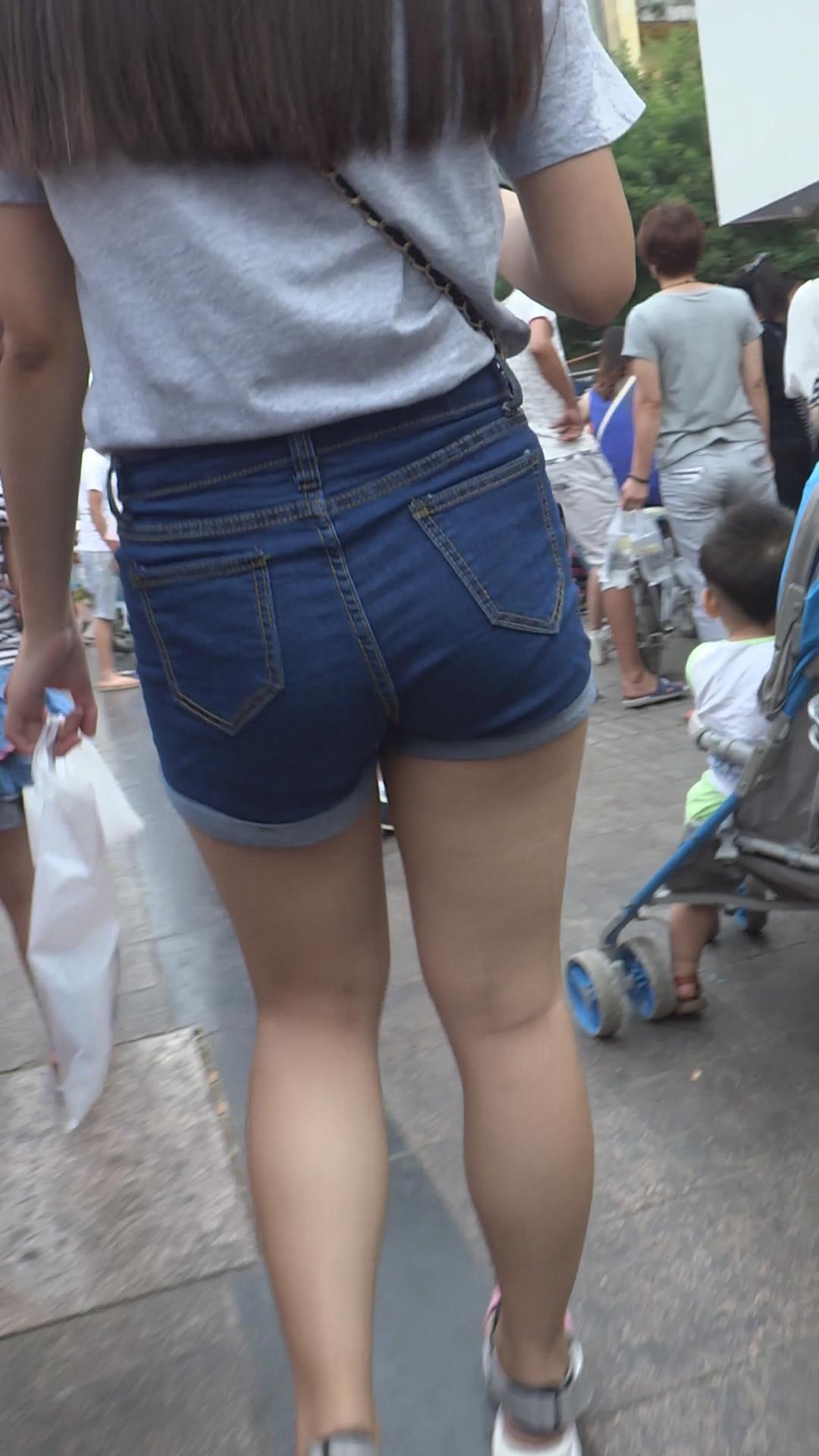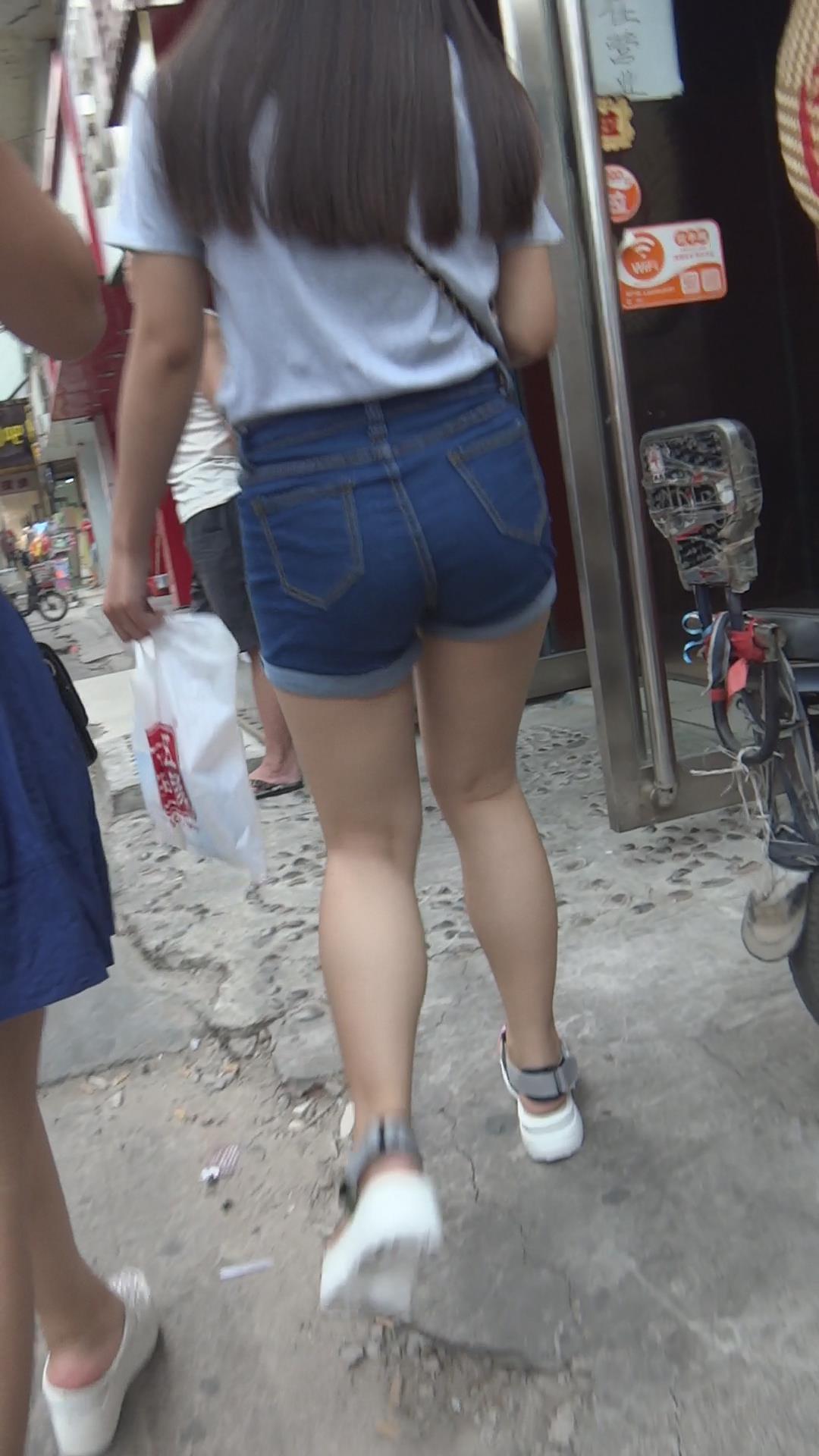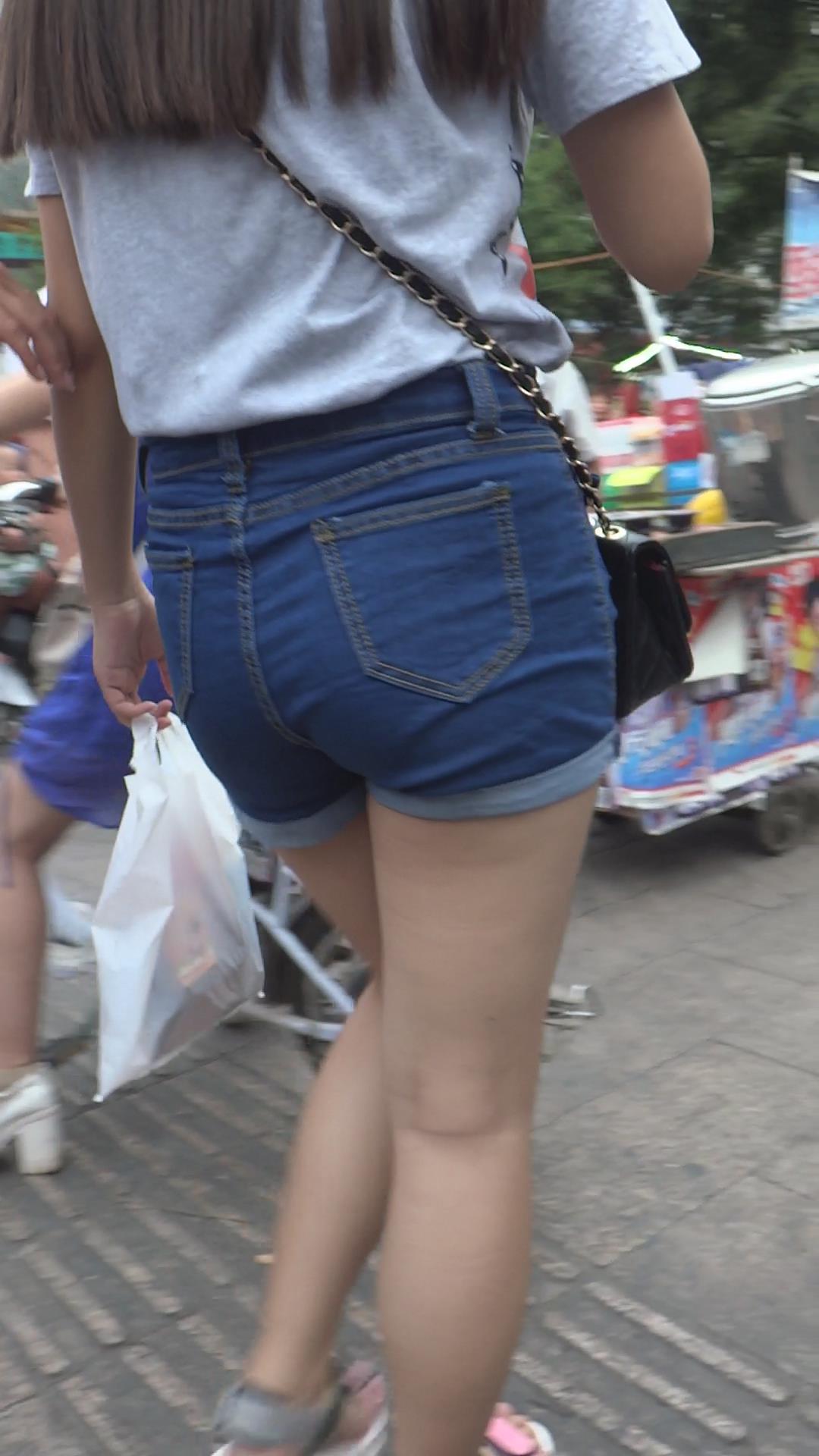 偶遇高腰蓝色牛仔热裤小清新美女 编号4279