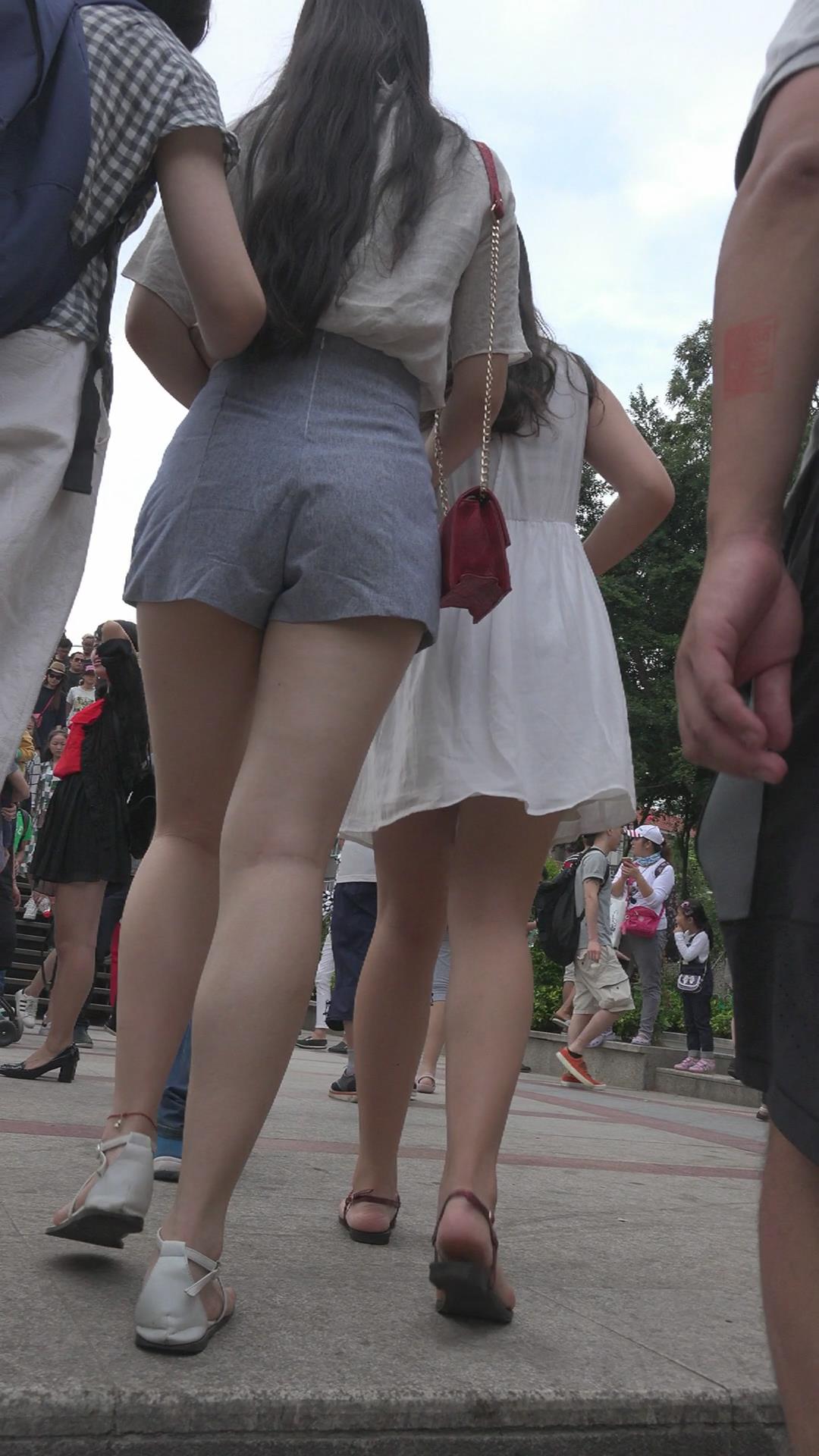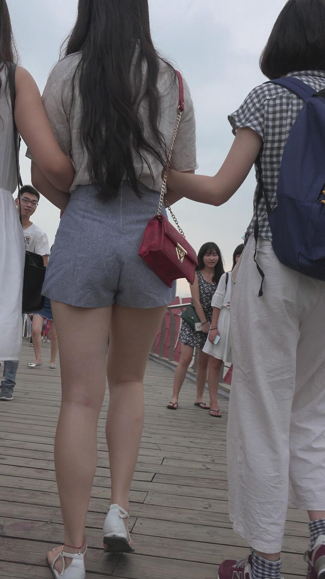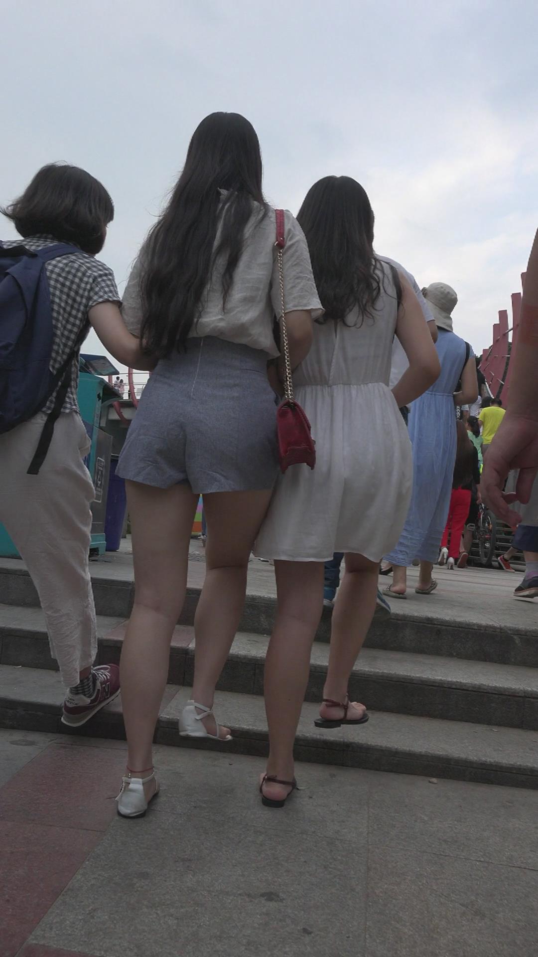 超美高腰短热裤小清新美女三人行 编号4281