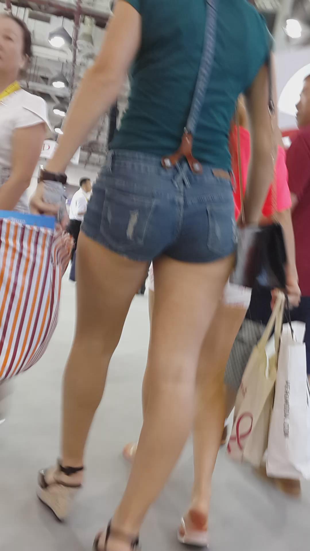 肥臀少妇闺蜜一起逛商场,超短牛仔热裤露PP 编号4300