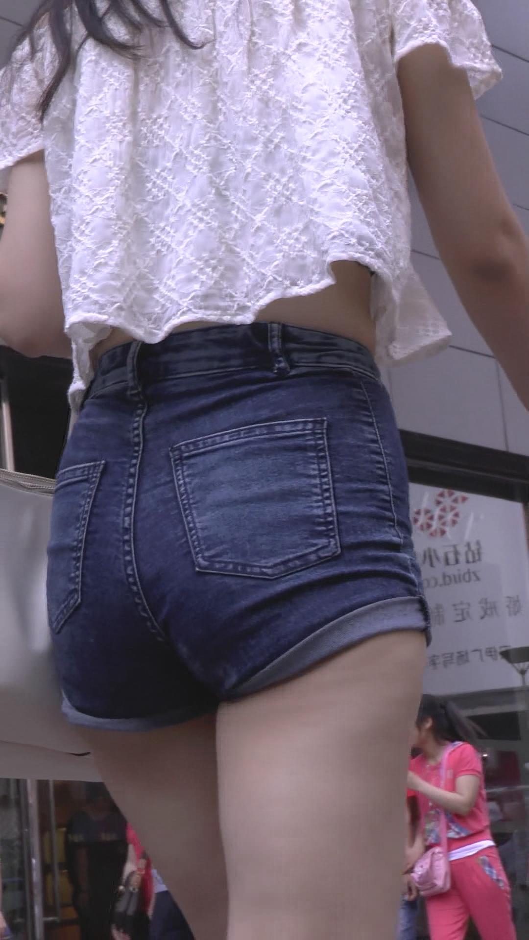 高腰紧身牛仔热裤美臀美女 编号4305