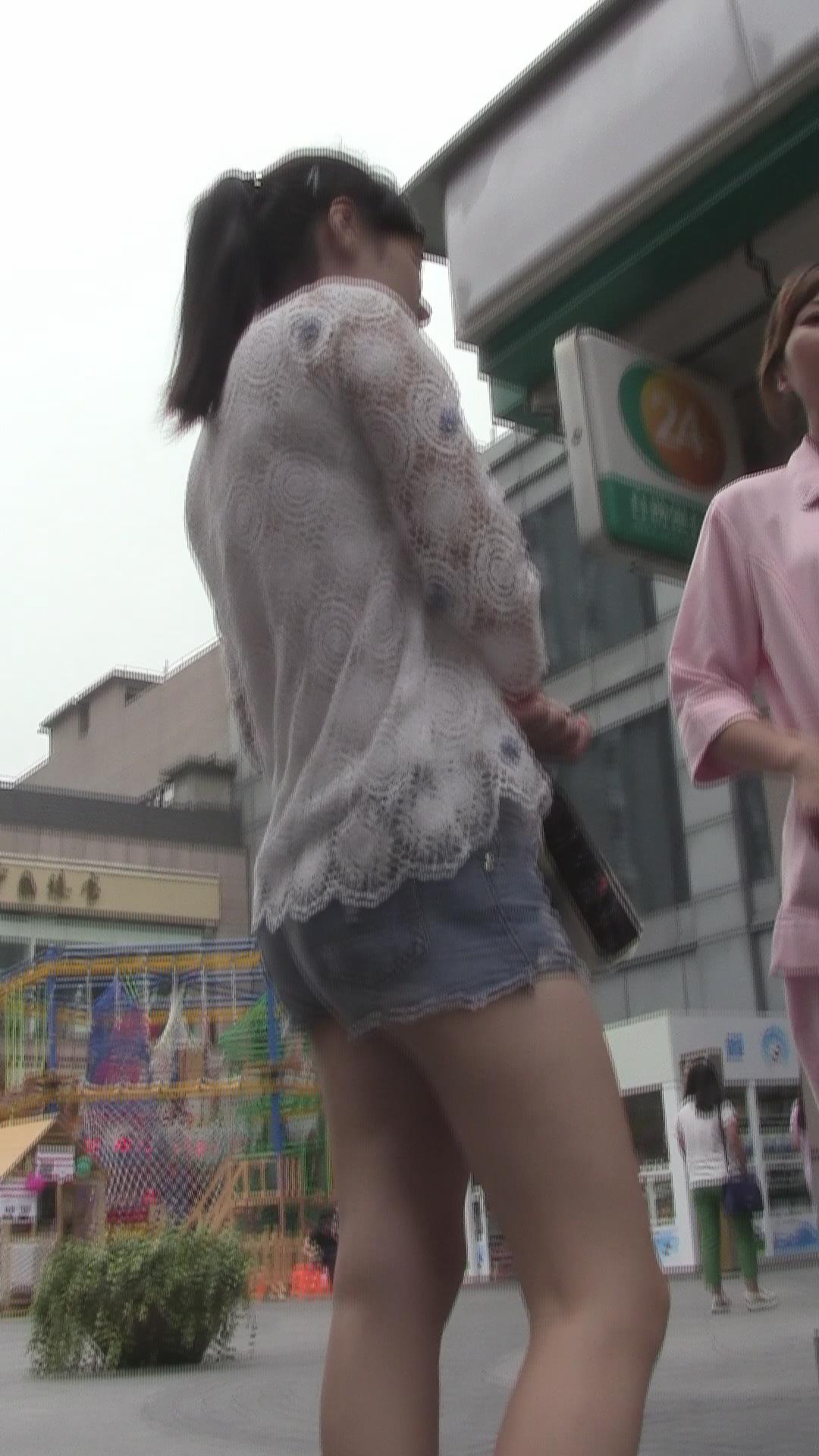 镂空白衣牛仔热裤美腿女孩 编号4313