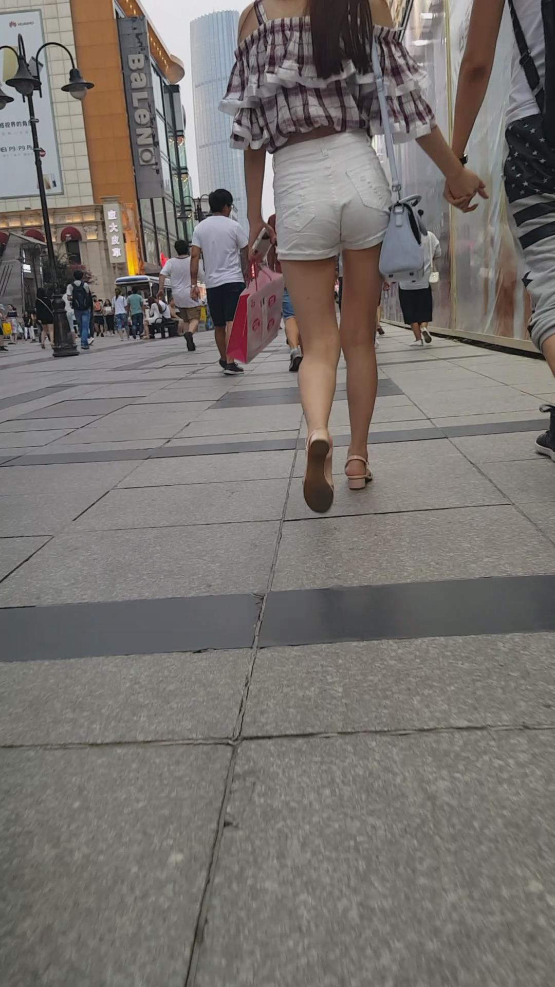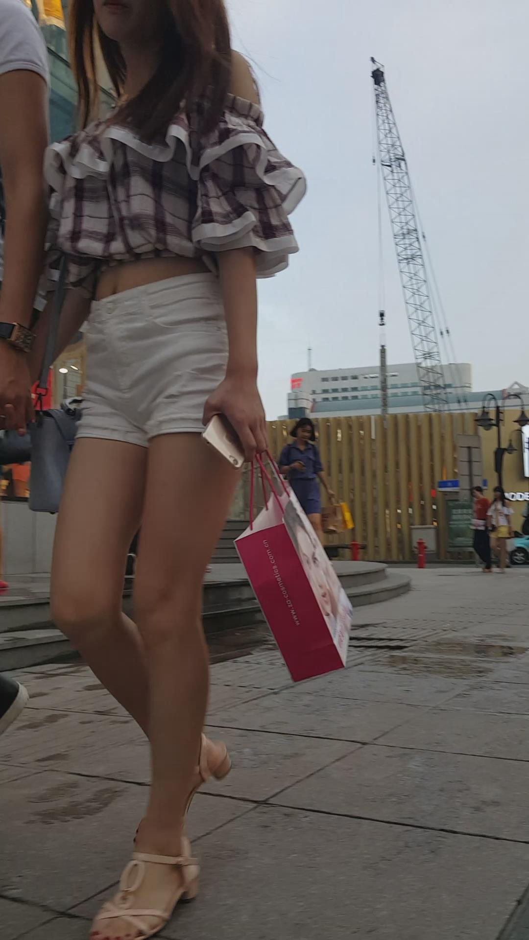 街拍的高腰白热裤漏脐长腿美眉 编号4366