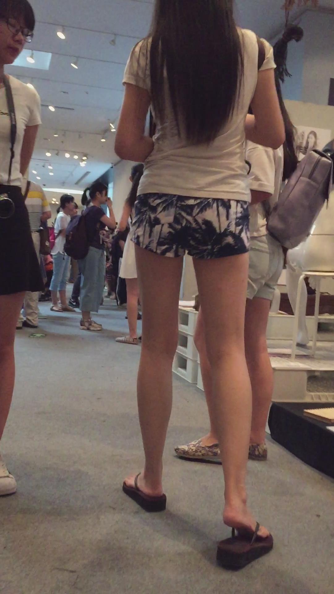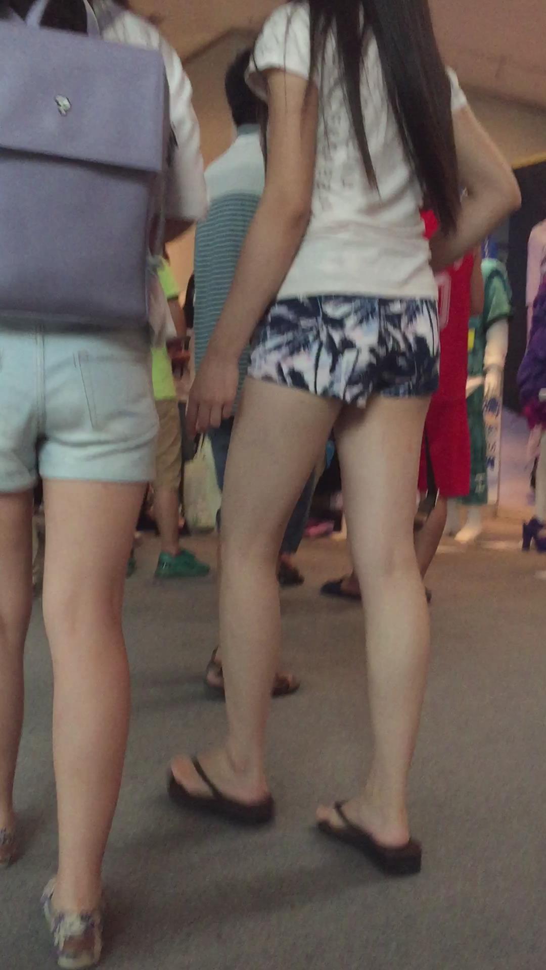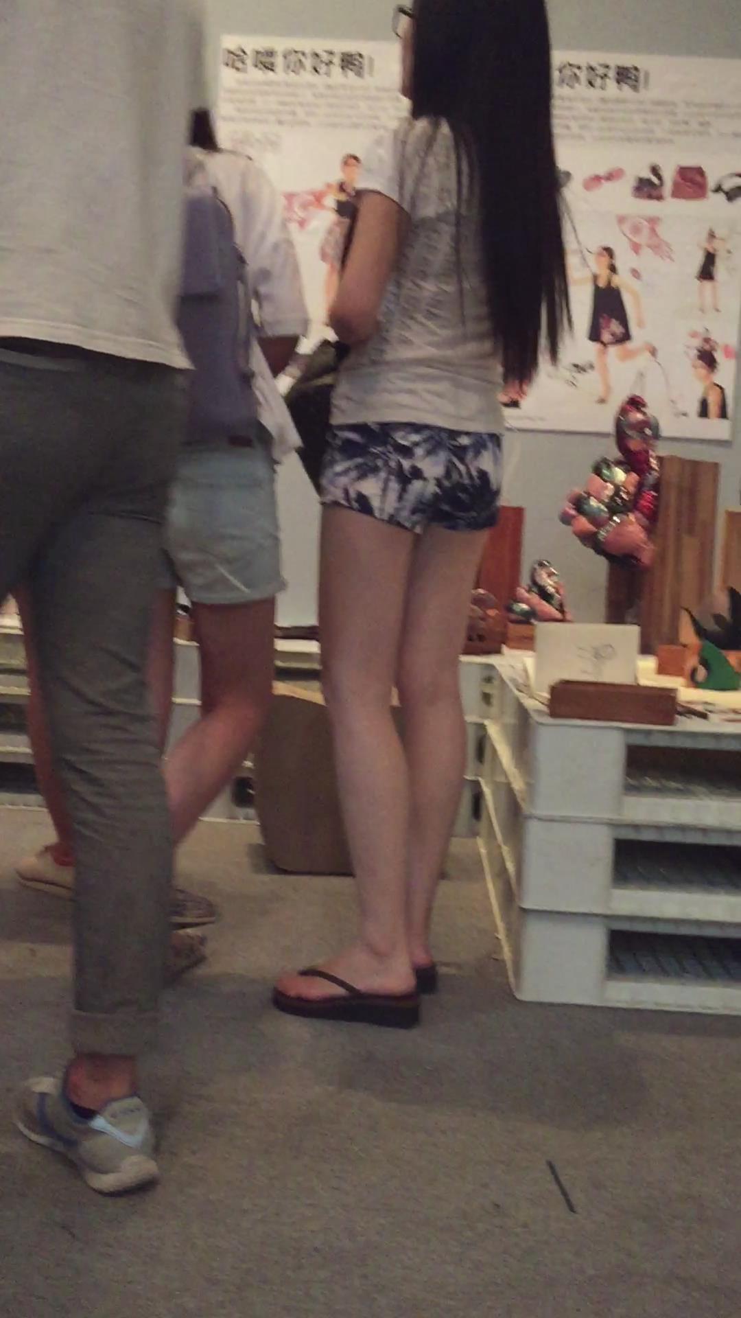 美腿长腿碎花短裤MM,夏天美女都喜欢人字拖么? 编号4574
