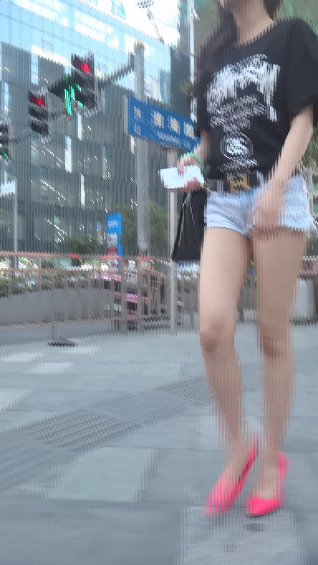 街拍红色高跟鞋超短热裤性感长腿美女 编号4403