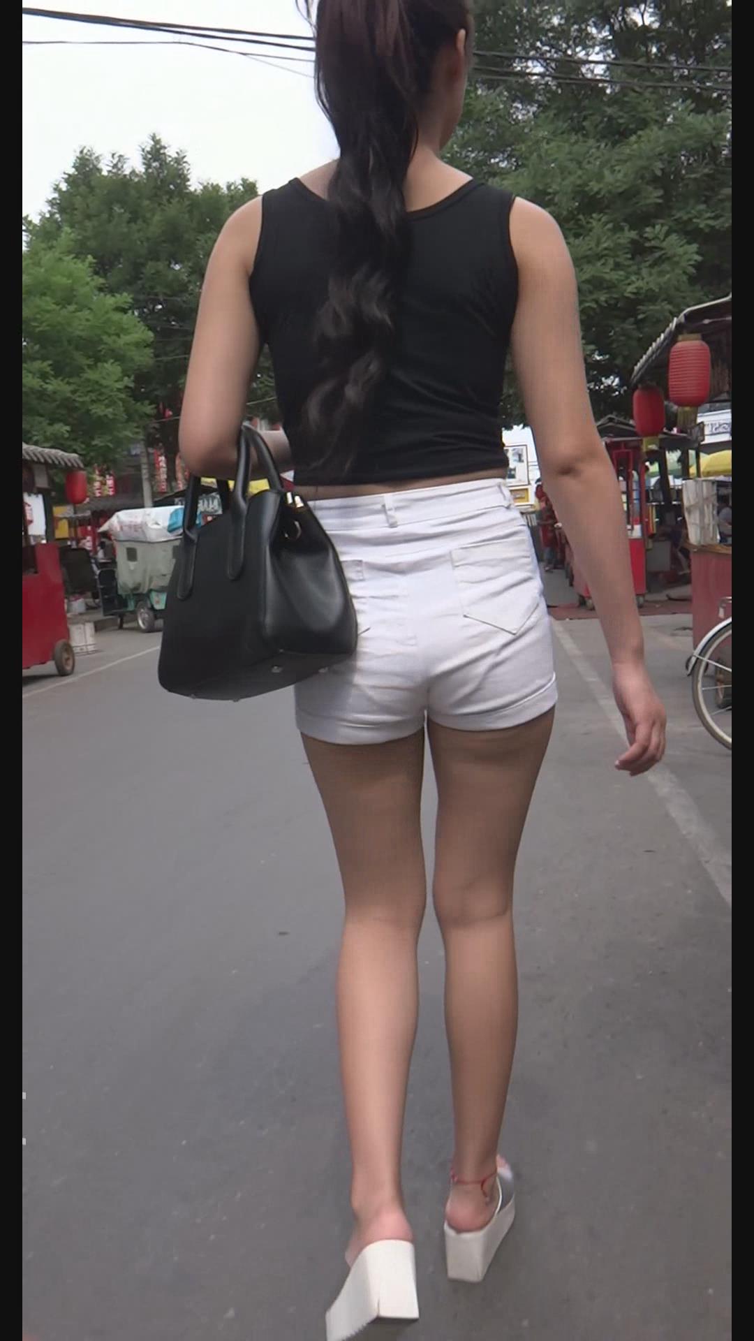街拍好身材美腿漂亮白热裤美女 编号4432