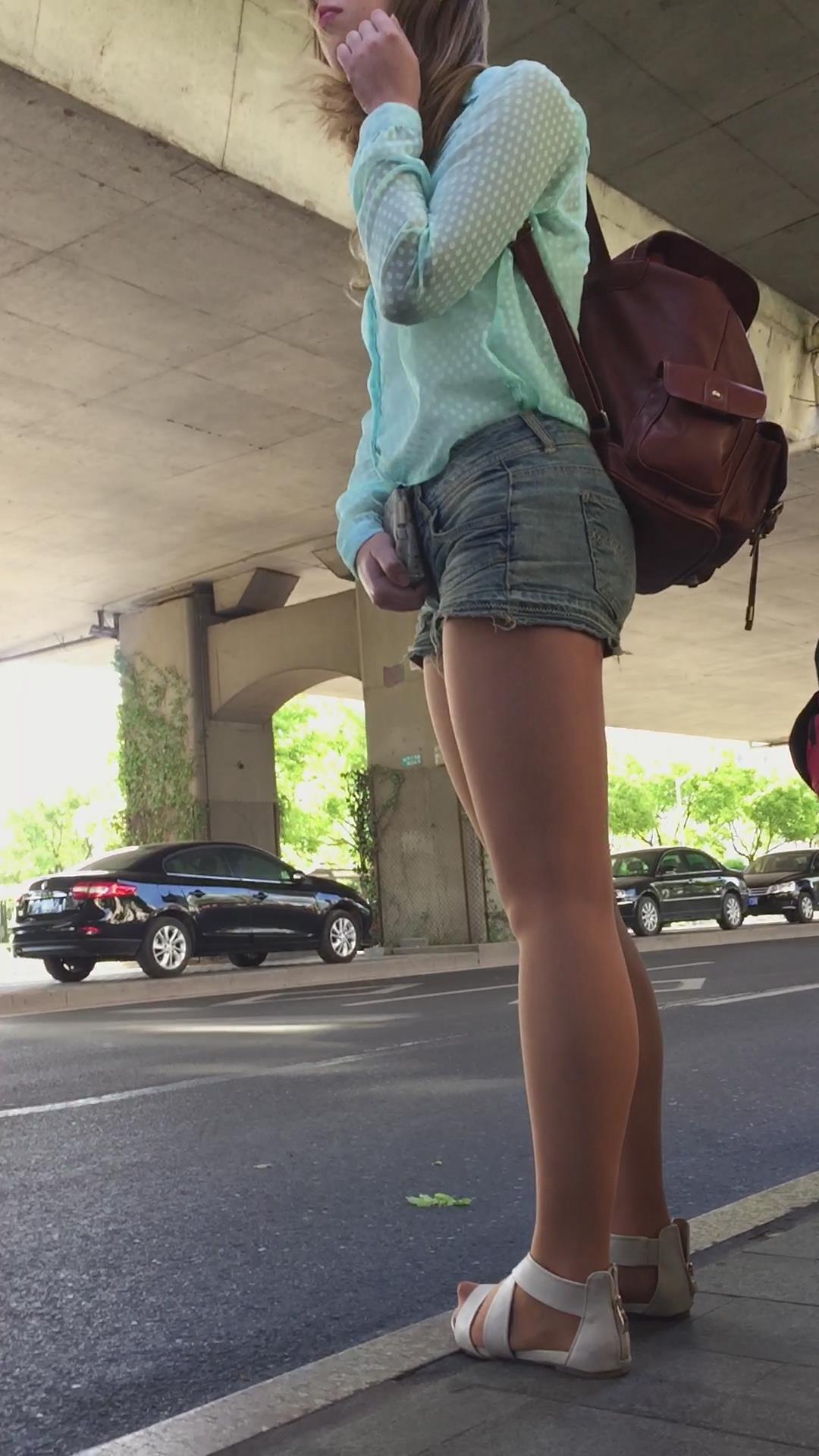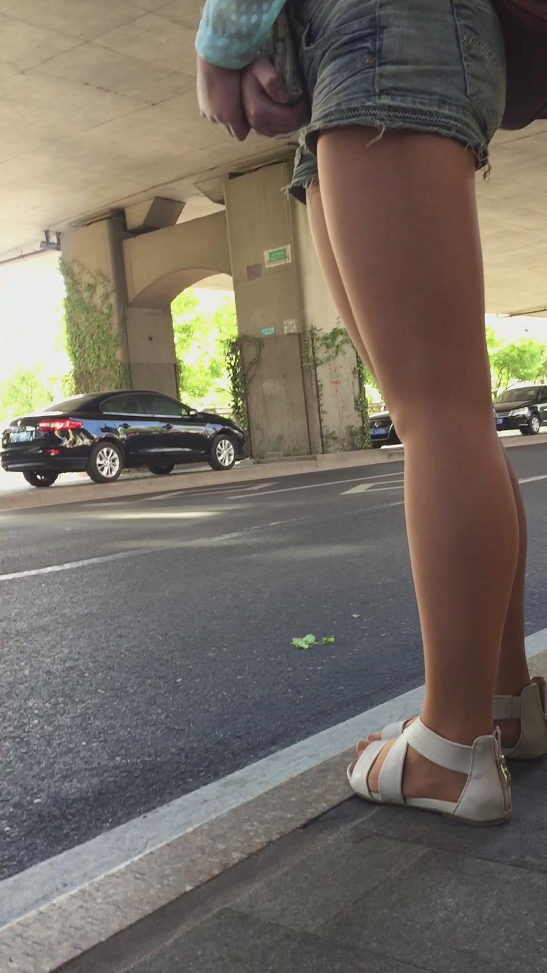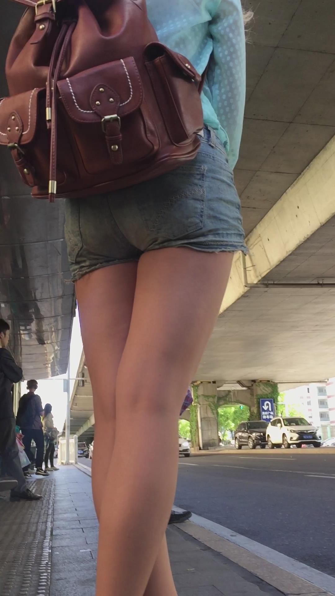 街拍路边等车的圆臀热裤美三角少女 编号4435