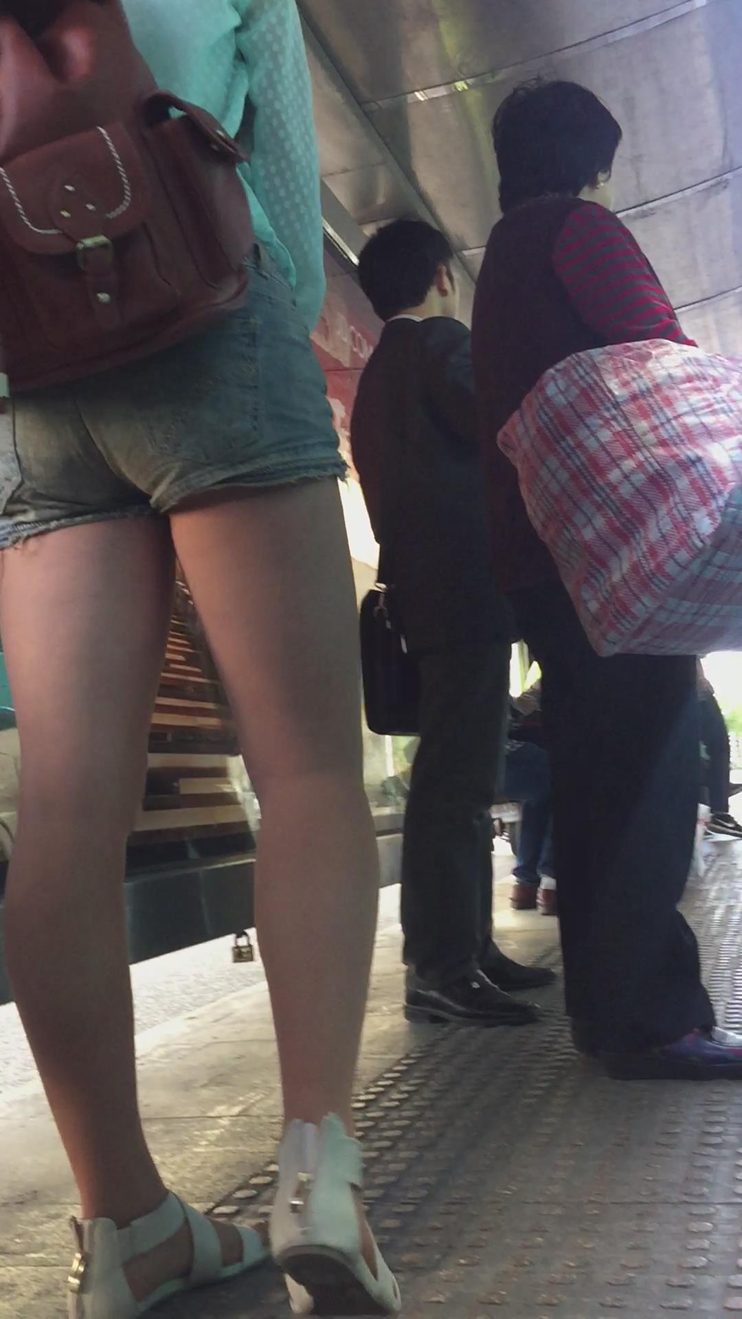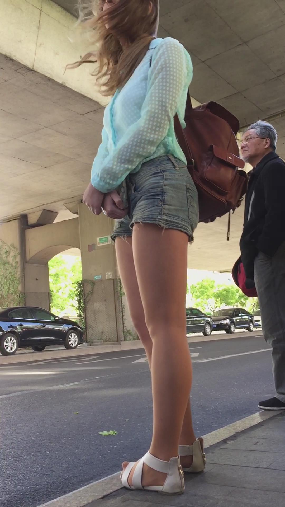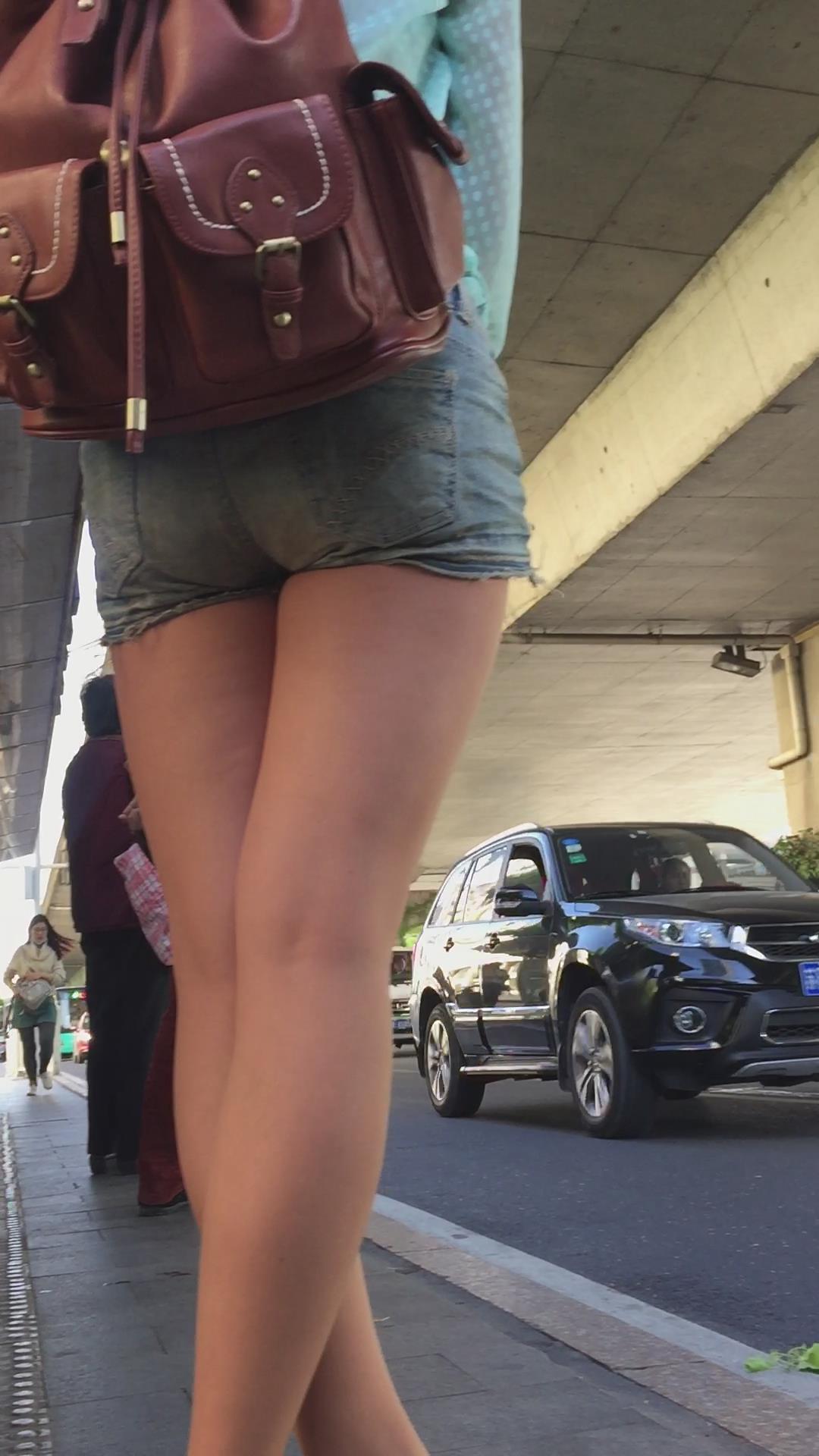 街拍路边等车的圆臀热裤美三角少女 编号4435
