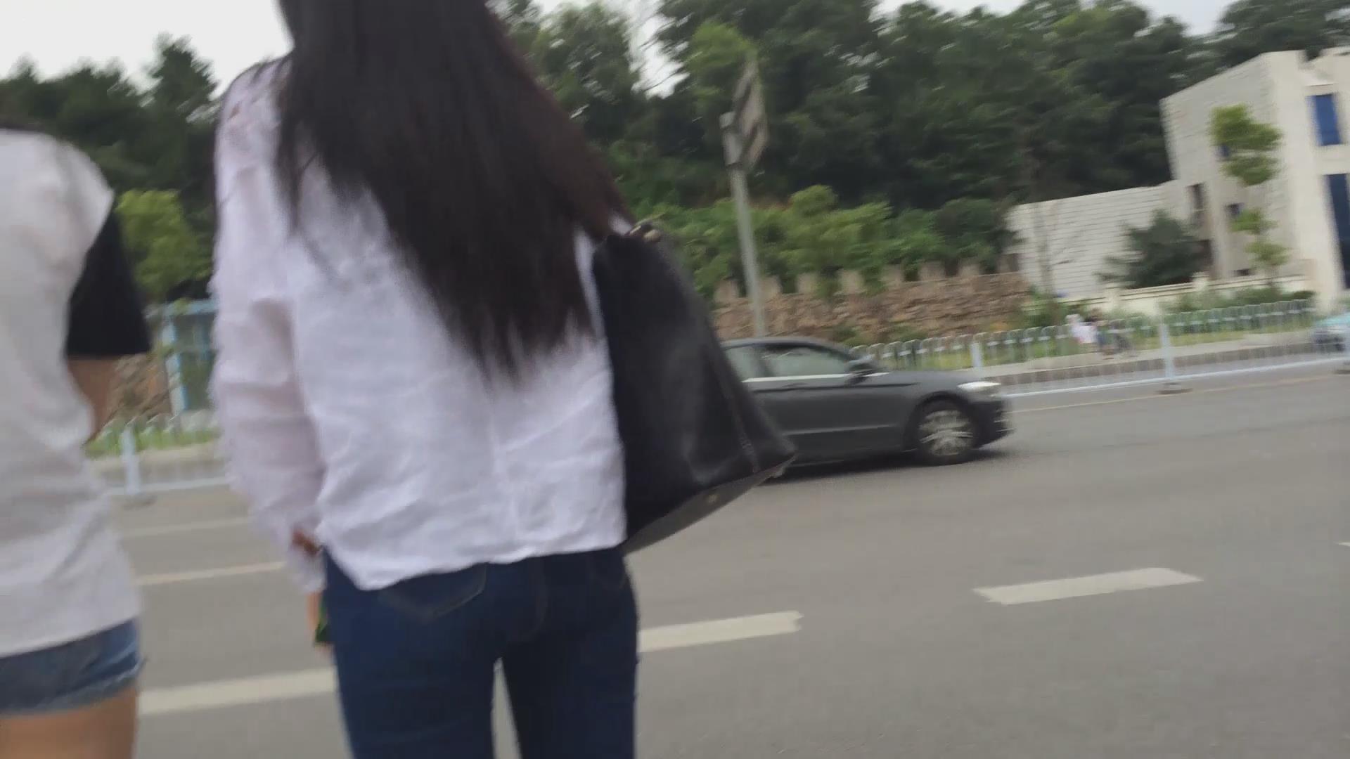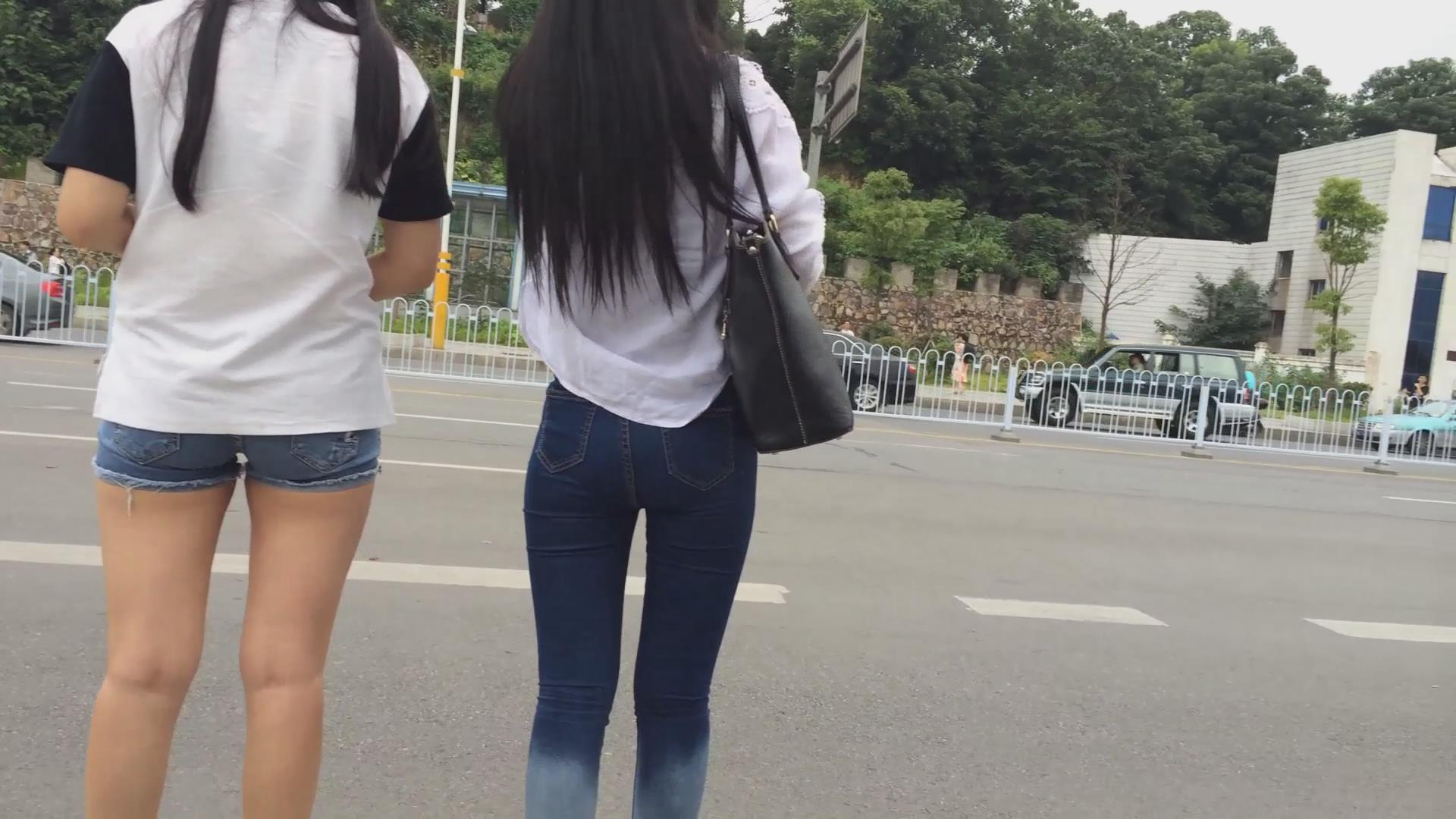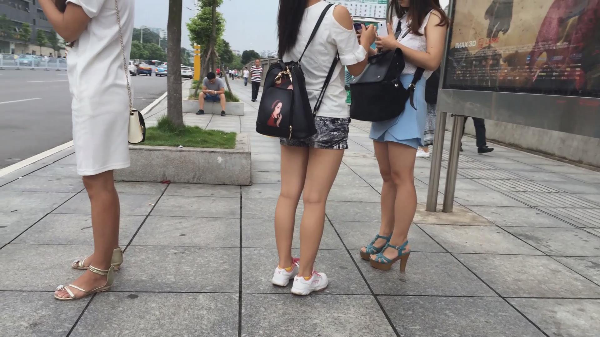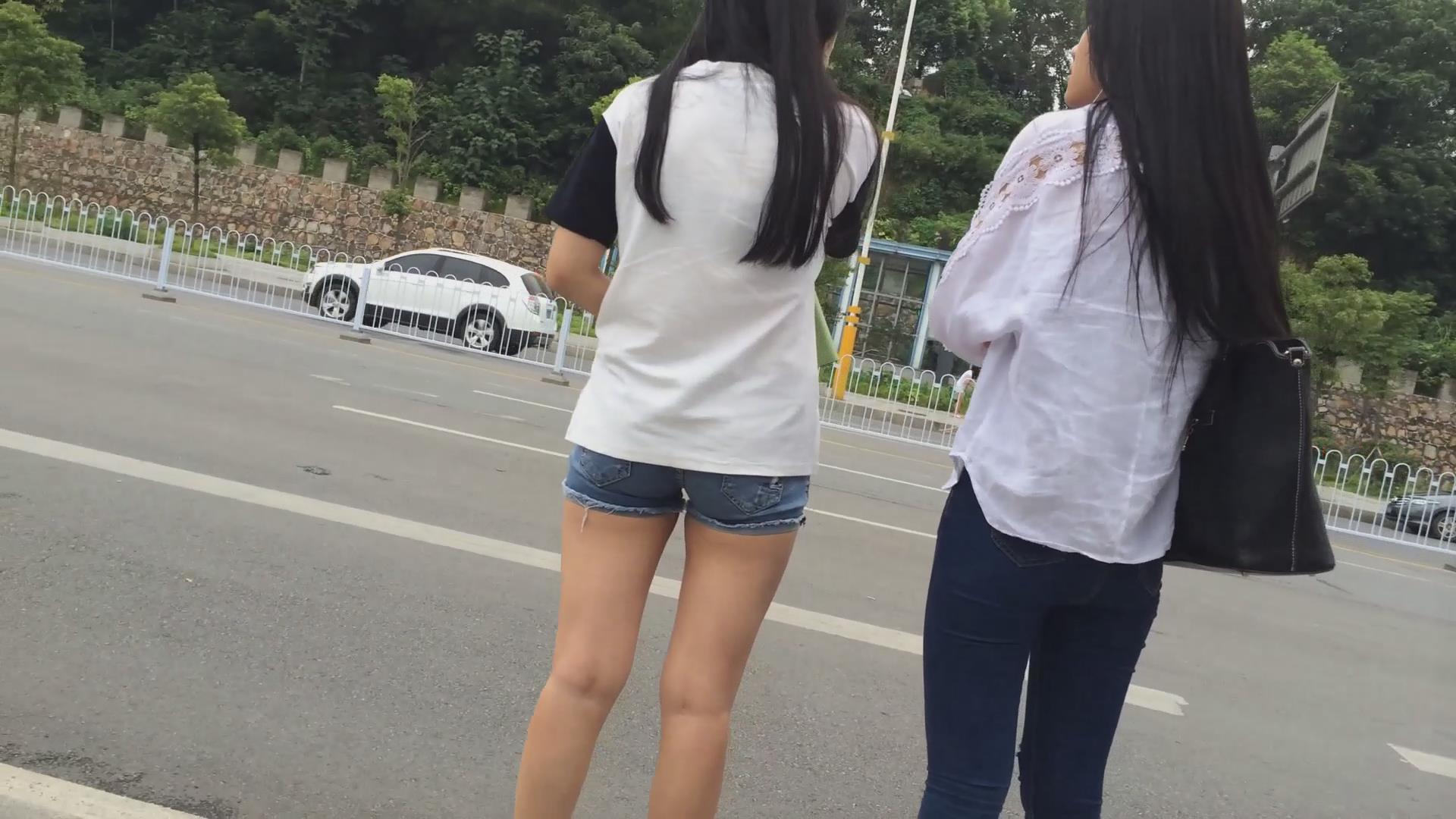 路边等车的牛仔热裤美腿妹子 编号4440