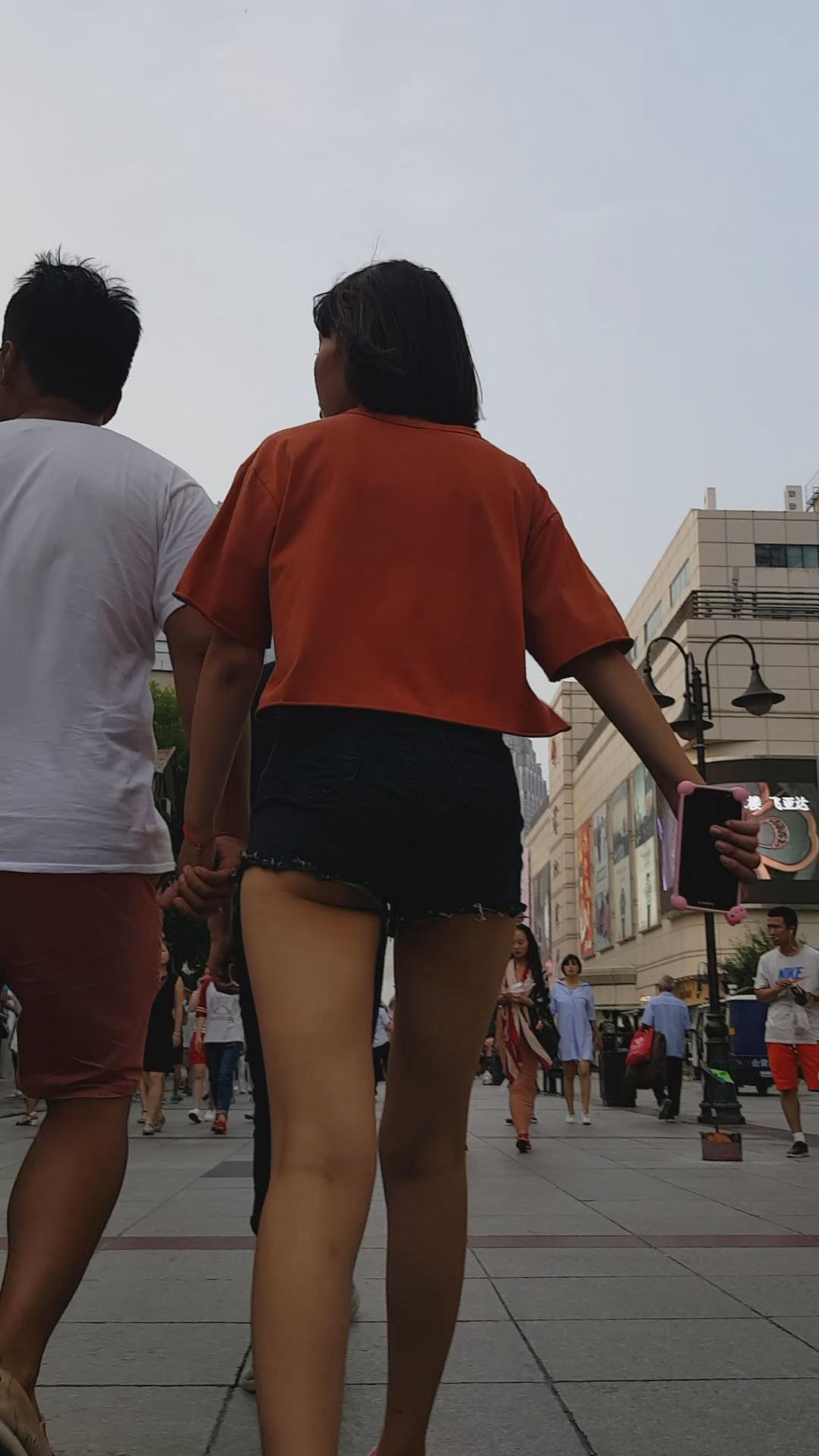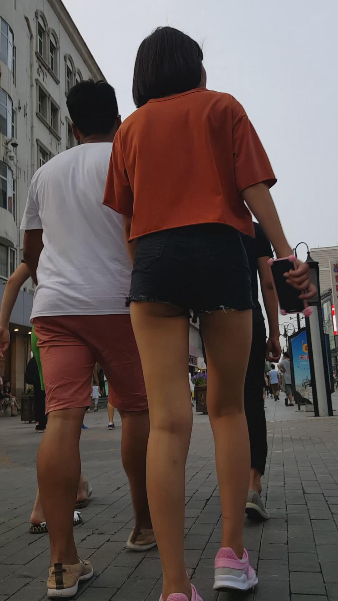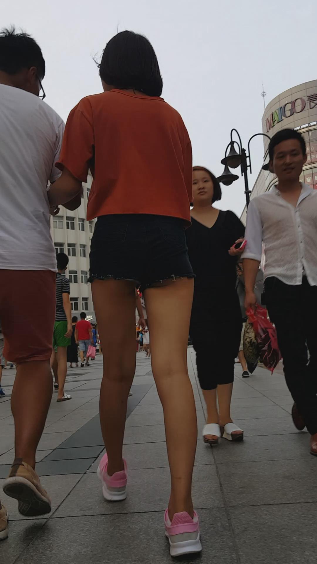 橘色T恤运动鞋美女的超短热裤短得可以 编号4450