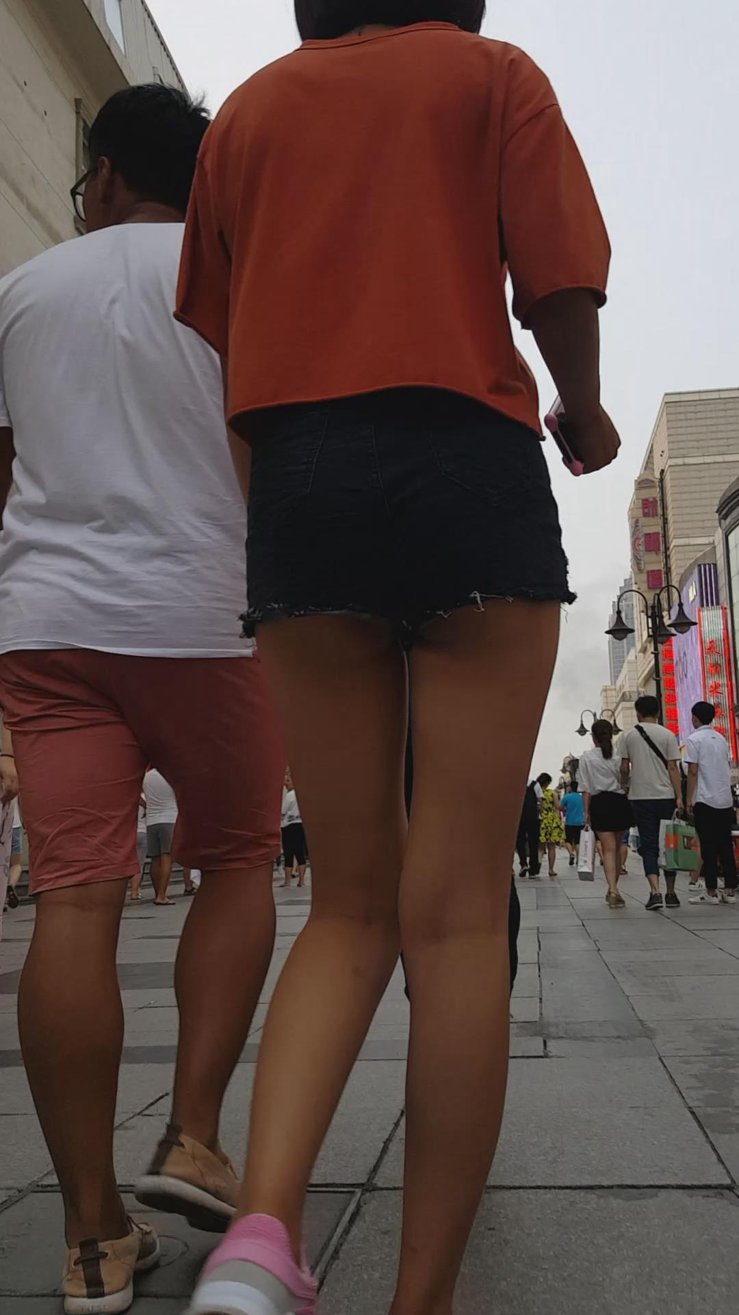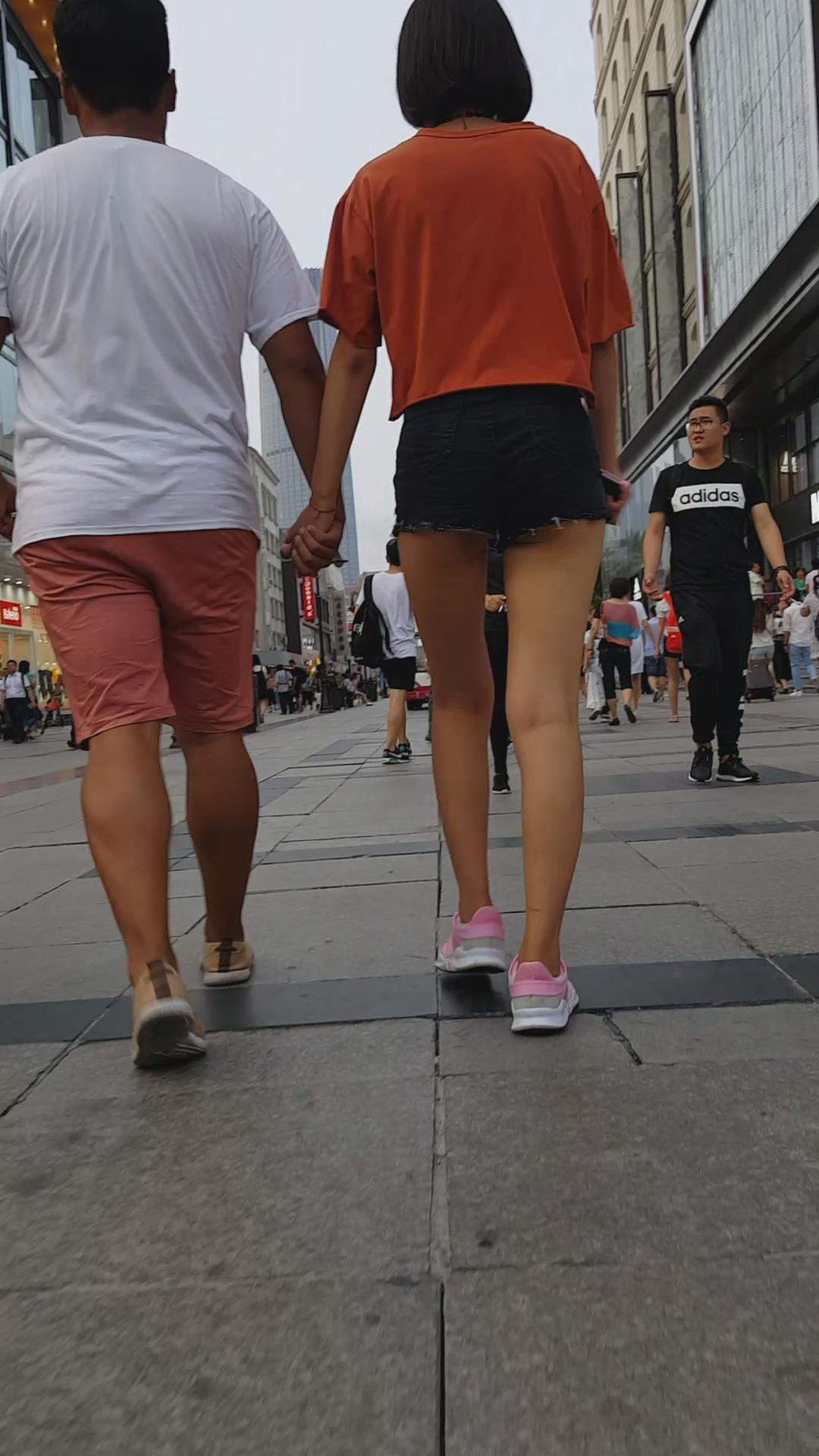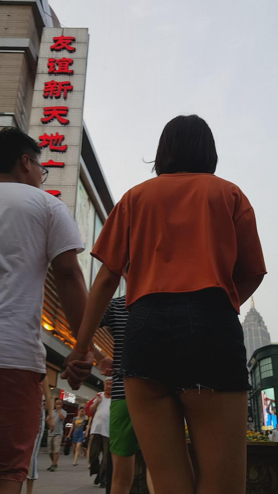 橘色T恤运动鞋美女的超短热裤短得可以 编号4450