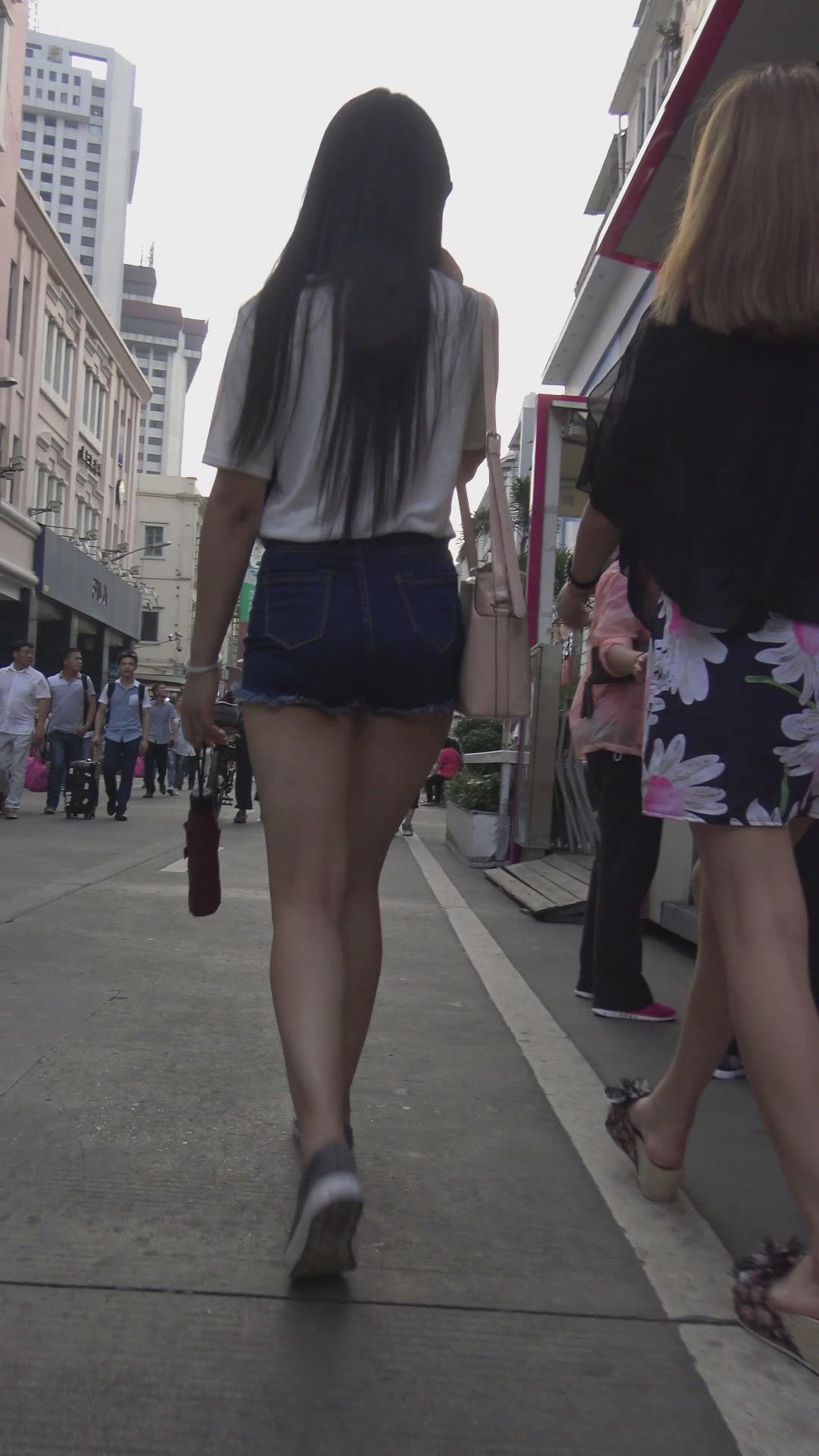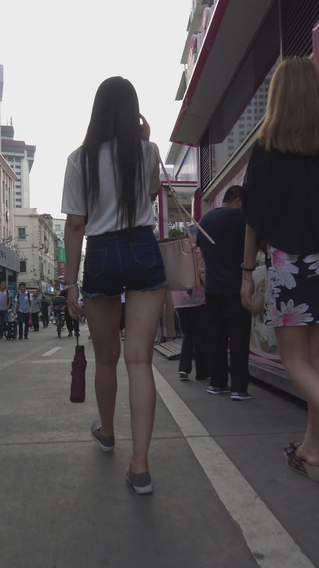 街拍高腰牛仔热裤高挑苗条气质小妹 编号4455