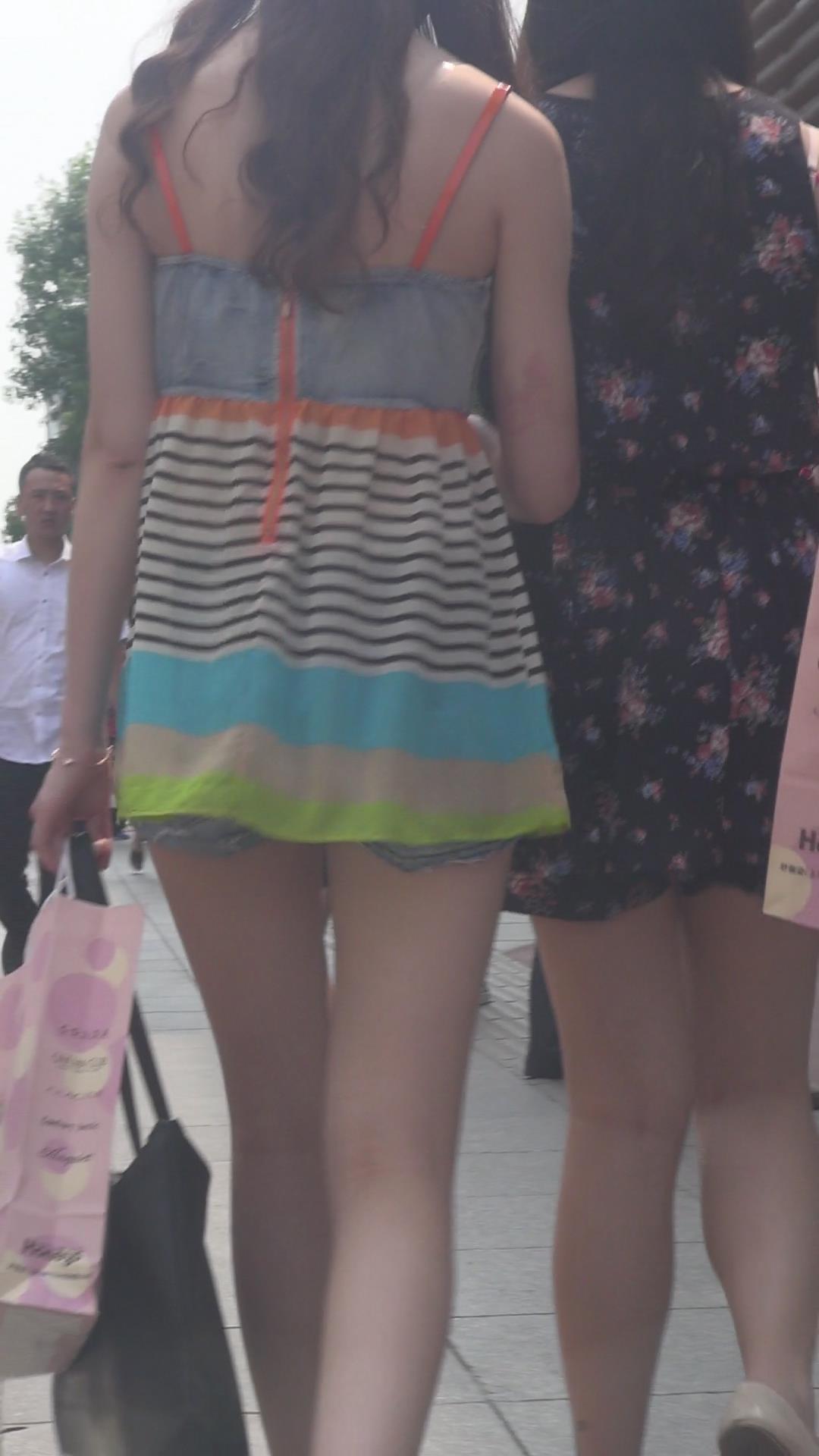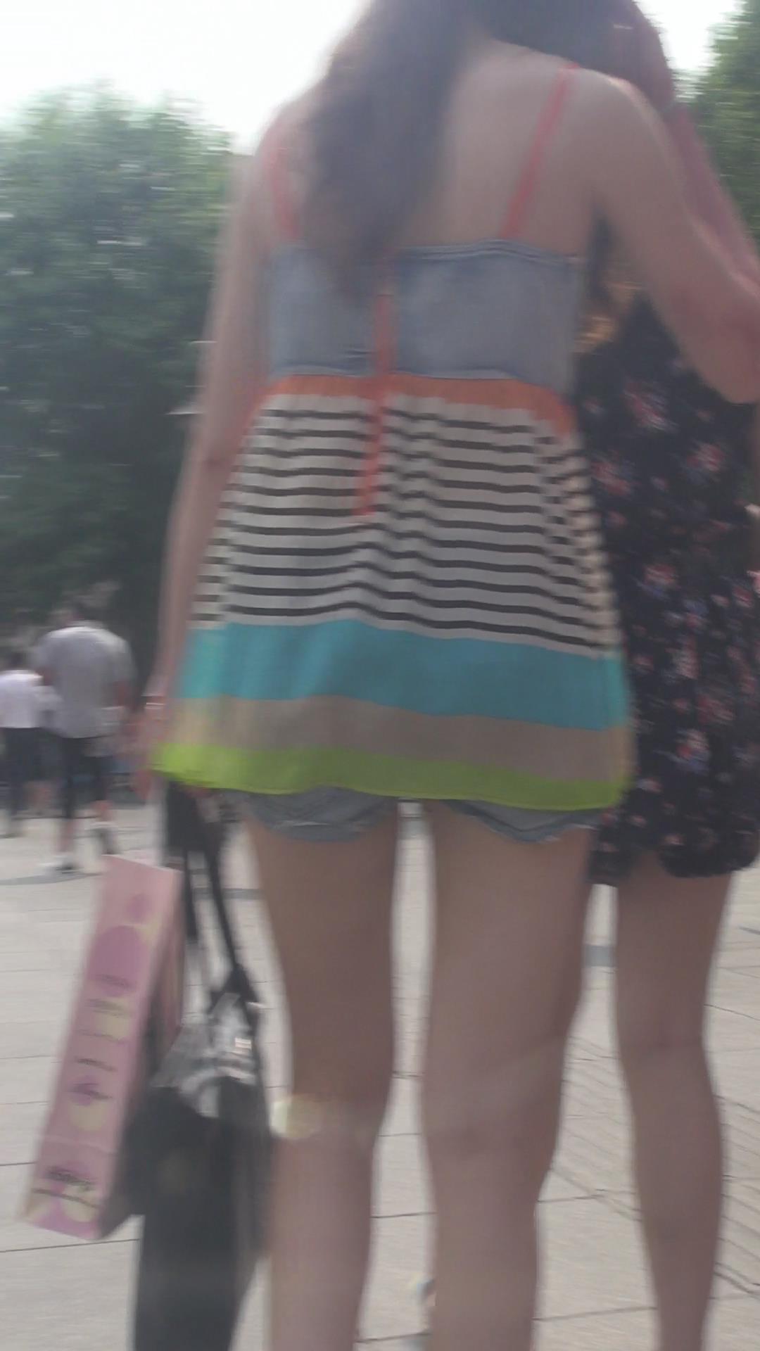 街拍颜值超高的吊带衫牛仔热裤美女 编号4460