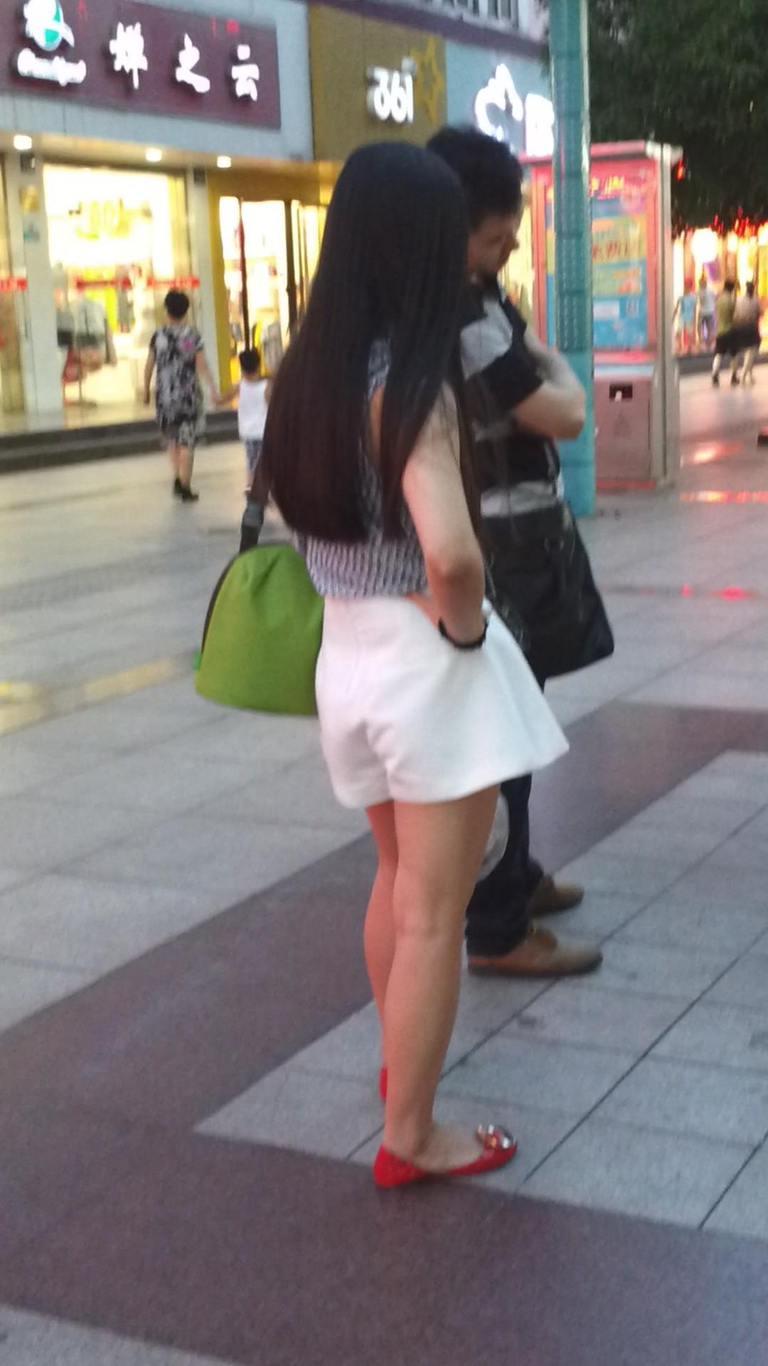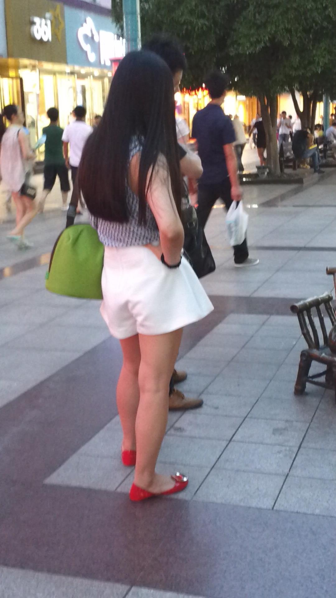 宽松热裤苗条身材小红色平底鞋长发美女 编号4584
