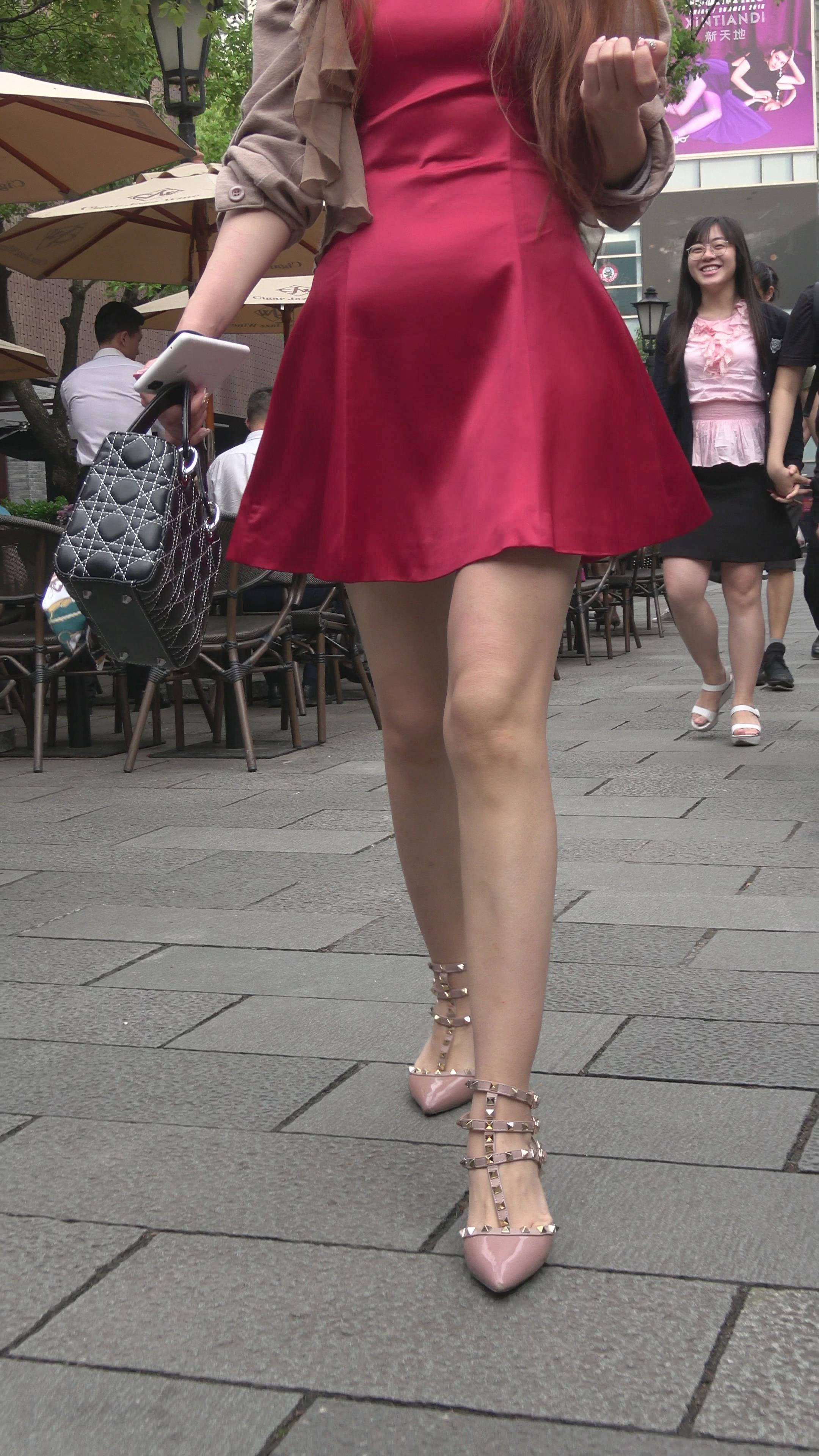 4K 性感长腿高跟街拍红色连衣裙美女 编号7963
