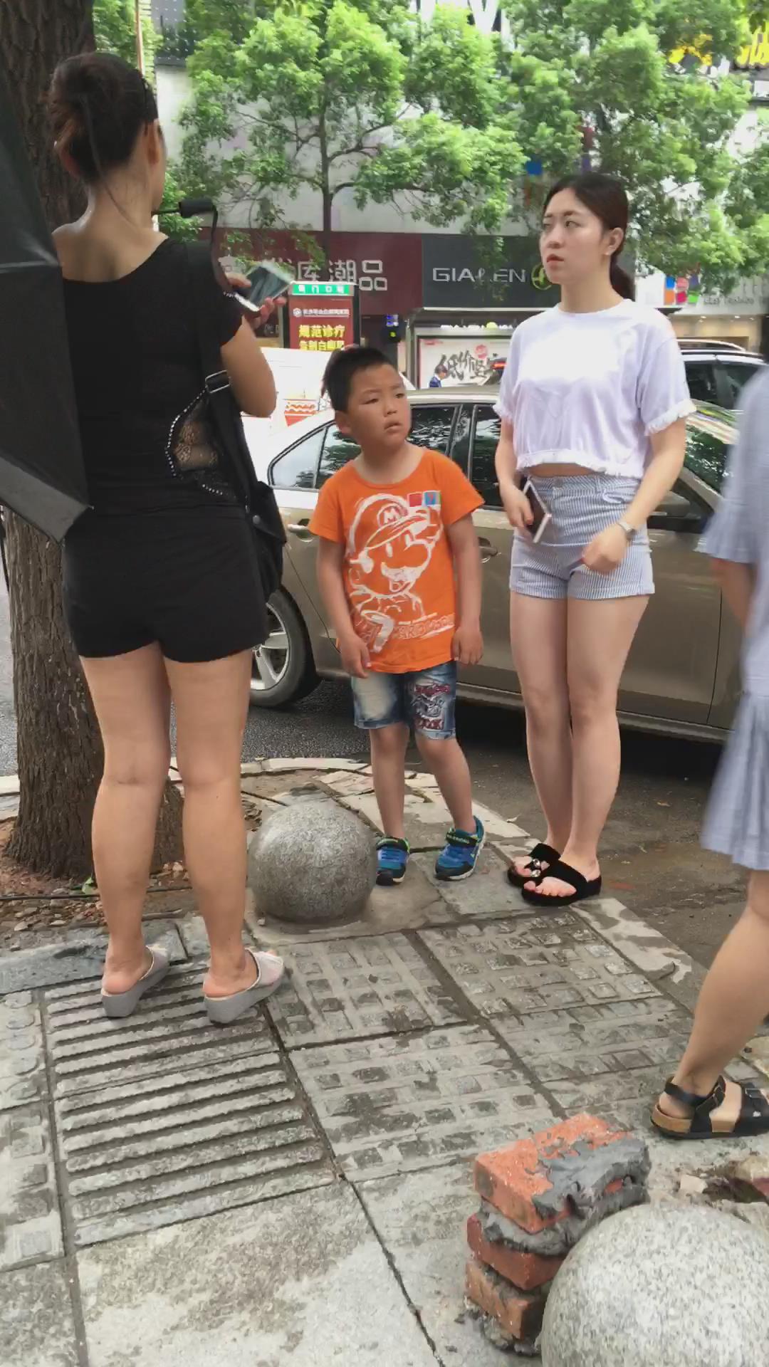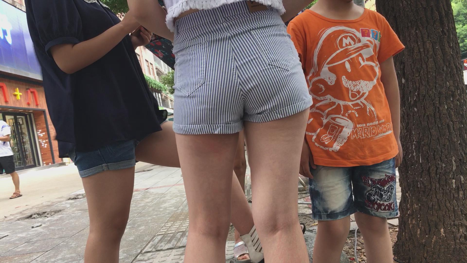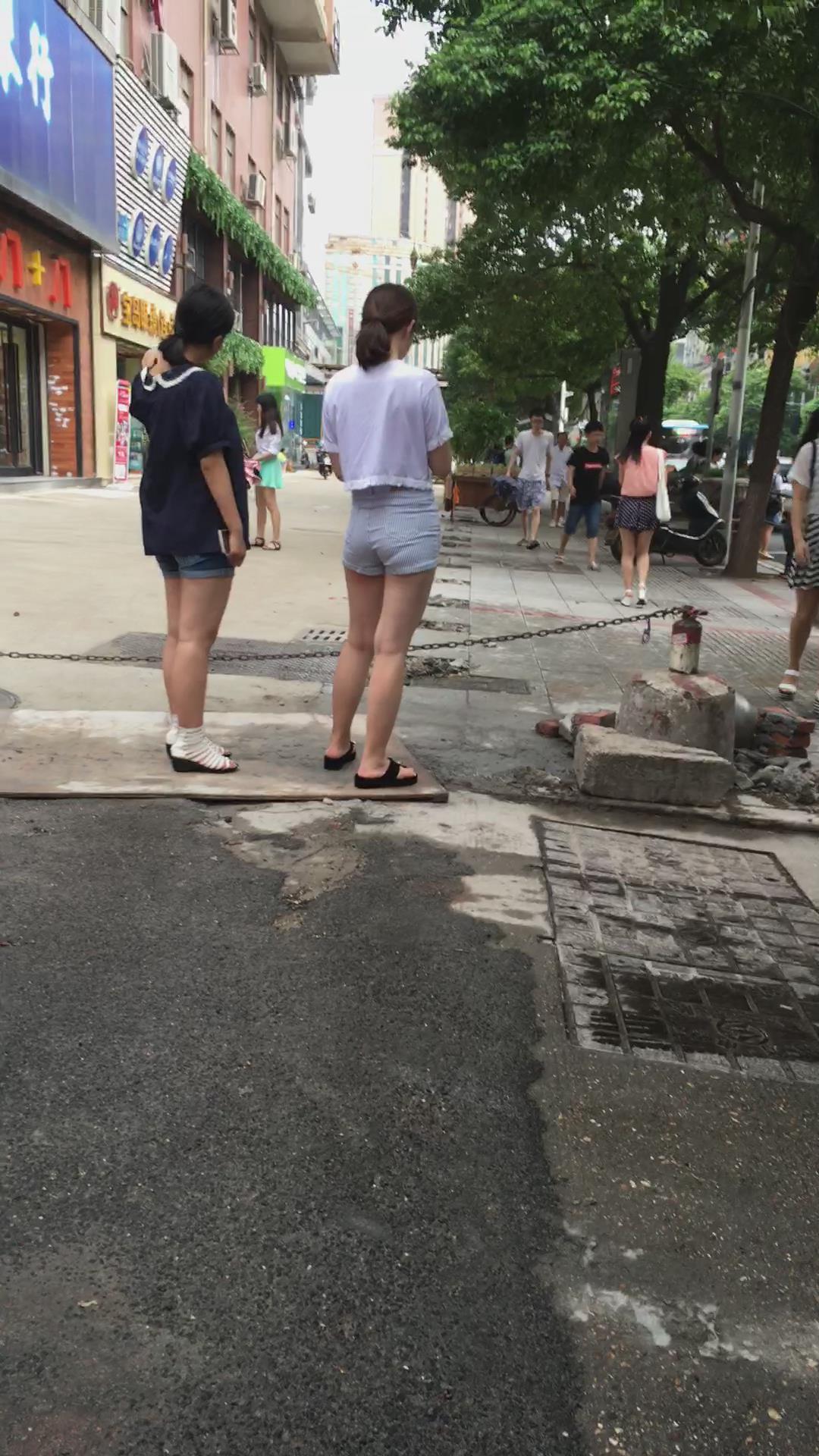 街拍白T恤高腰热裤美臀年轻美少妇。 编号4586