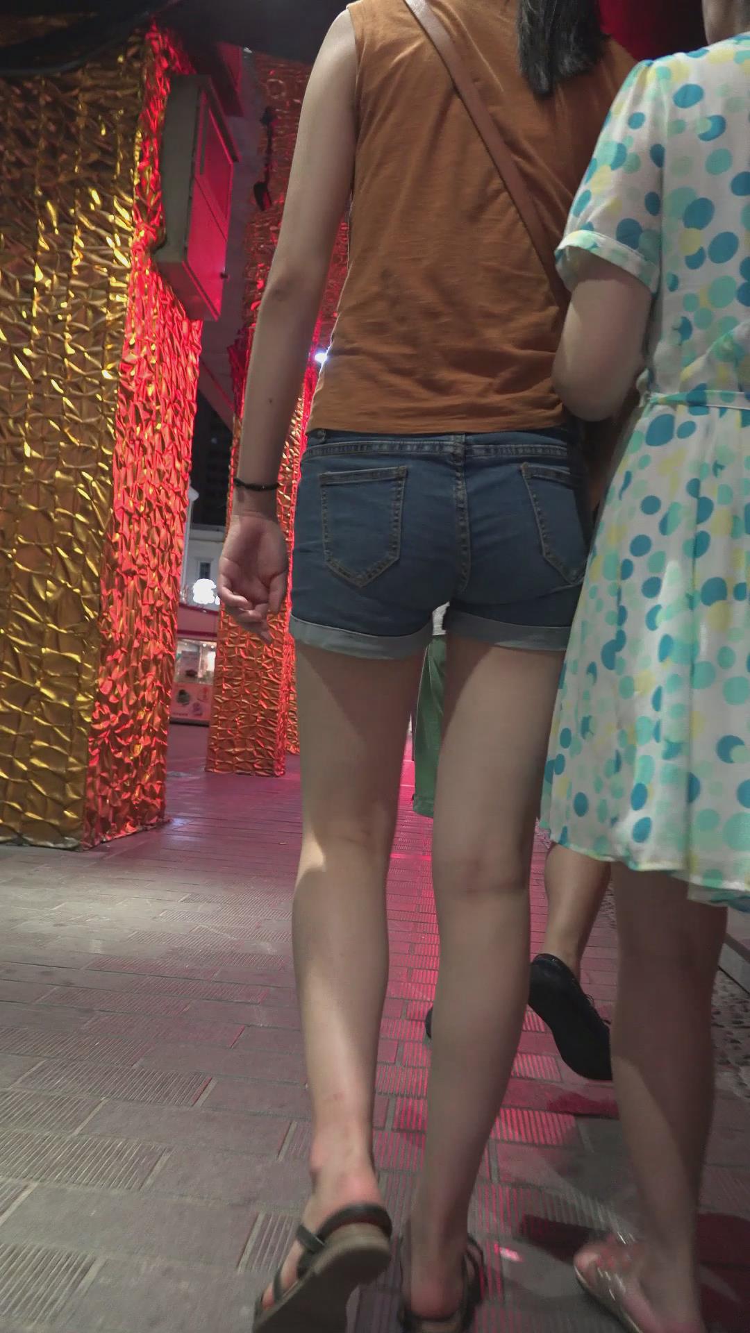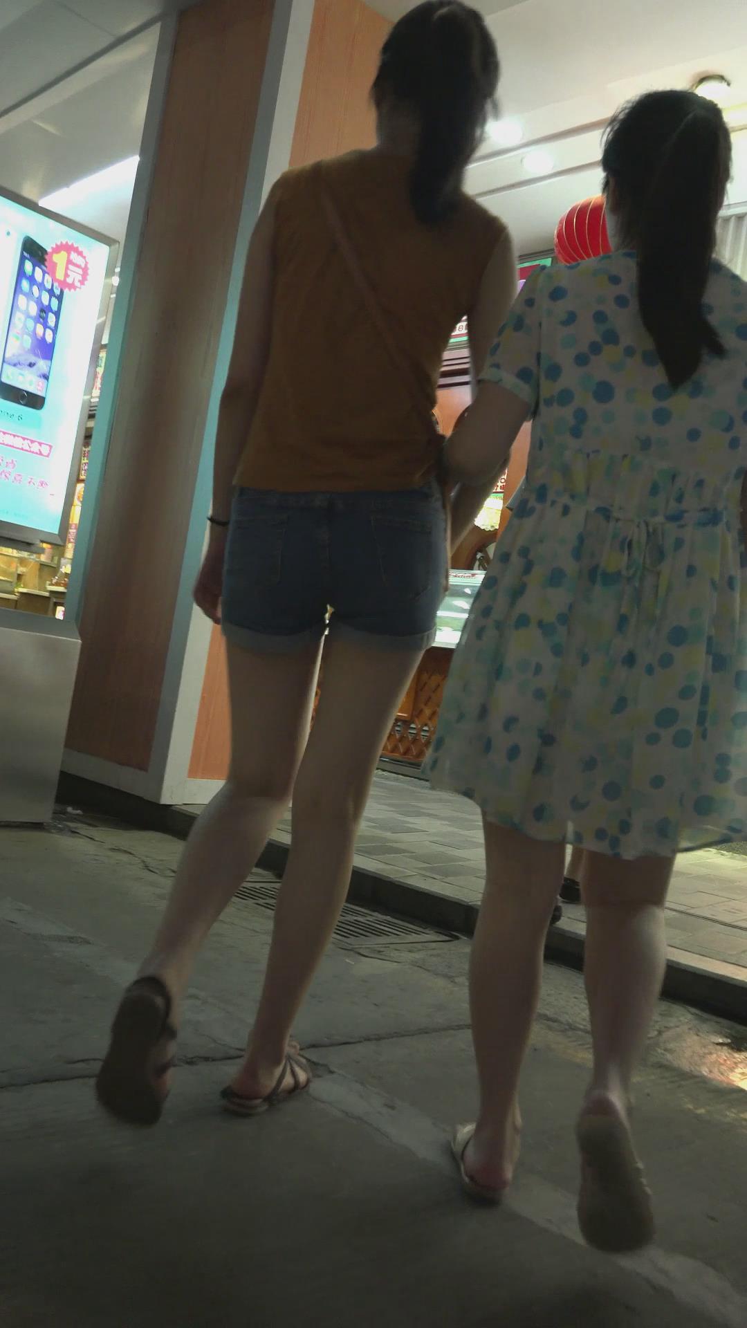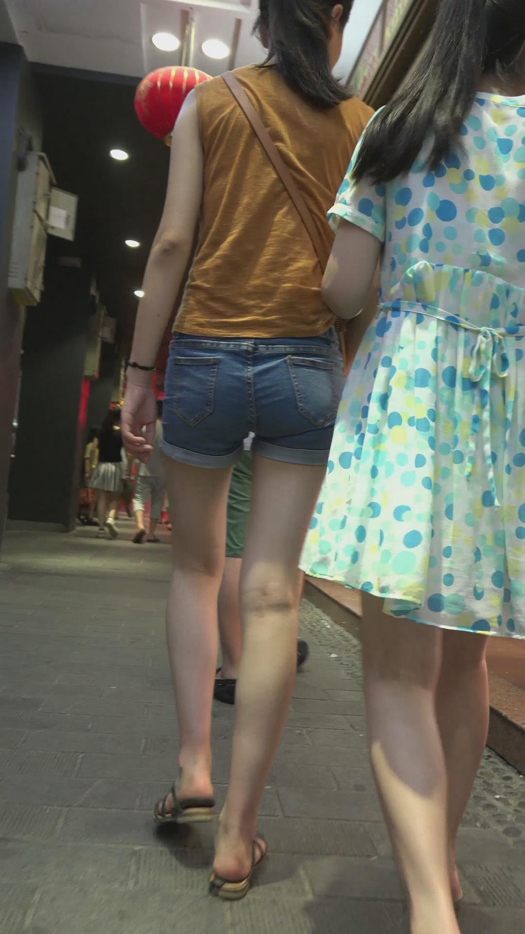 跟闺蜜逛夜市的牛仔热裤美腿少女 编号4590