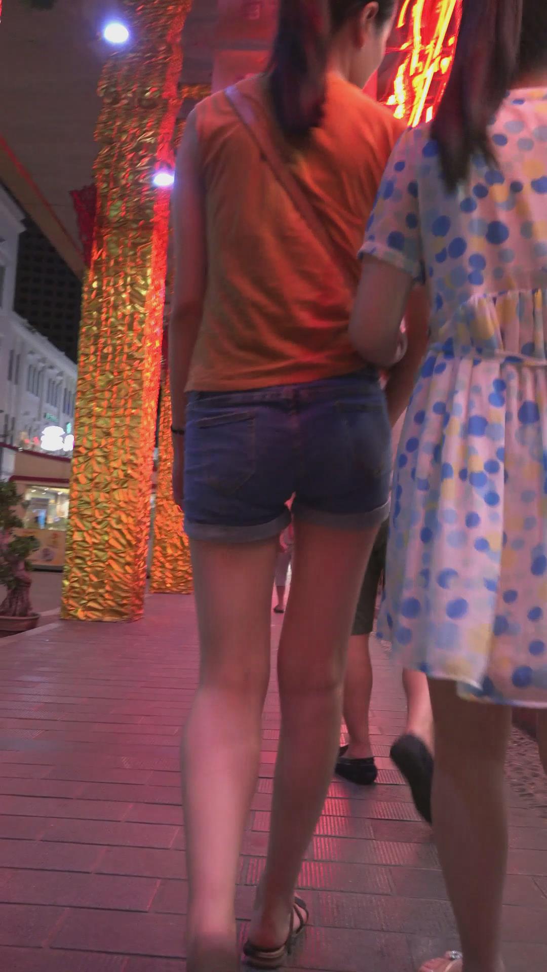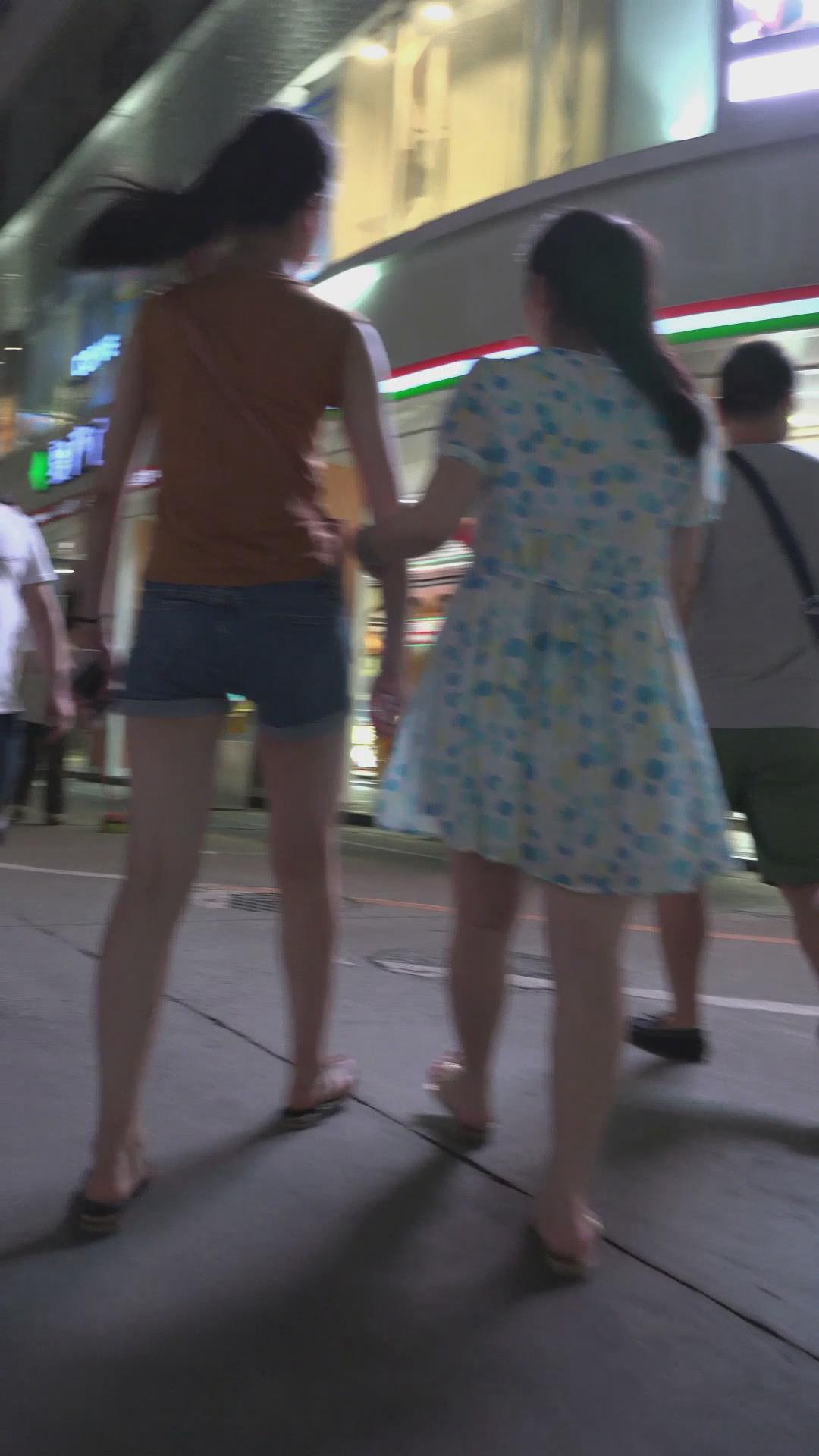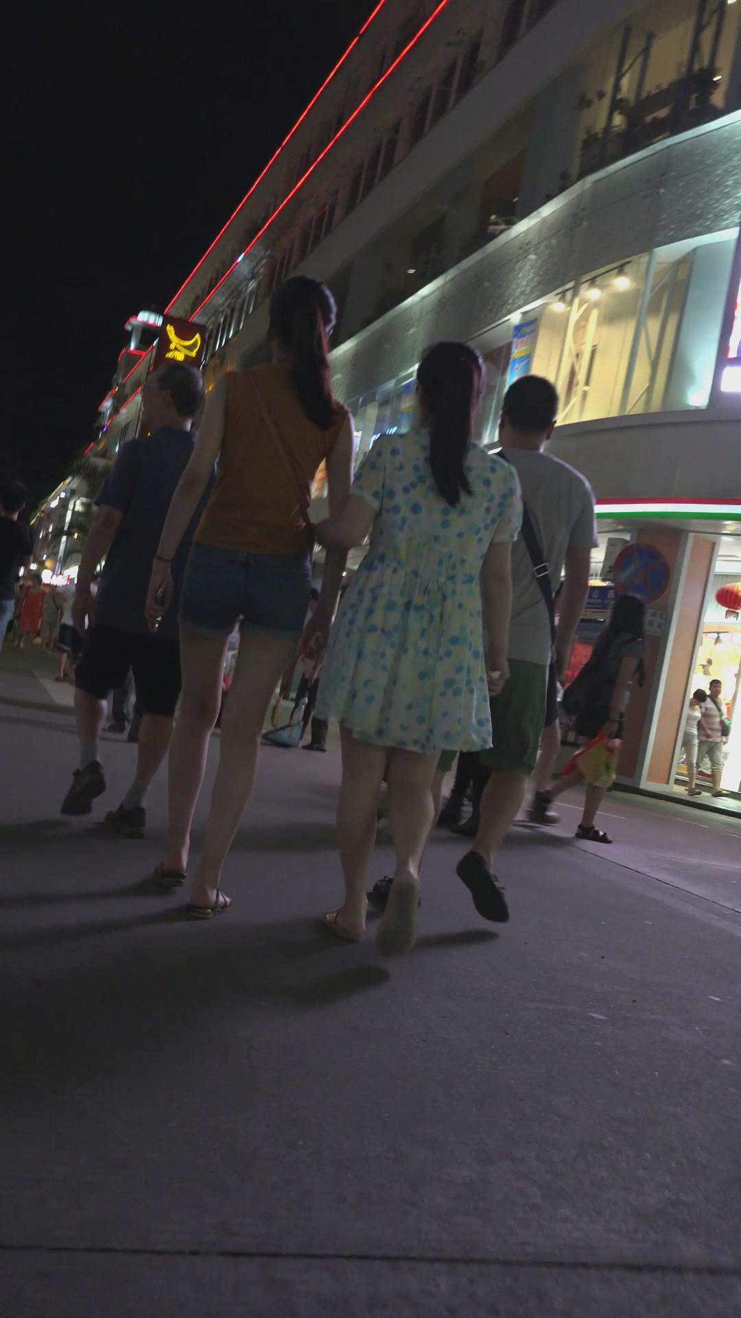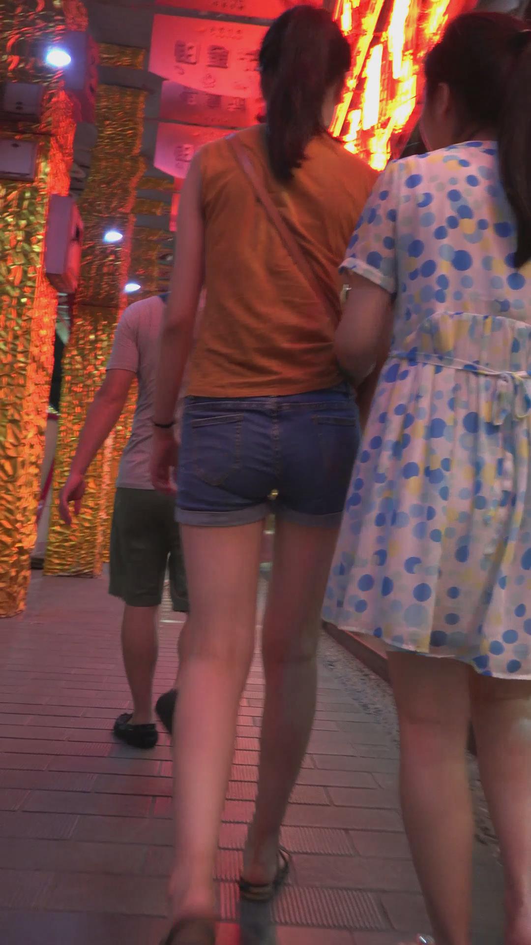 跟闺蜜逛夜市的牛仔热裤美腿少女 编号4590
