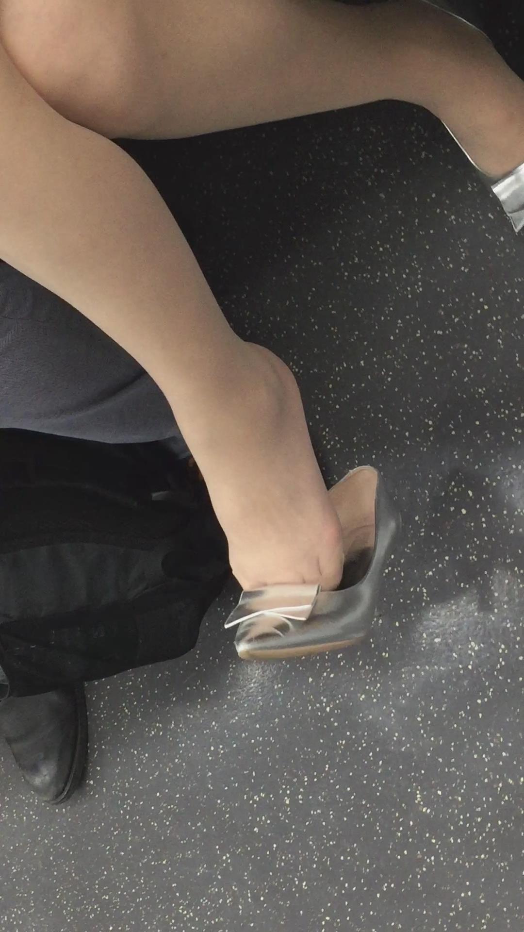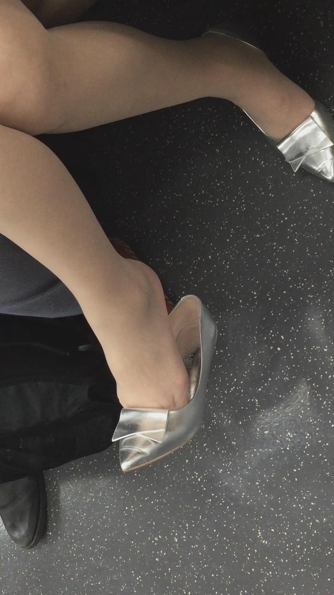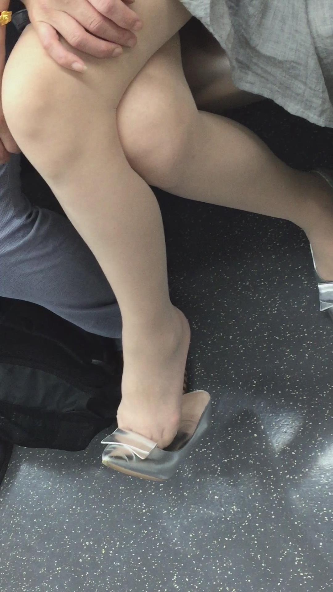 地铁上偶遇银白色尖嘴高跟鞋的长腿女神 编号1729