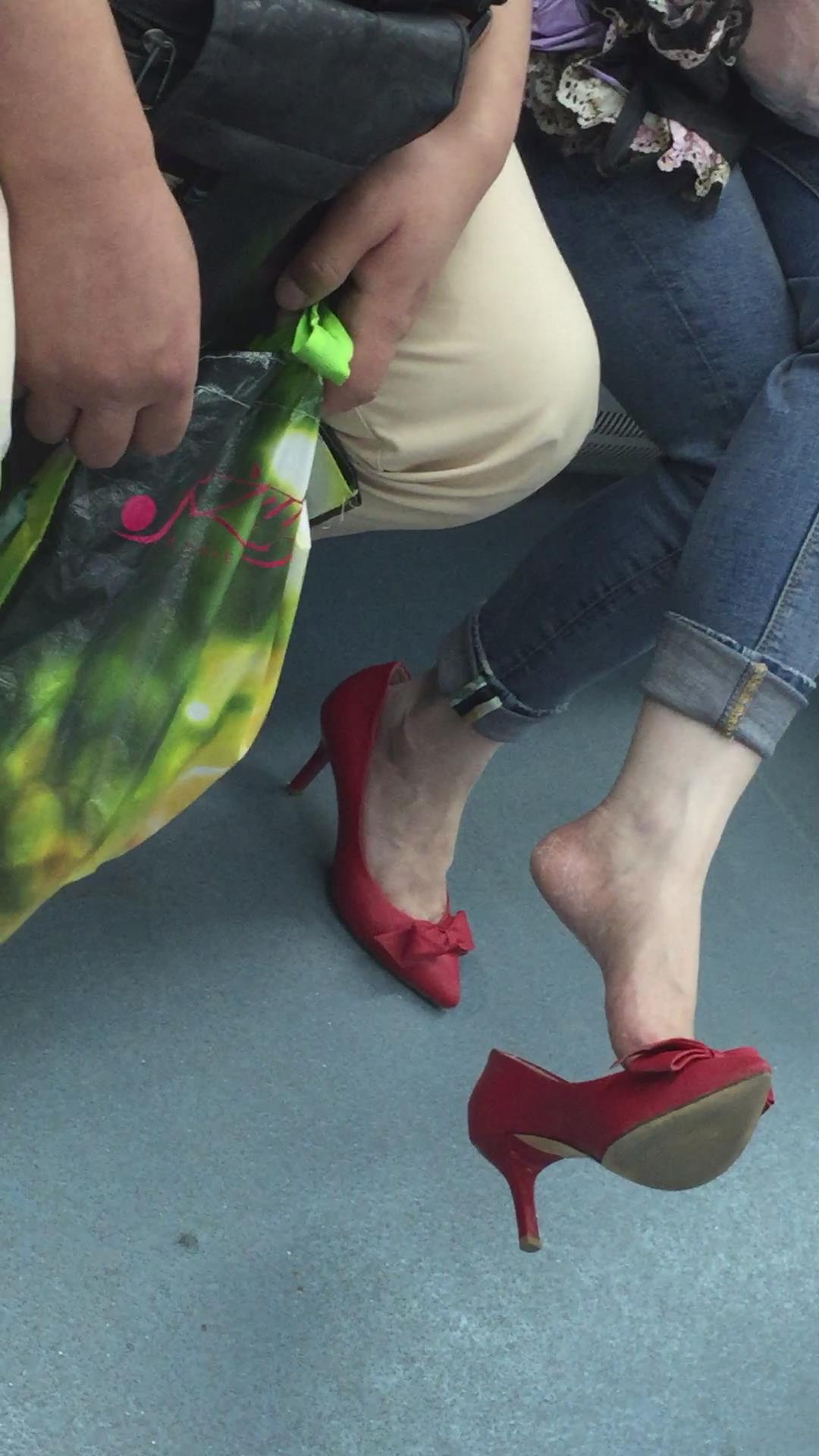 地铁上拍摄红色尖嘴小高跟鞋美眉 编号1754