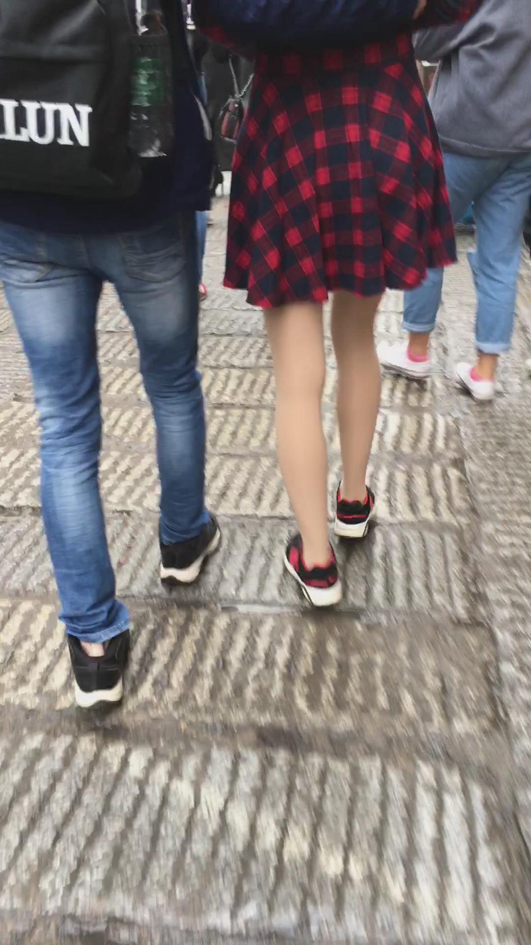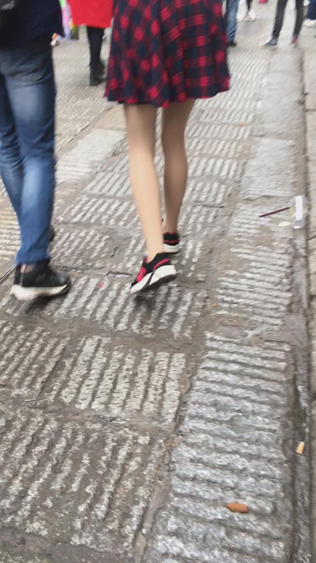 街拍肉丝玉腿运动鞋连衣裙女孩。 编号1765